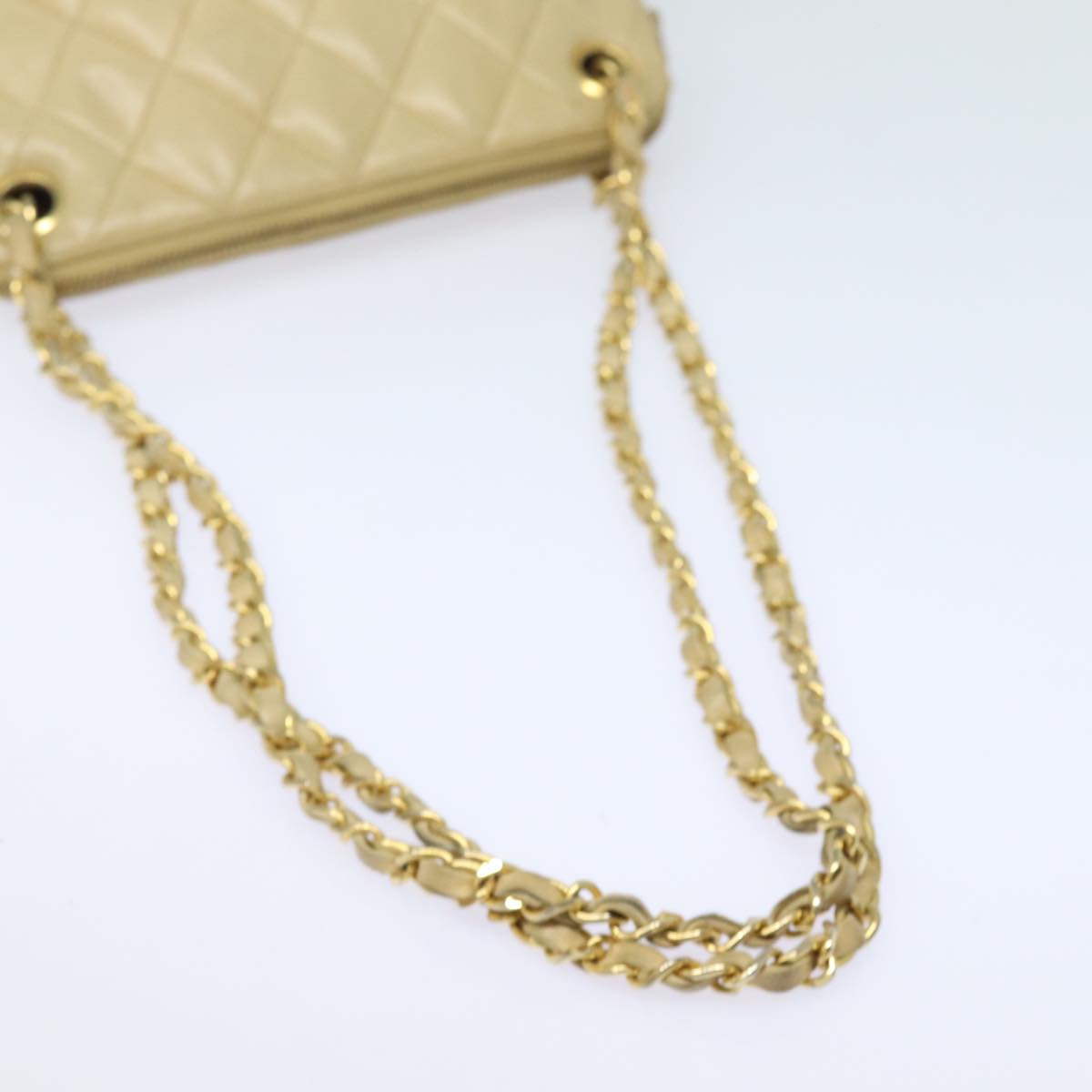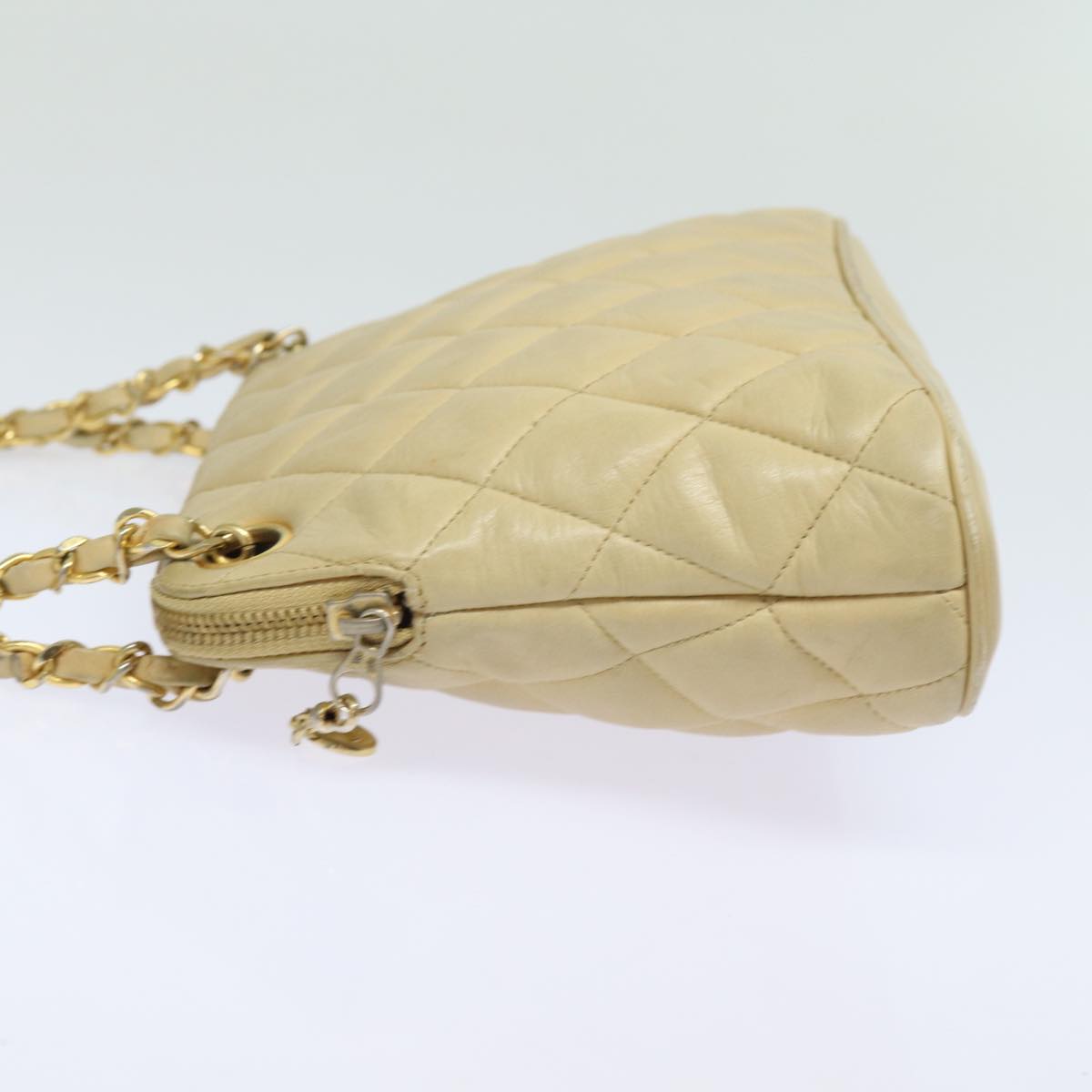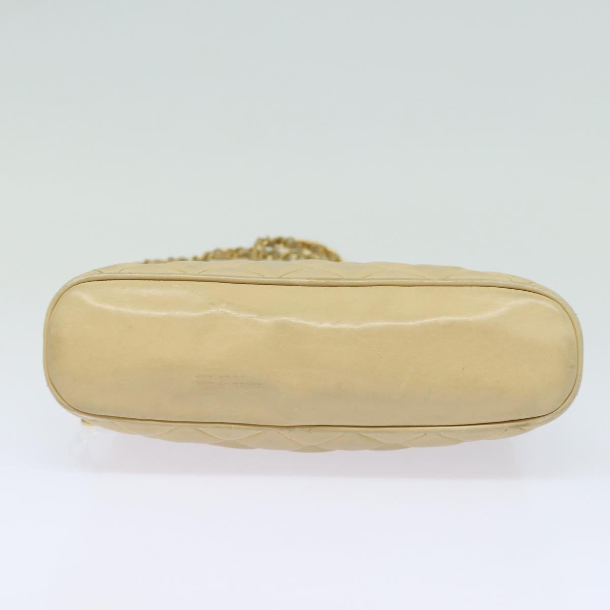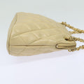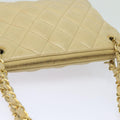 CHANEL Matelasse Chain Shoulder Bag Leather Beige CC Auth bs15440