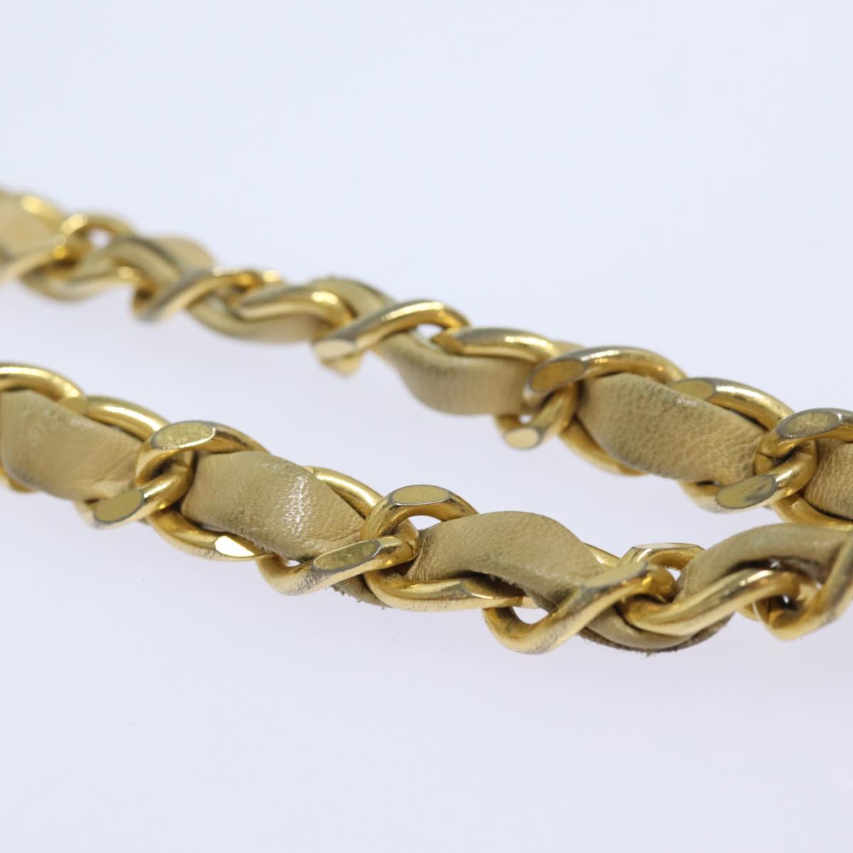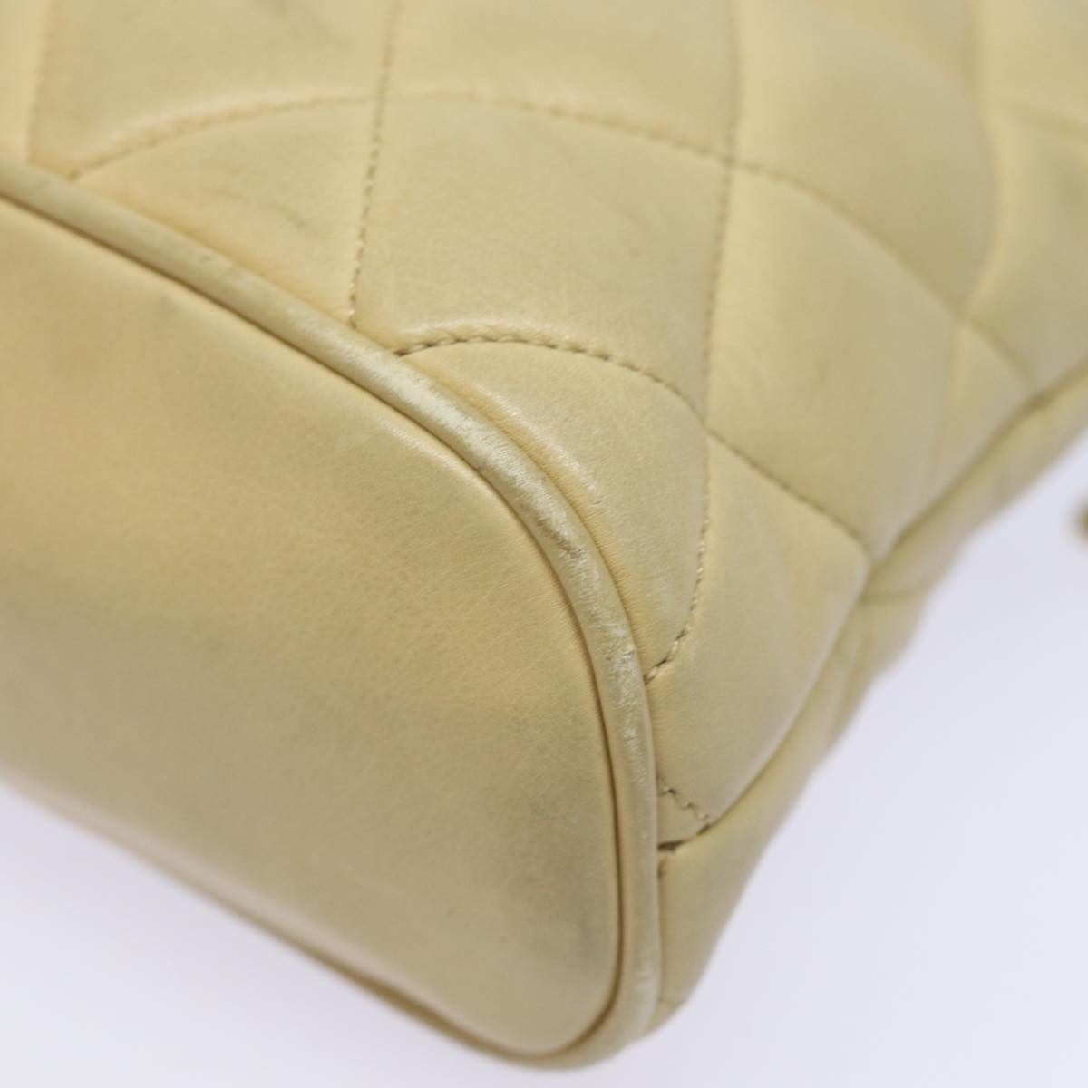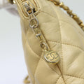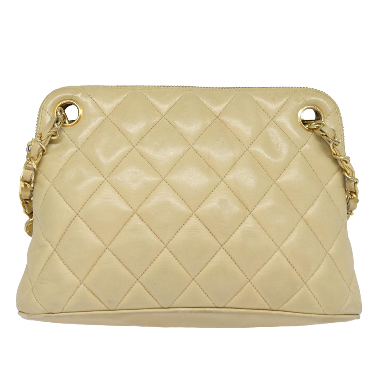 CHANEL Matelasse Chain Shoulder Bag Leather Beige CC Auth bs15440