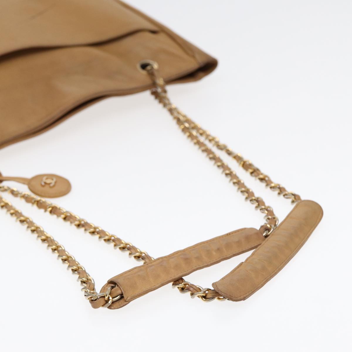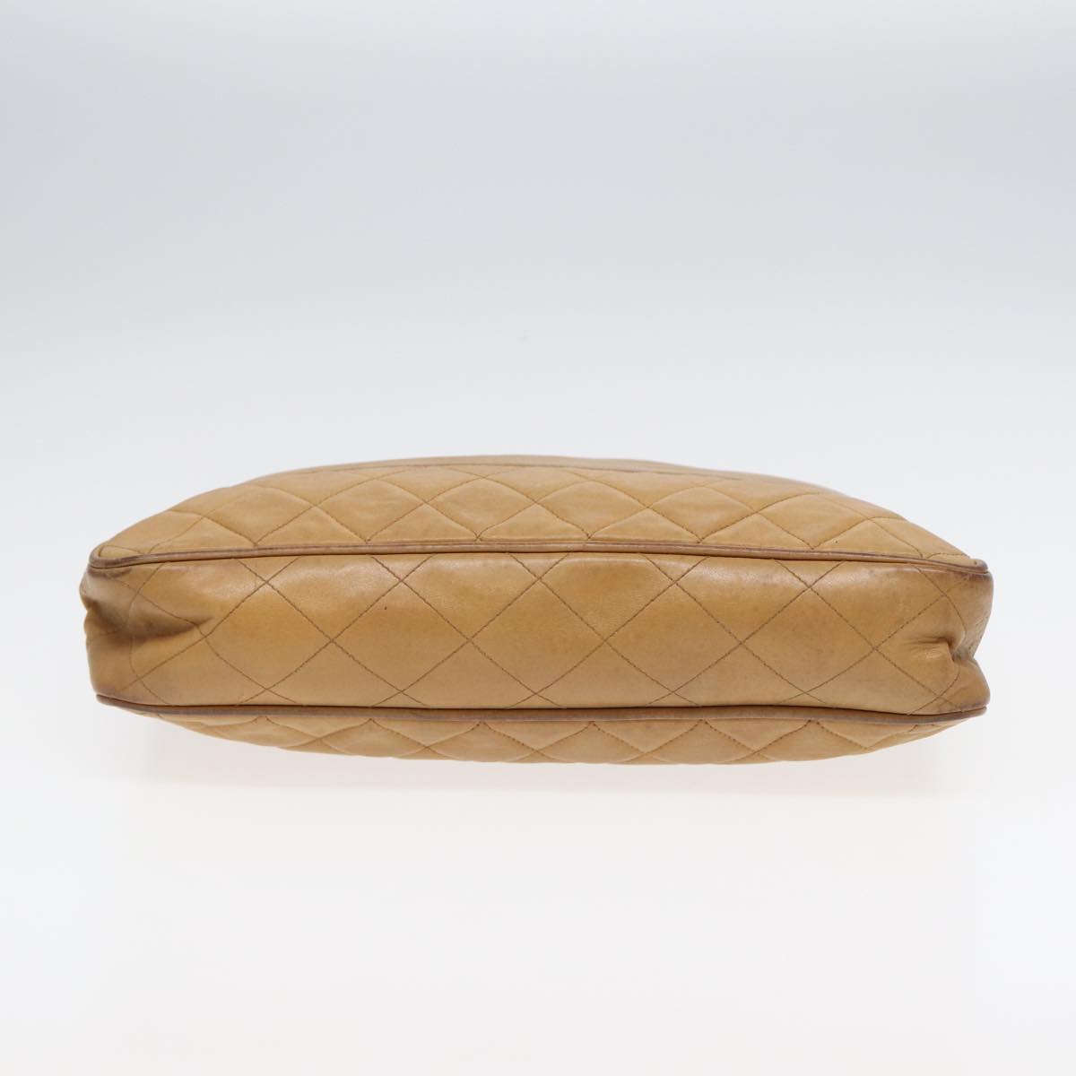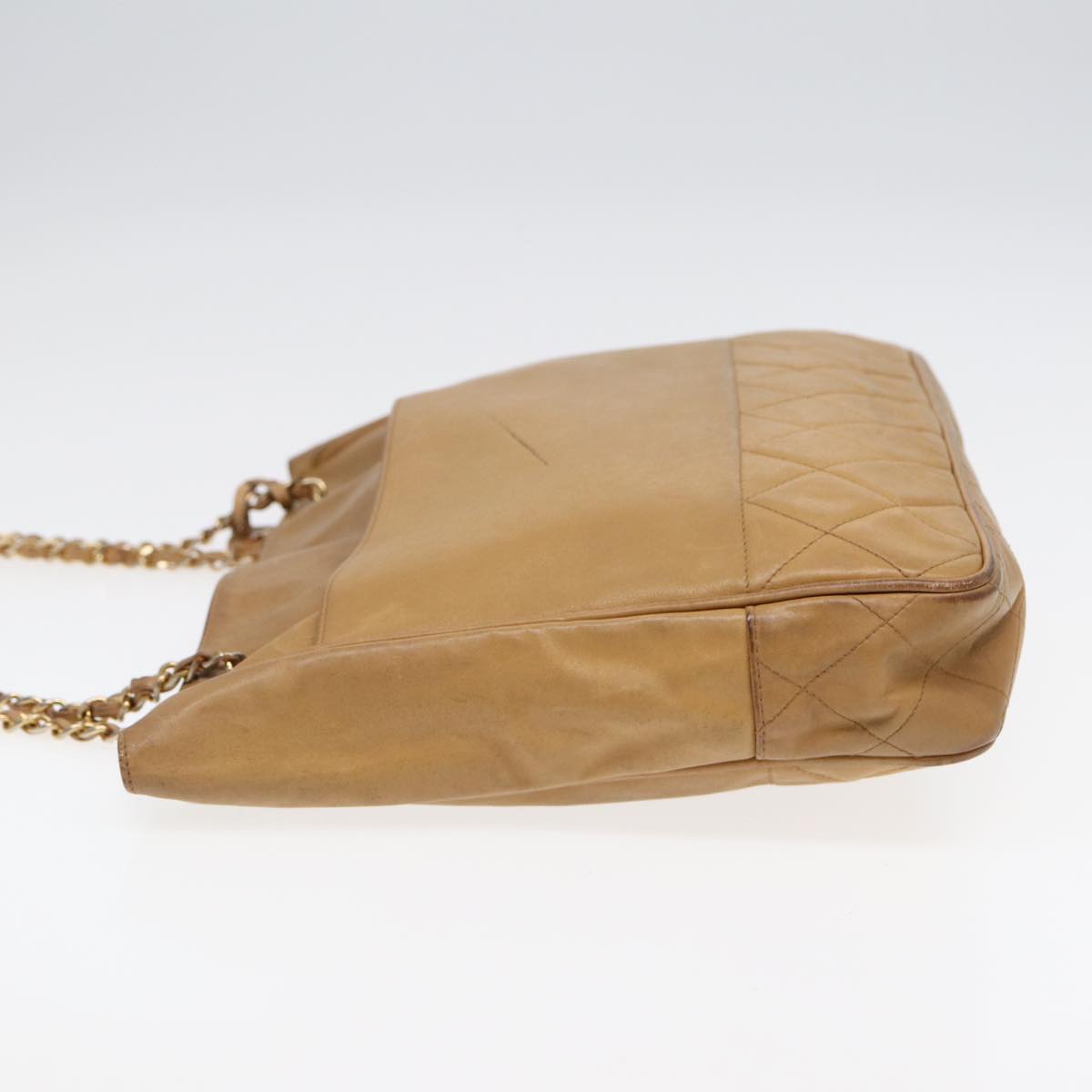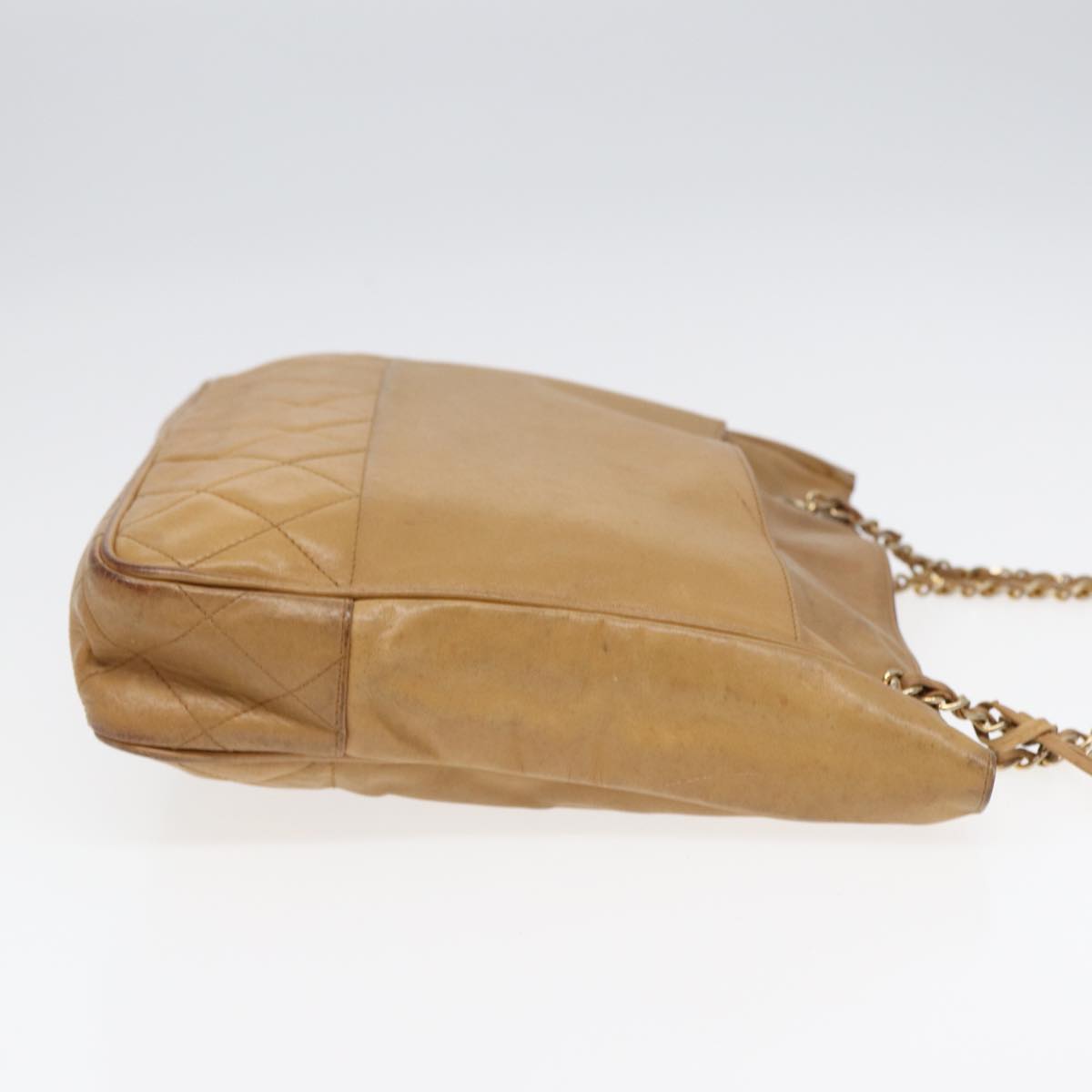 CHANEL Matelasse Chain Shoulder Bag Leather Beige Gold CC Auth yb672
