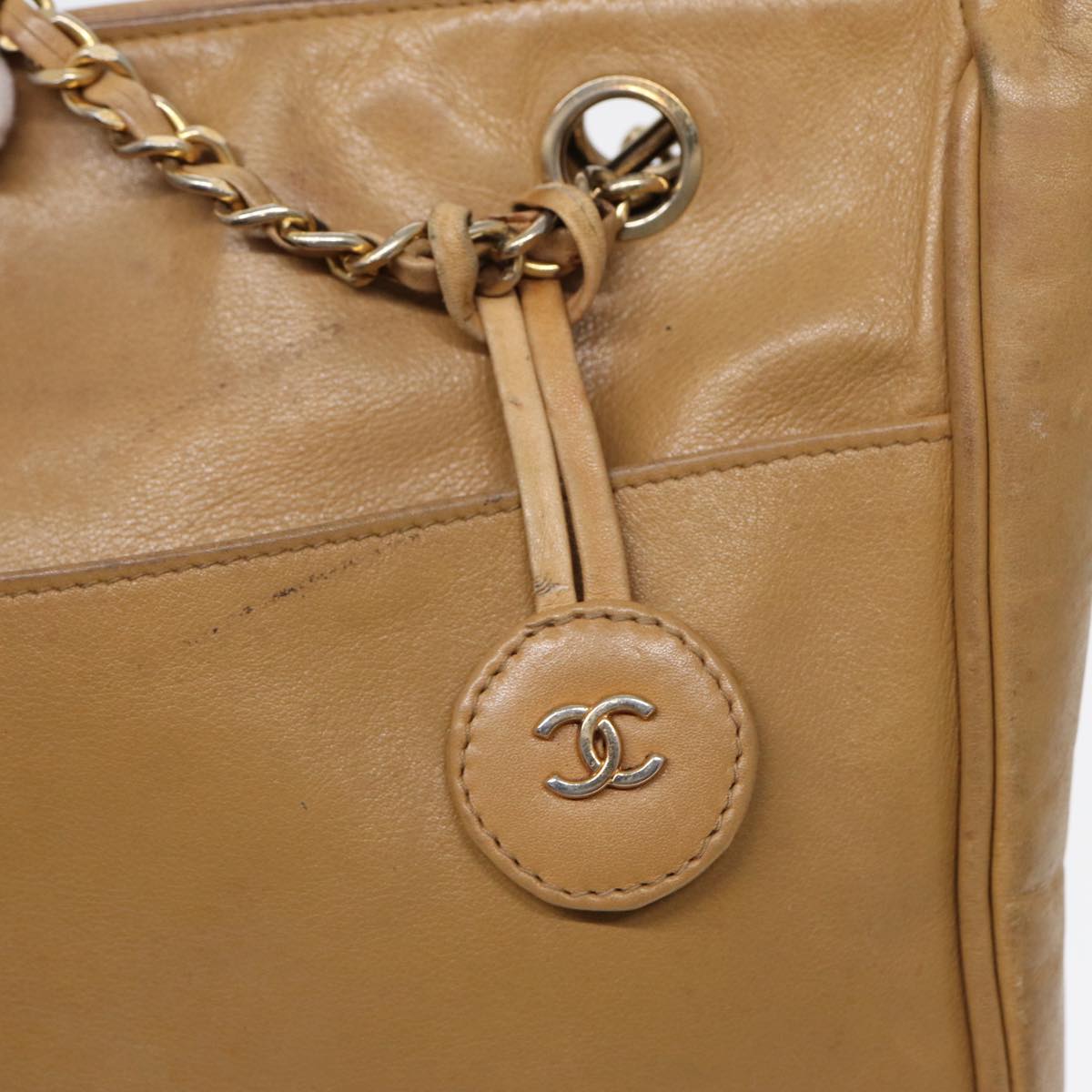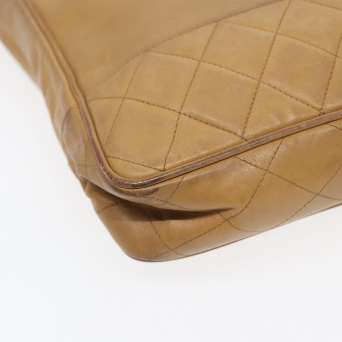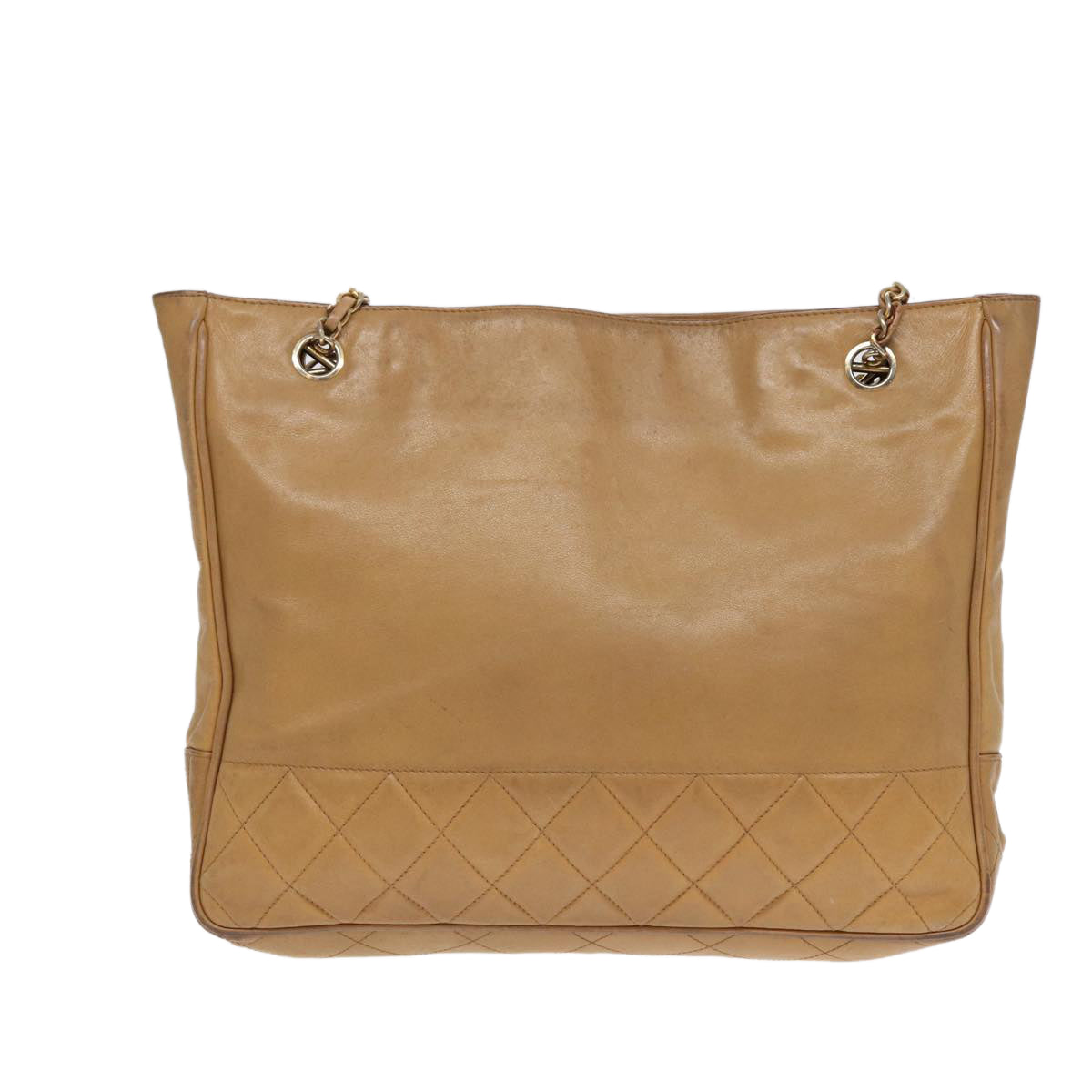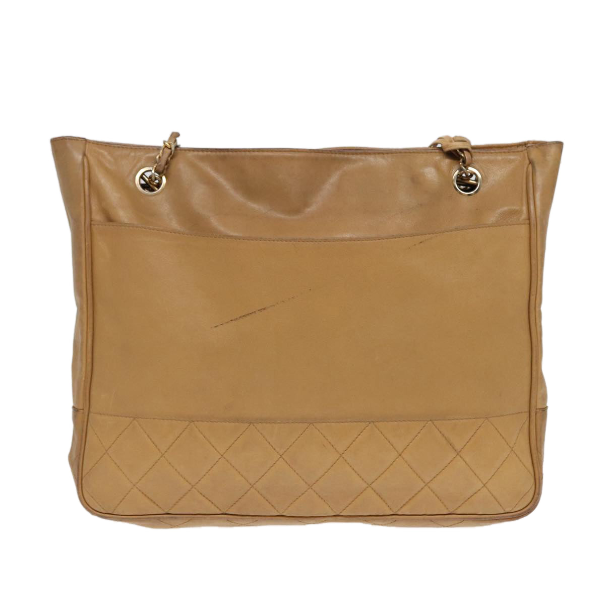 CHANEL Matelasse Chain Shoulder Bag Leather Beige Gold CC Auth yb672