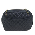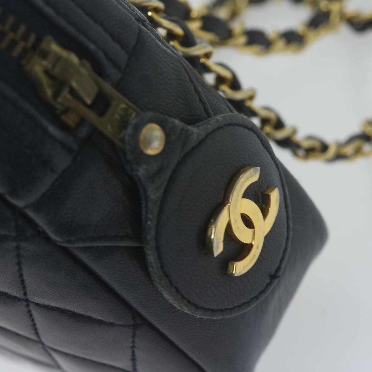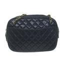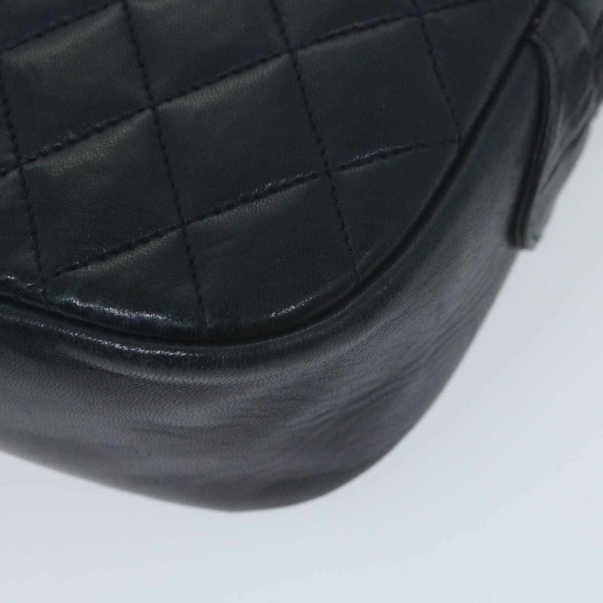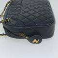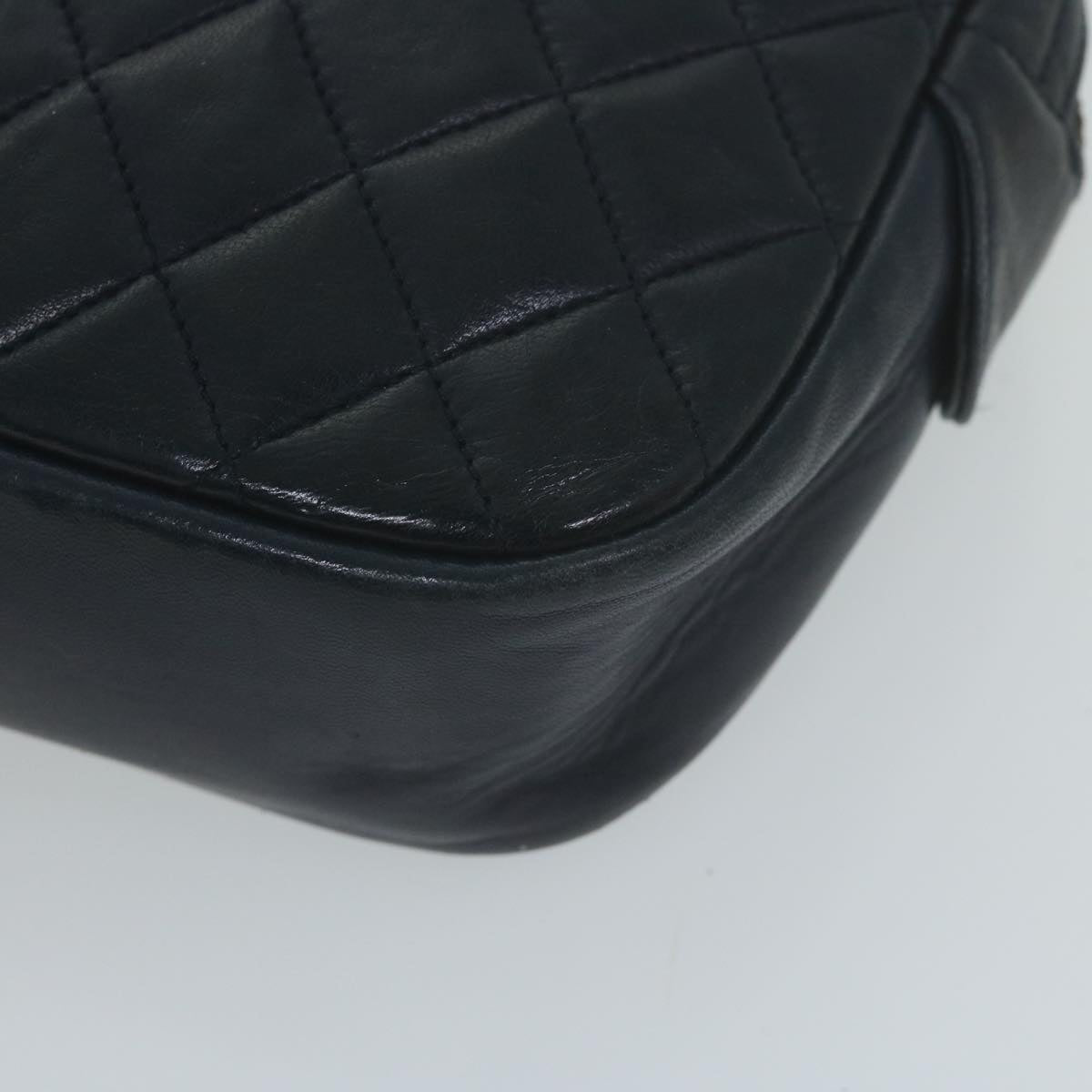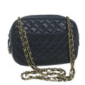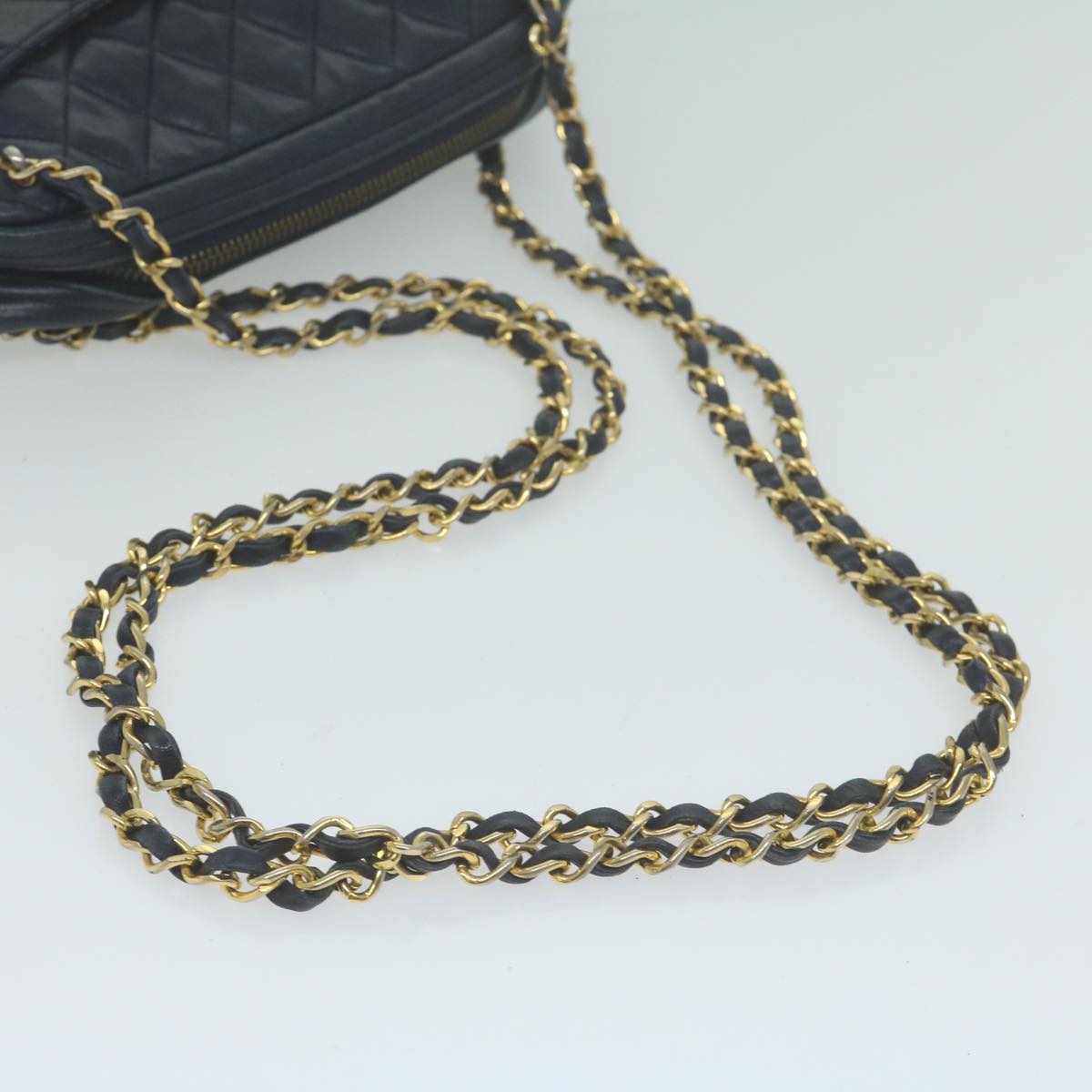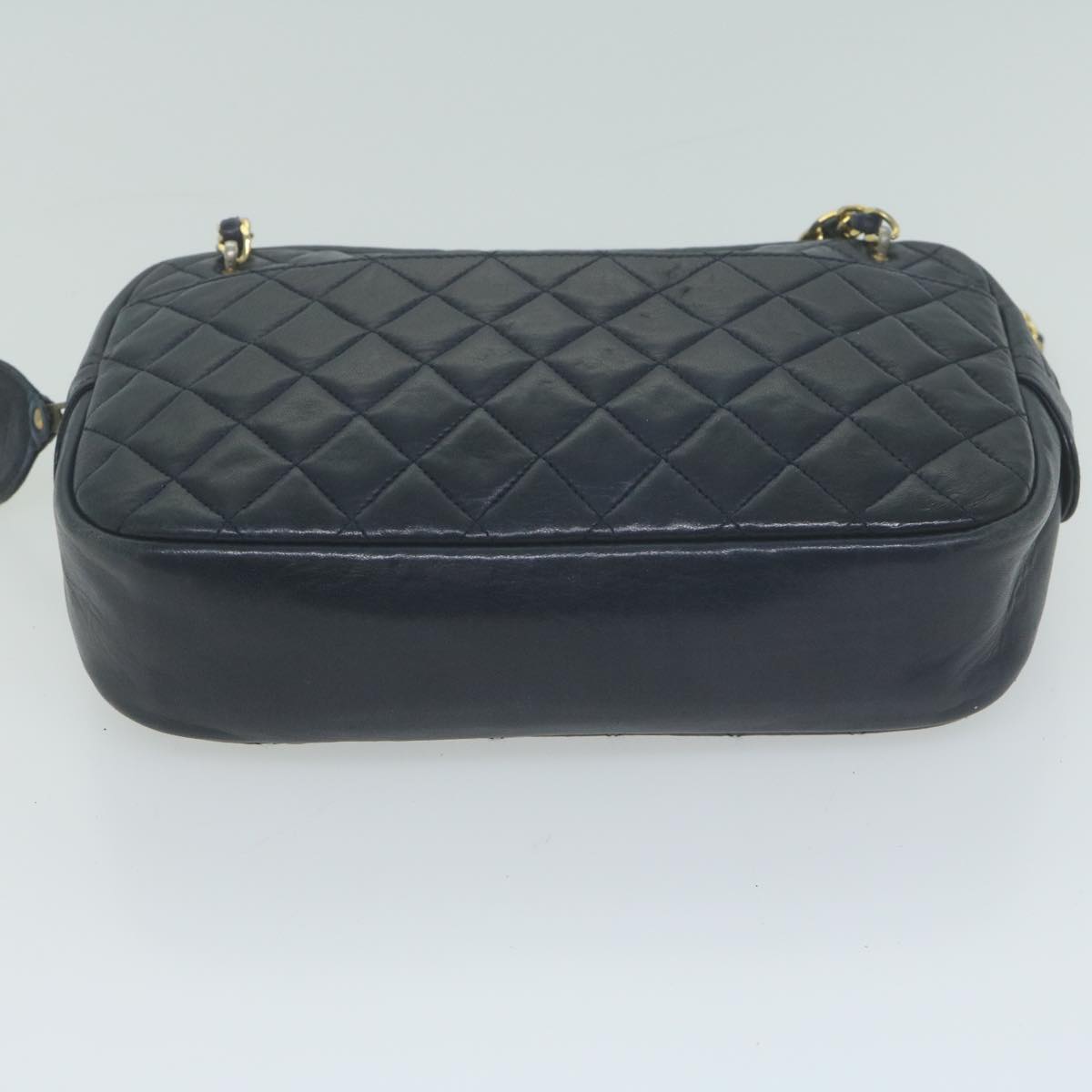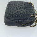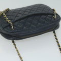 CHANEL Matelasse Chain Shoulder Bag Leather Navy CC Auth 65588
