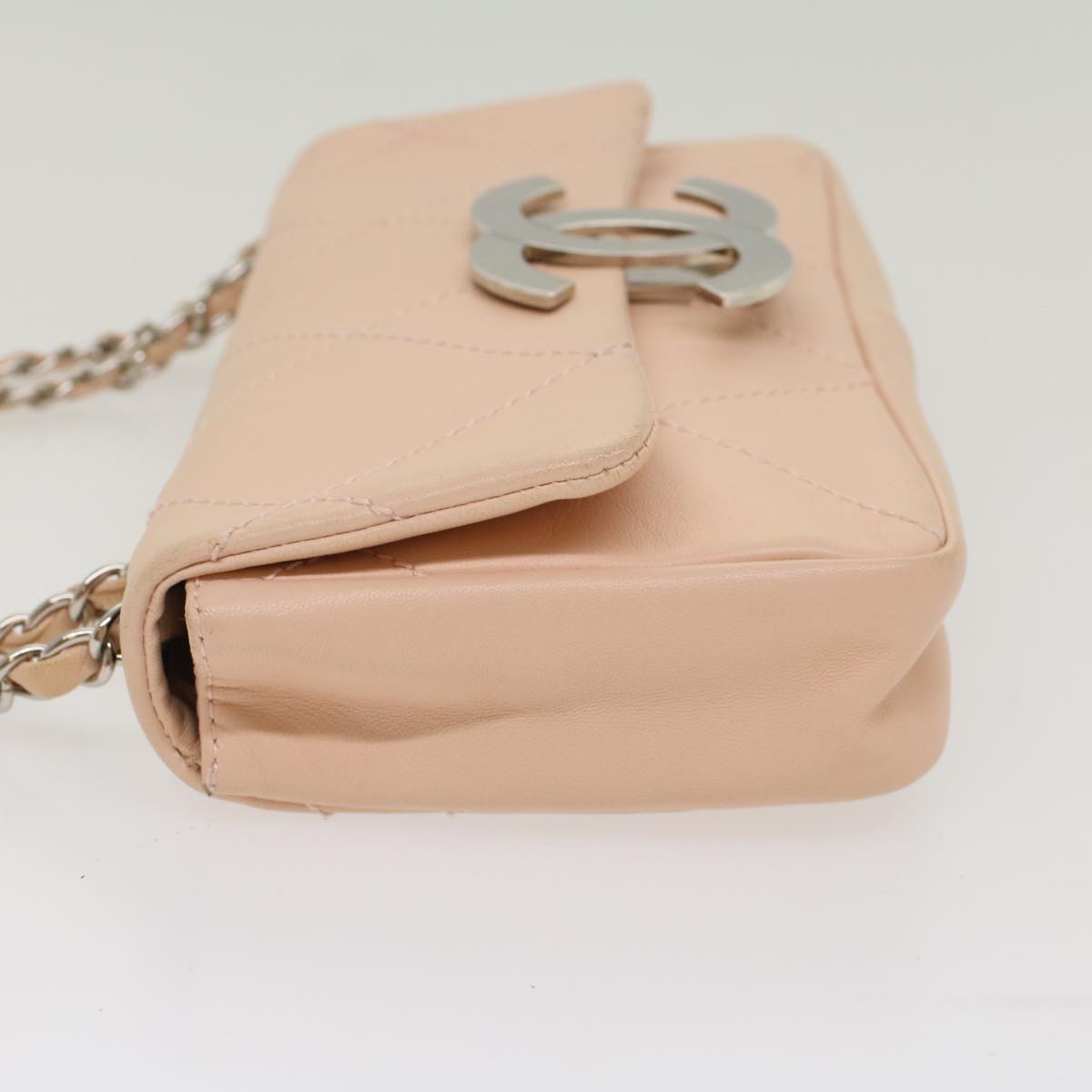 CHANEL Matelasse Chain Shoulder Bag Leather Pink CC Auth 53097