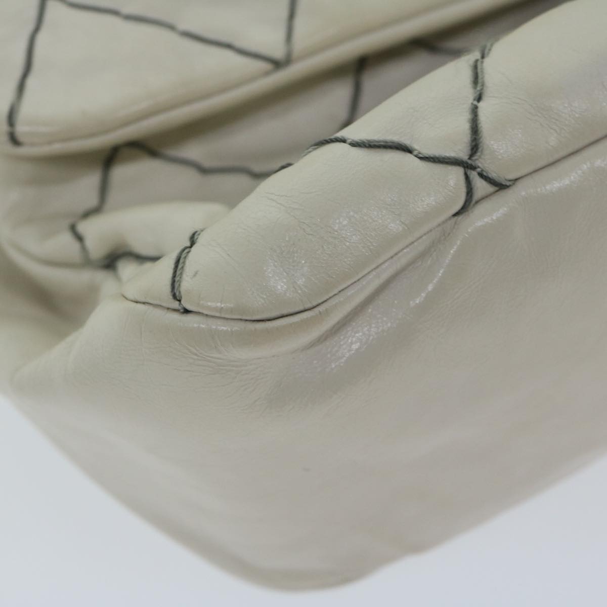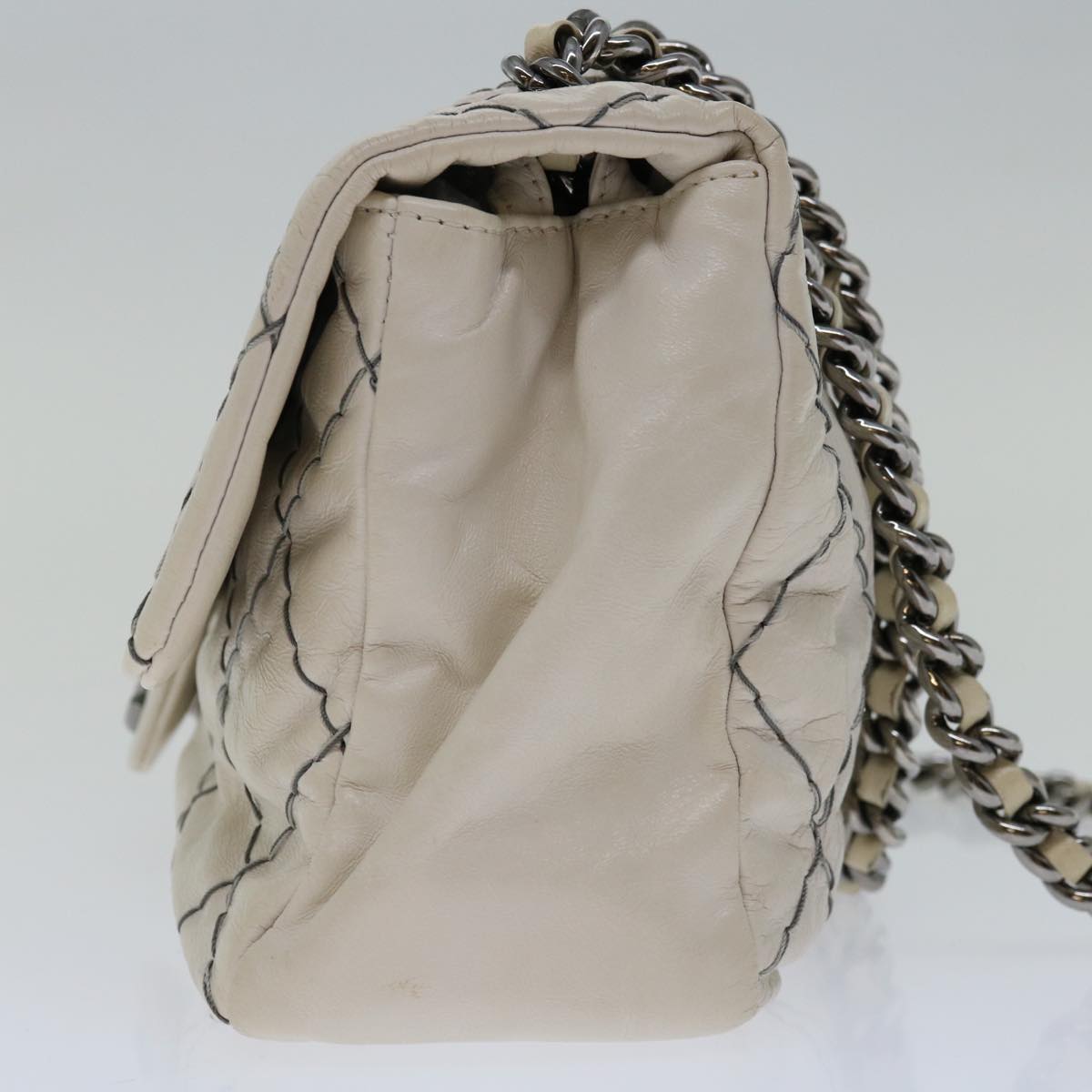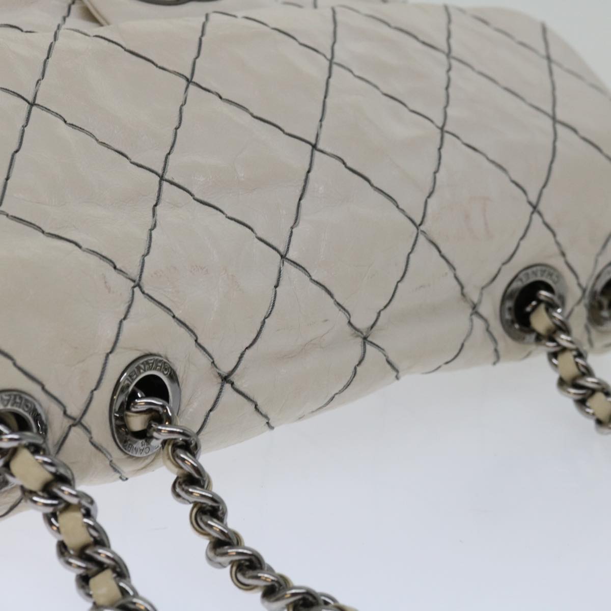 CHANEL Matelasse Chain Shoulder Bag Leather White CC Auth yk10764