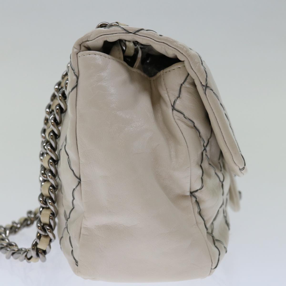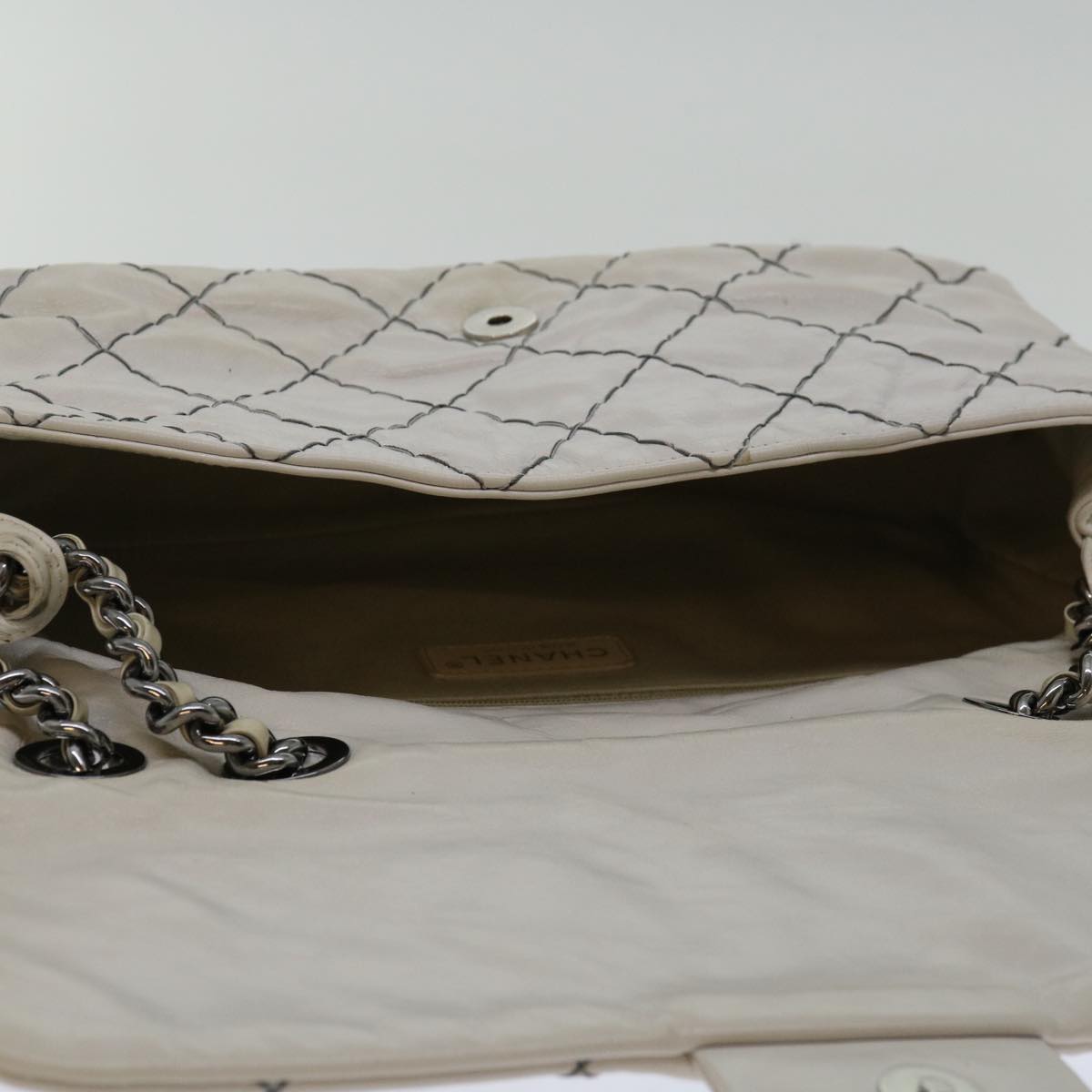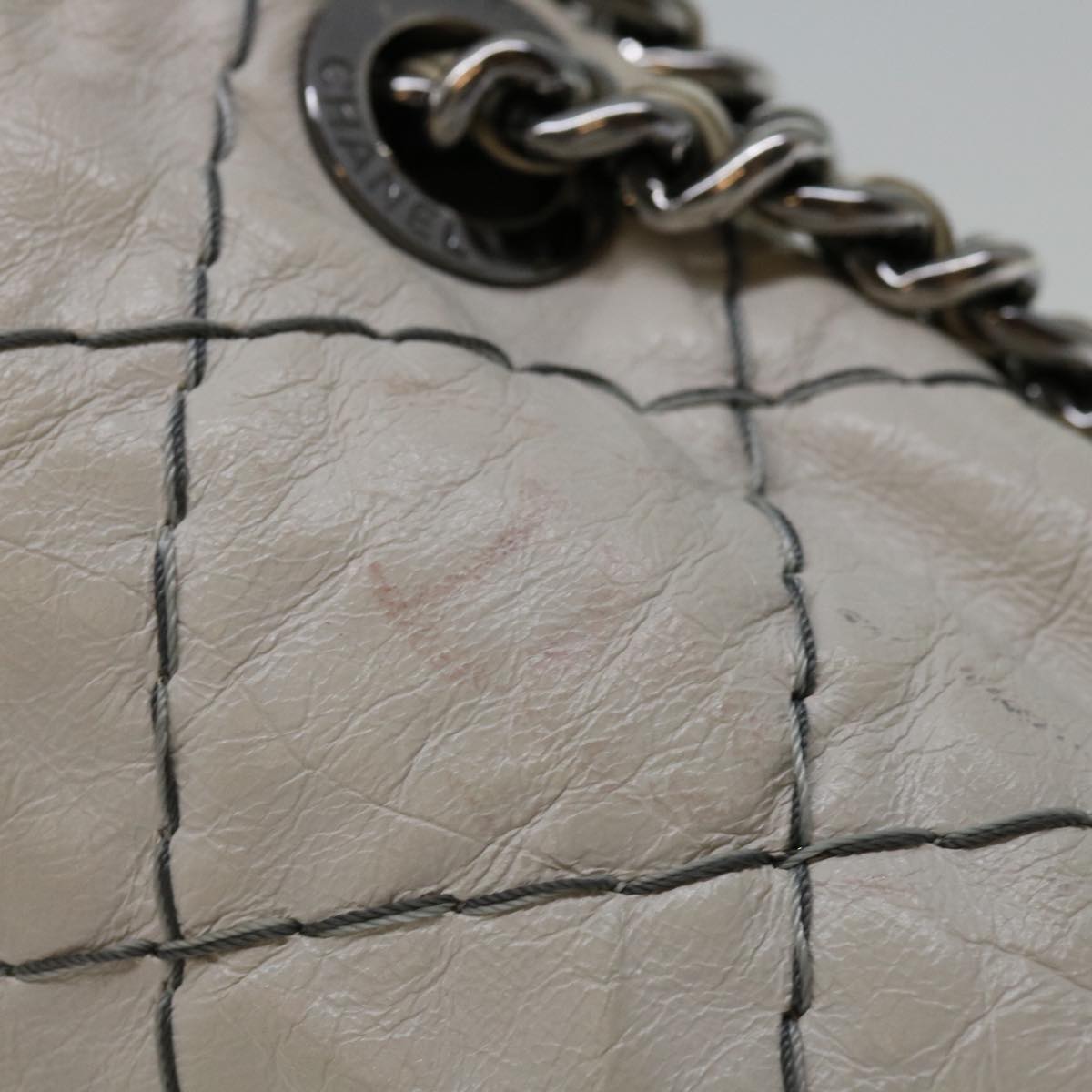 CHANEL Matelasse Chain Shoulder Bag Leather White CC Auth yk10764