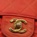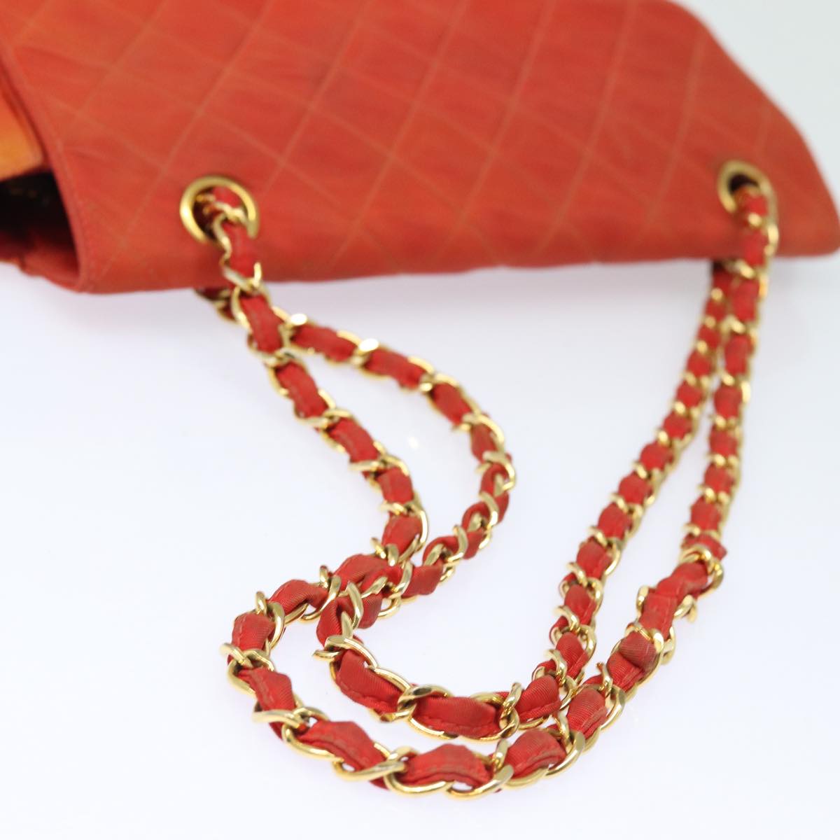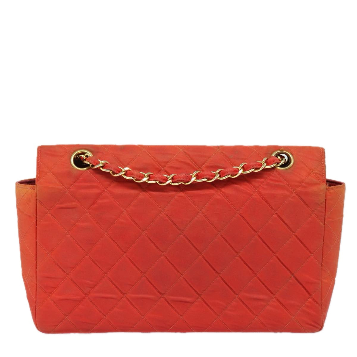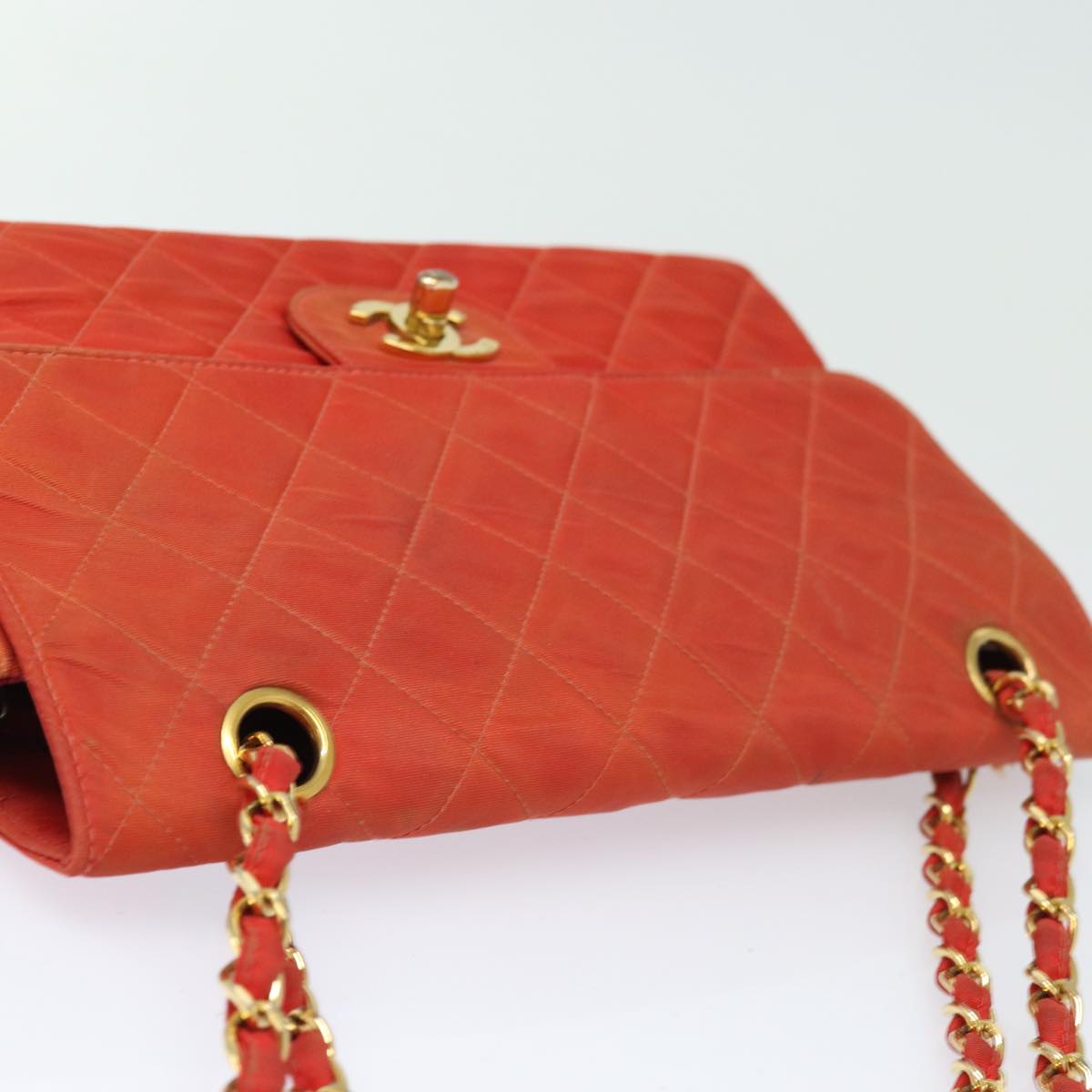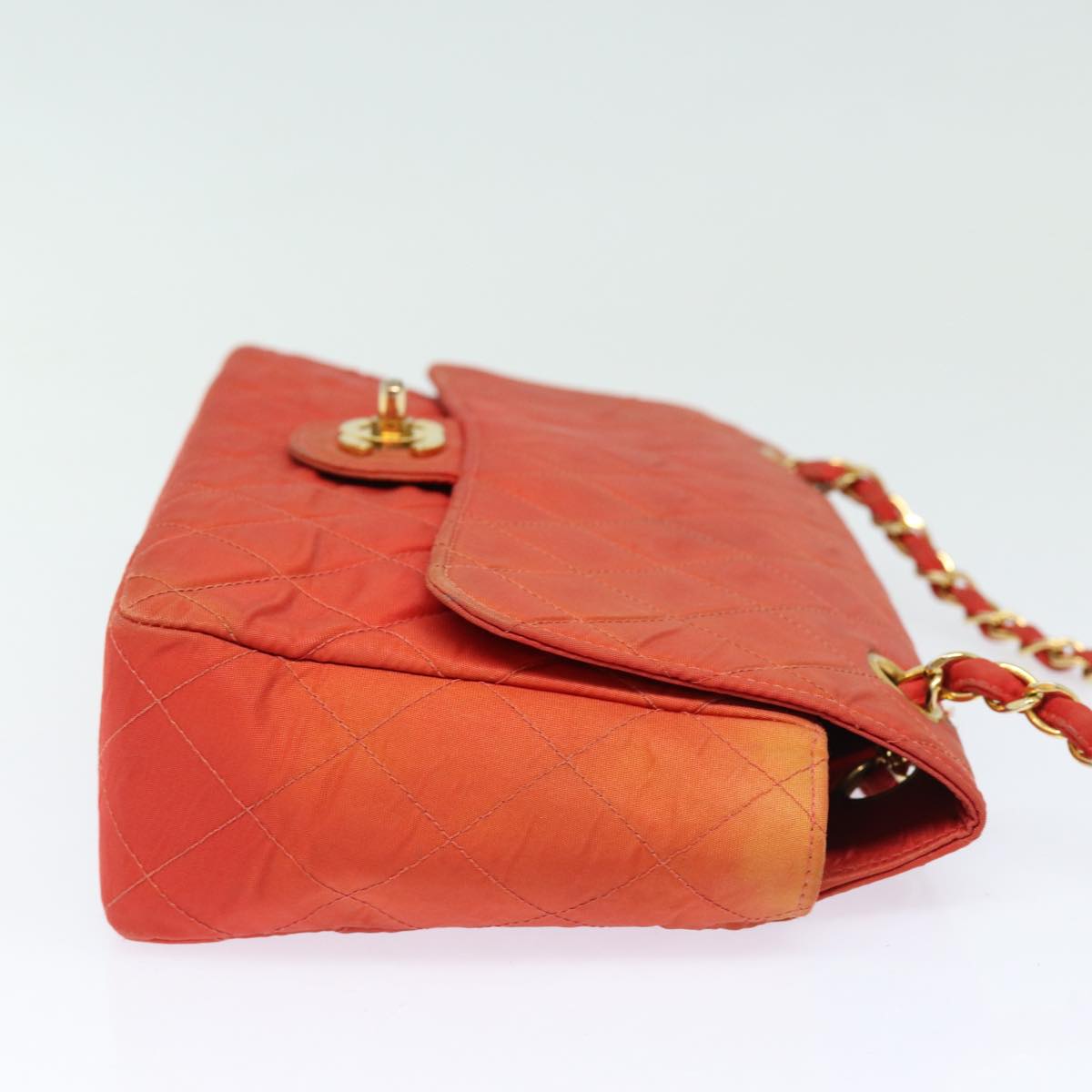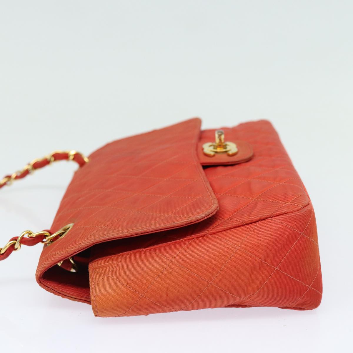 CHANEL Matelasse Chain Shoulder Bag Nylon Orange CC Auth 84479