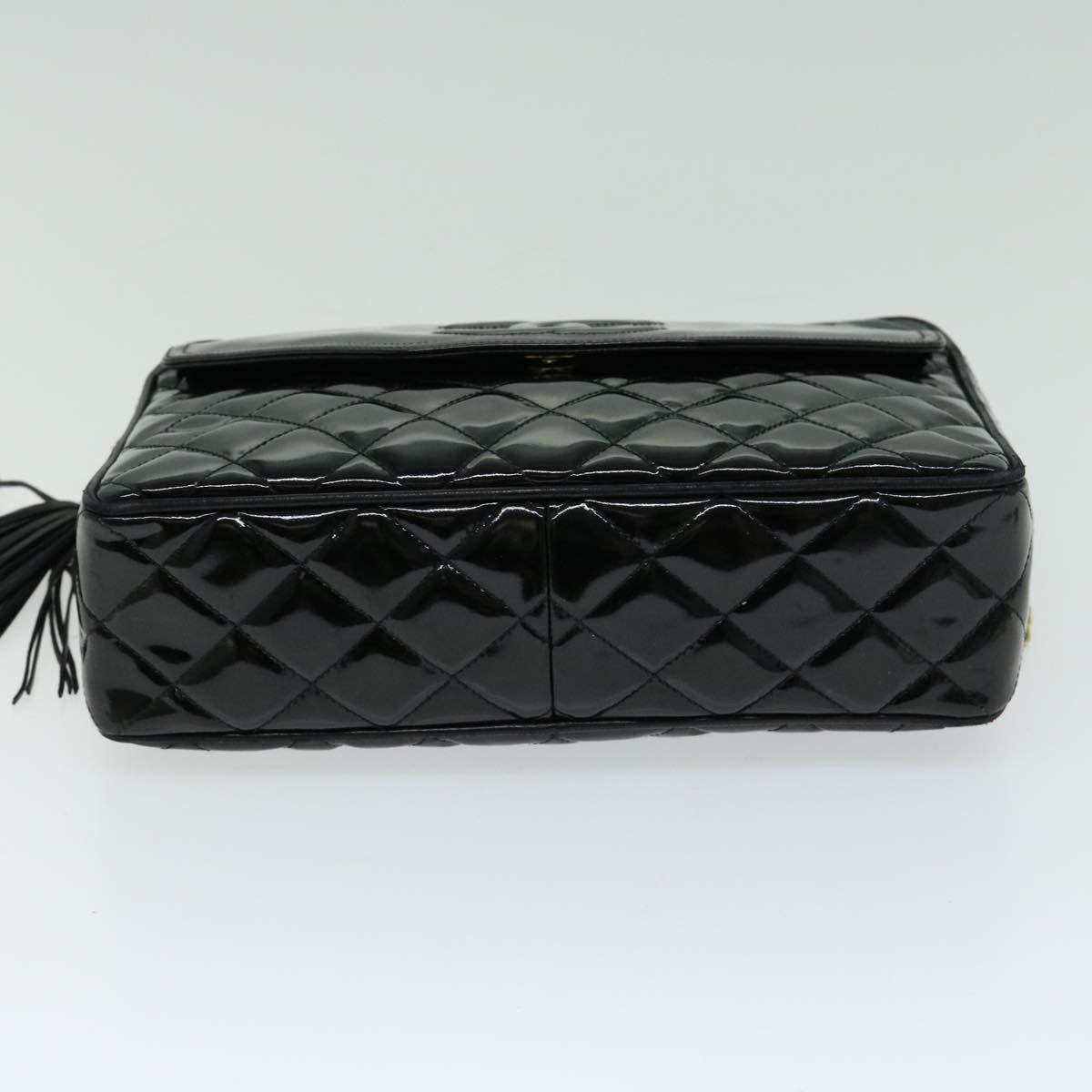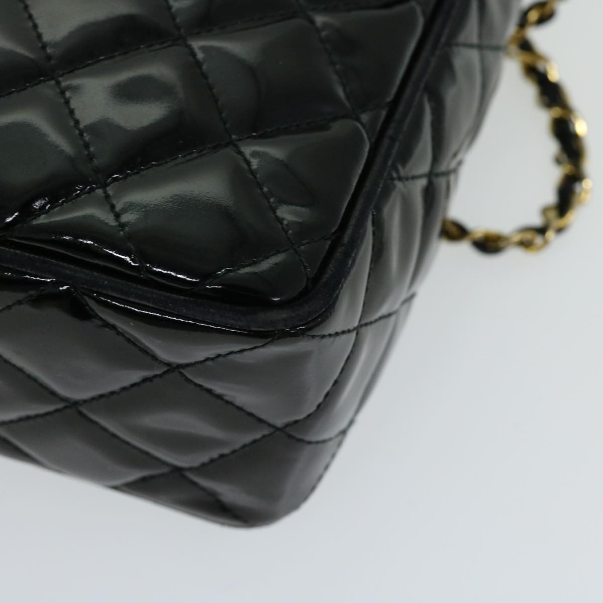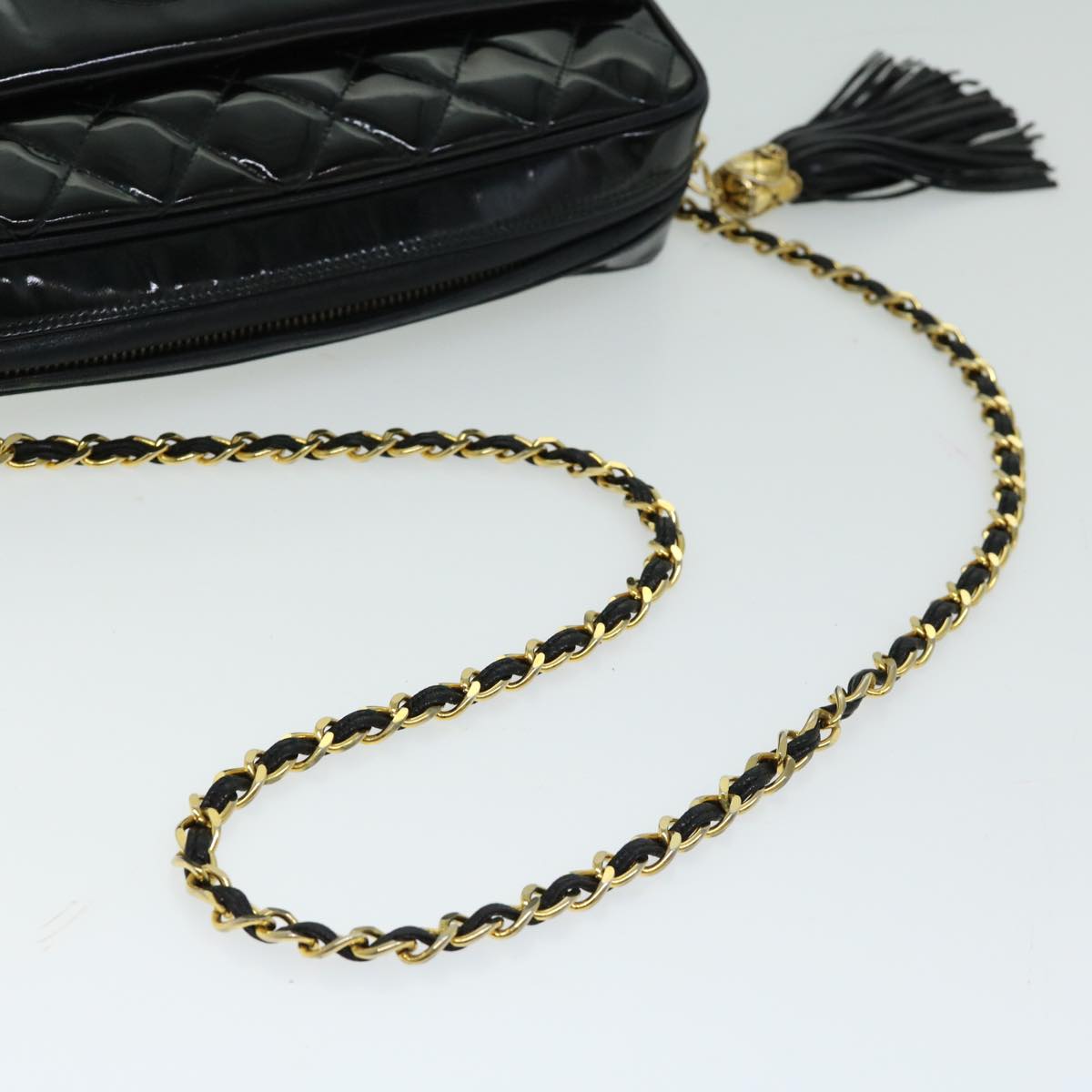 CHANEL Matelasse Chain Shoulder Bag Patent leather Black CC Auth hk1071