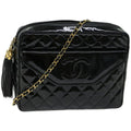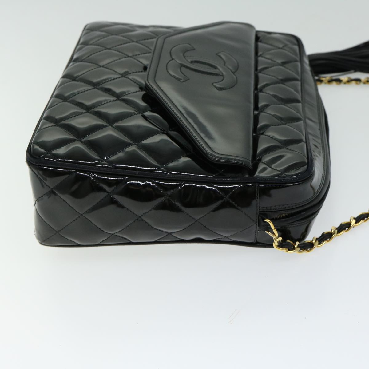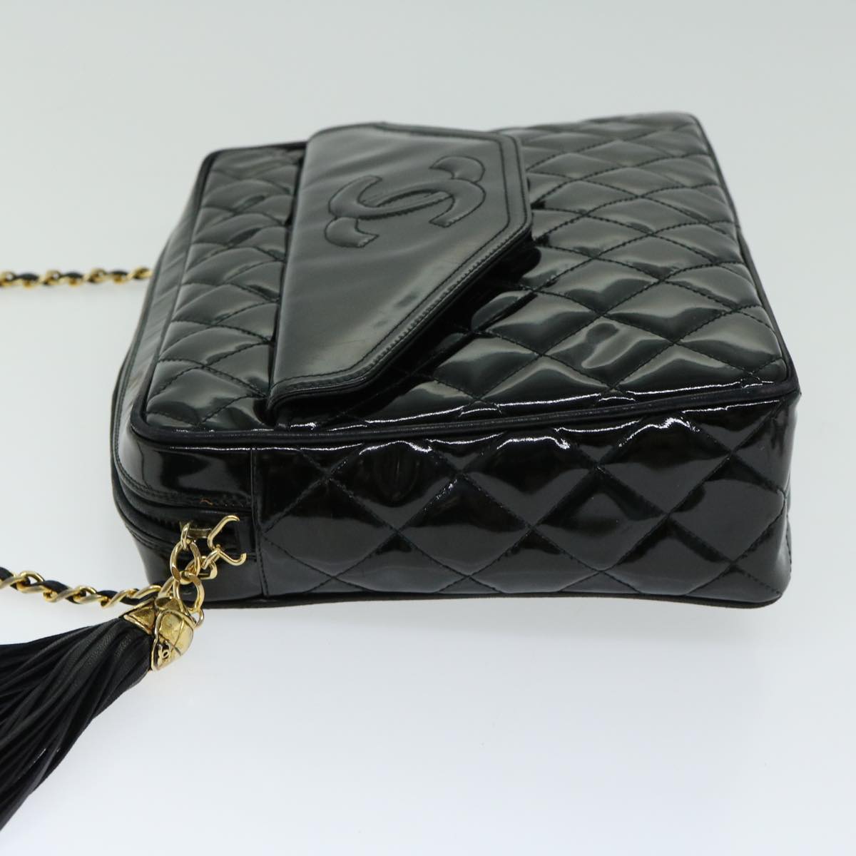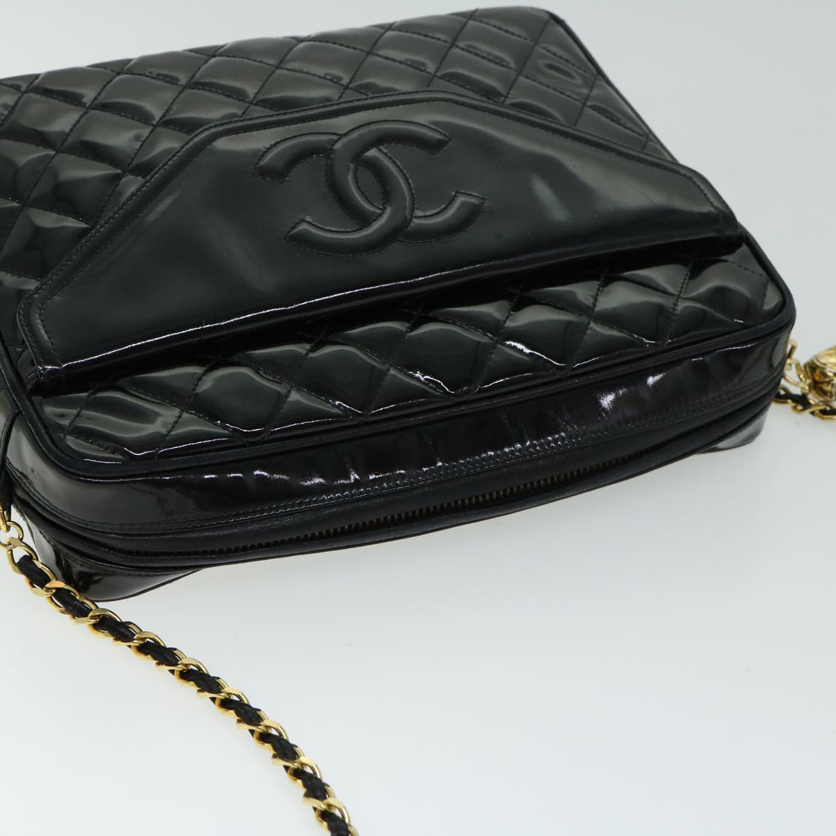 Top Quality Chanel Matelasse Chain Shoulder Bag Patent leather Black CC Auth hk1071