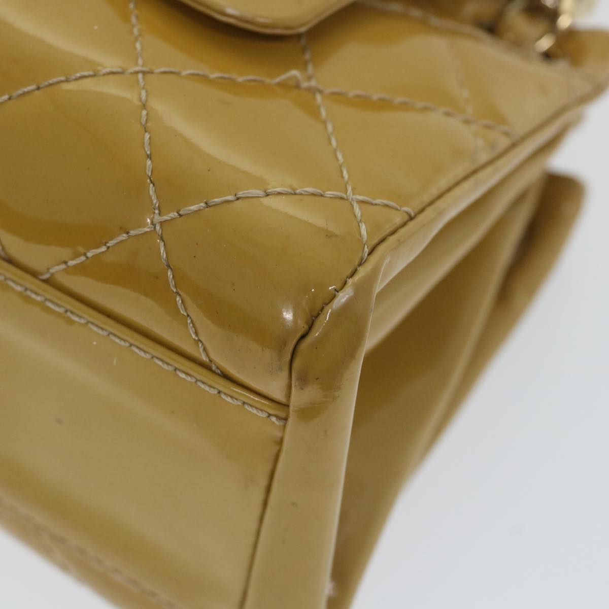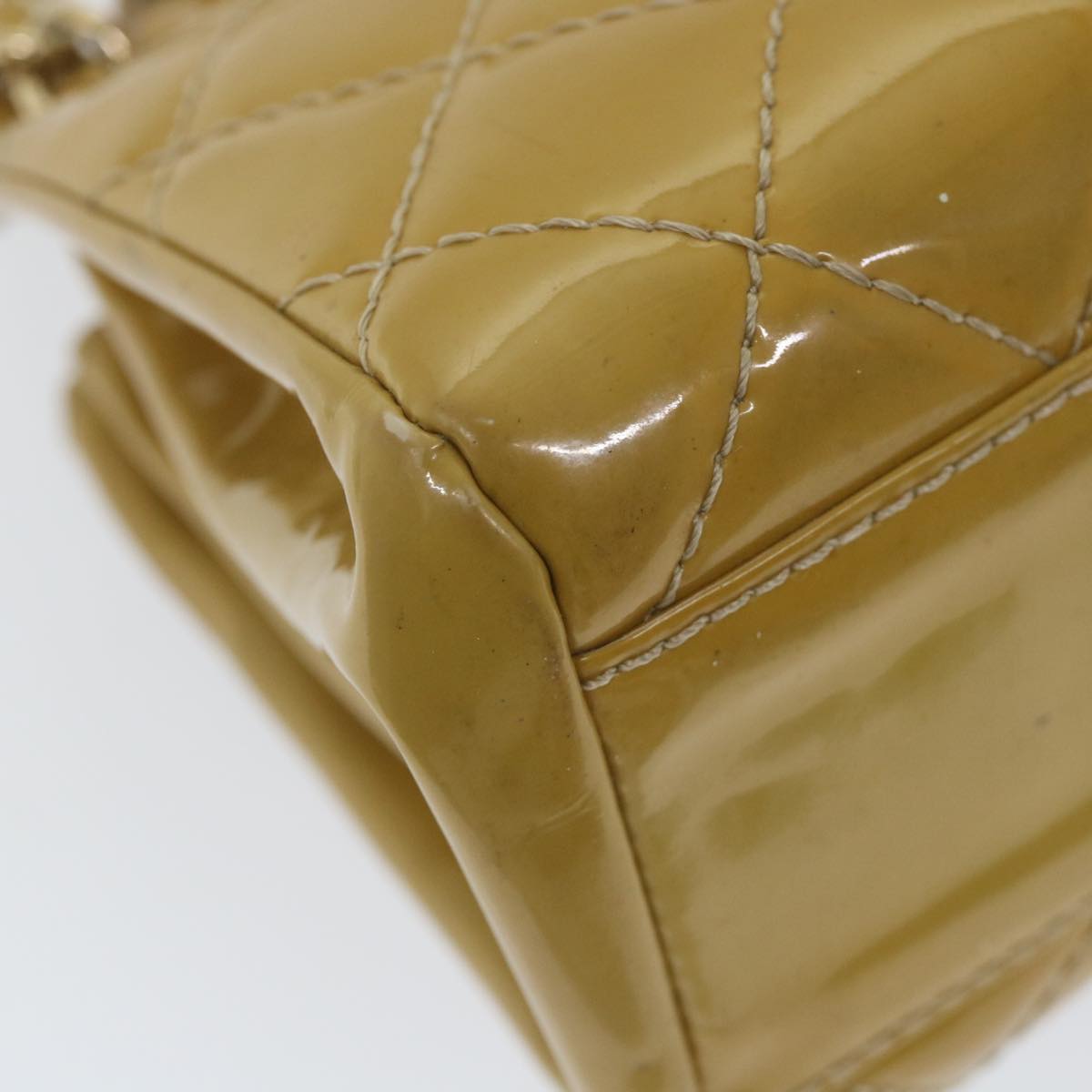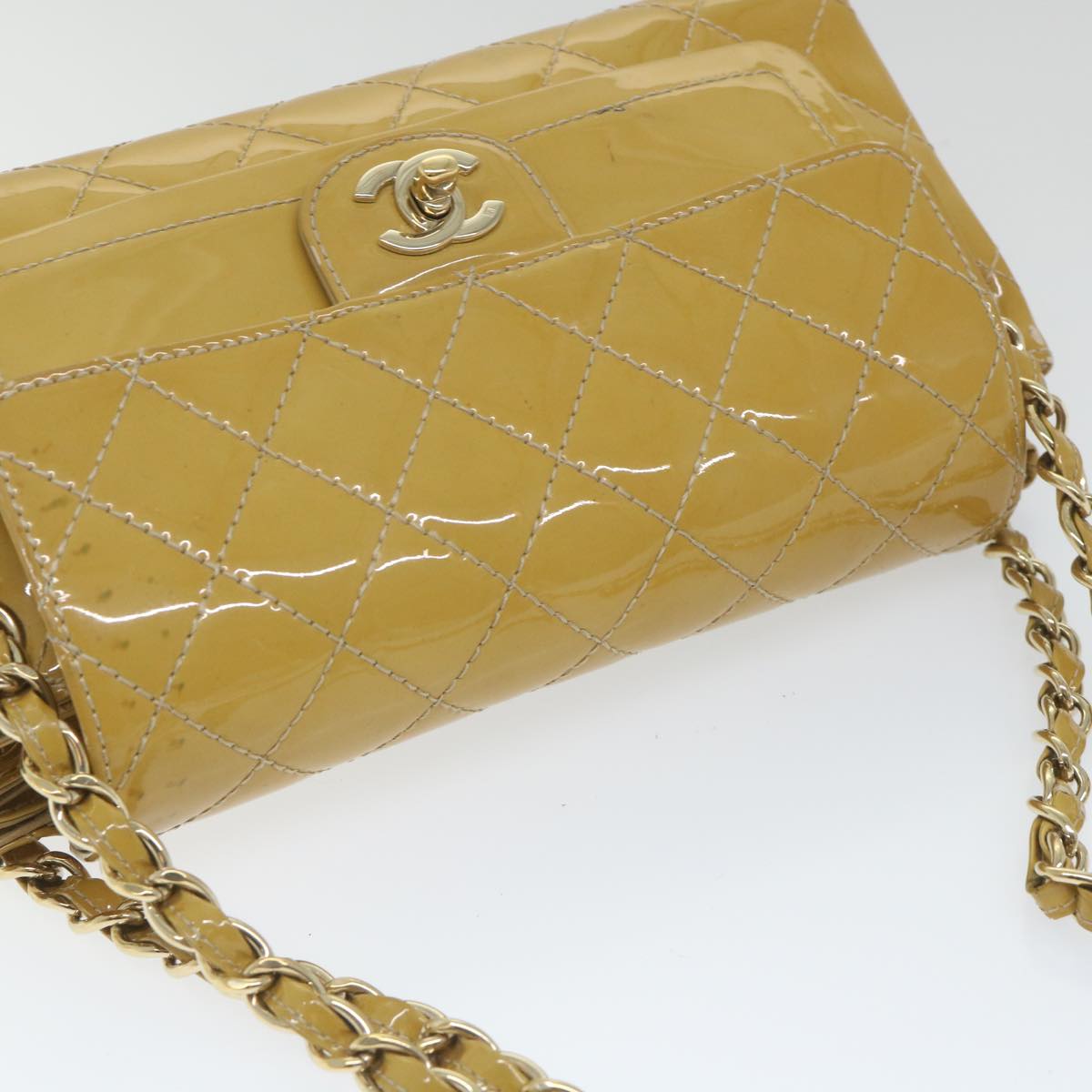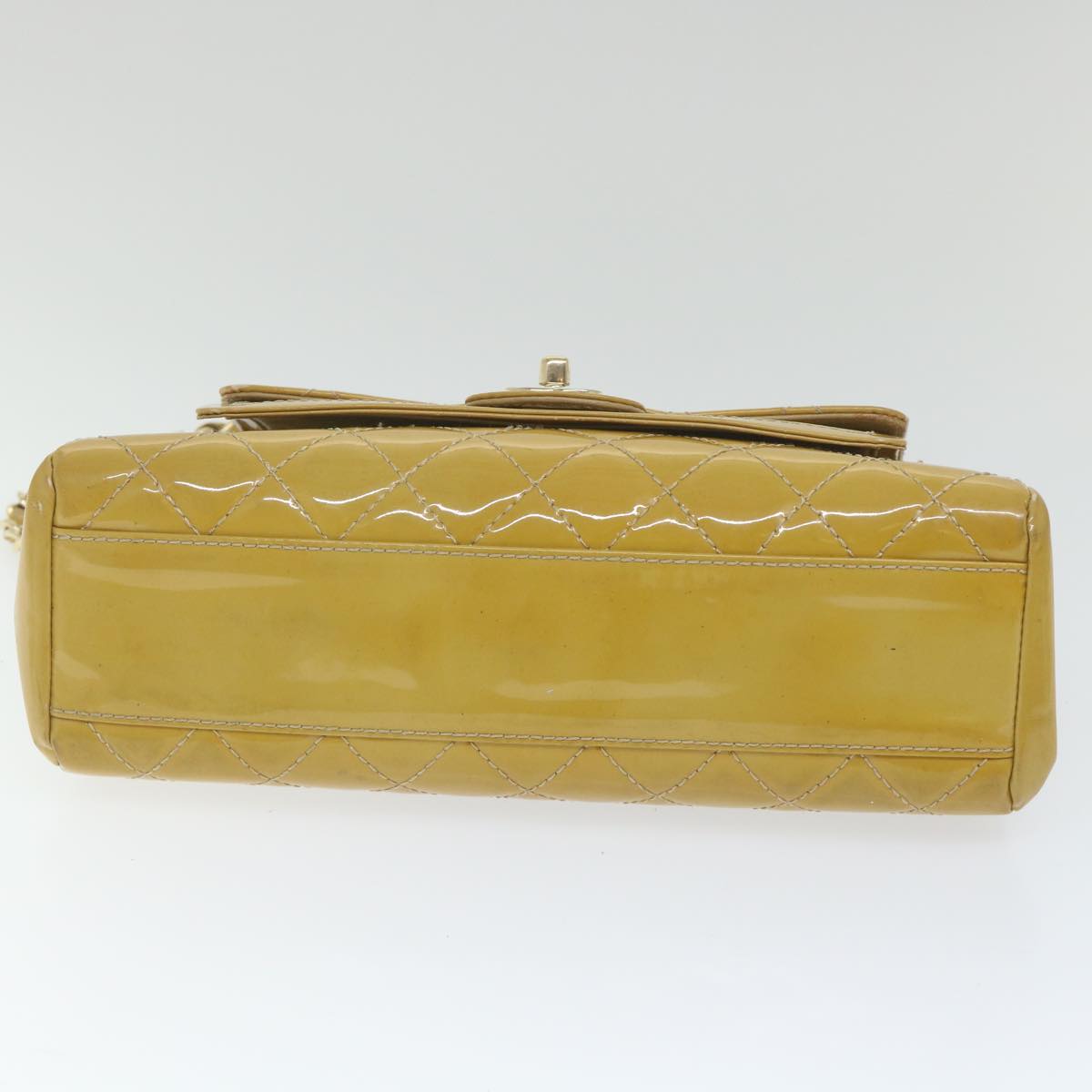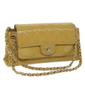 CHANEL Matelasse Chain Shoulder Bag Patent leather Yellow CC Auth 58350A