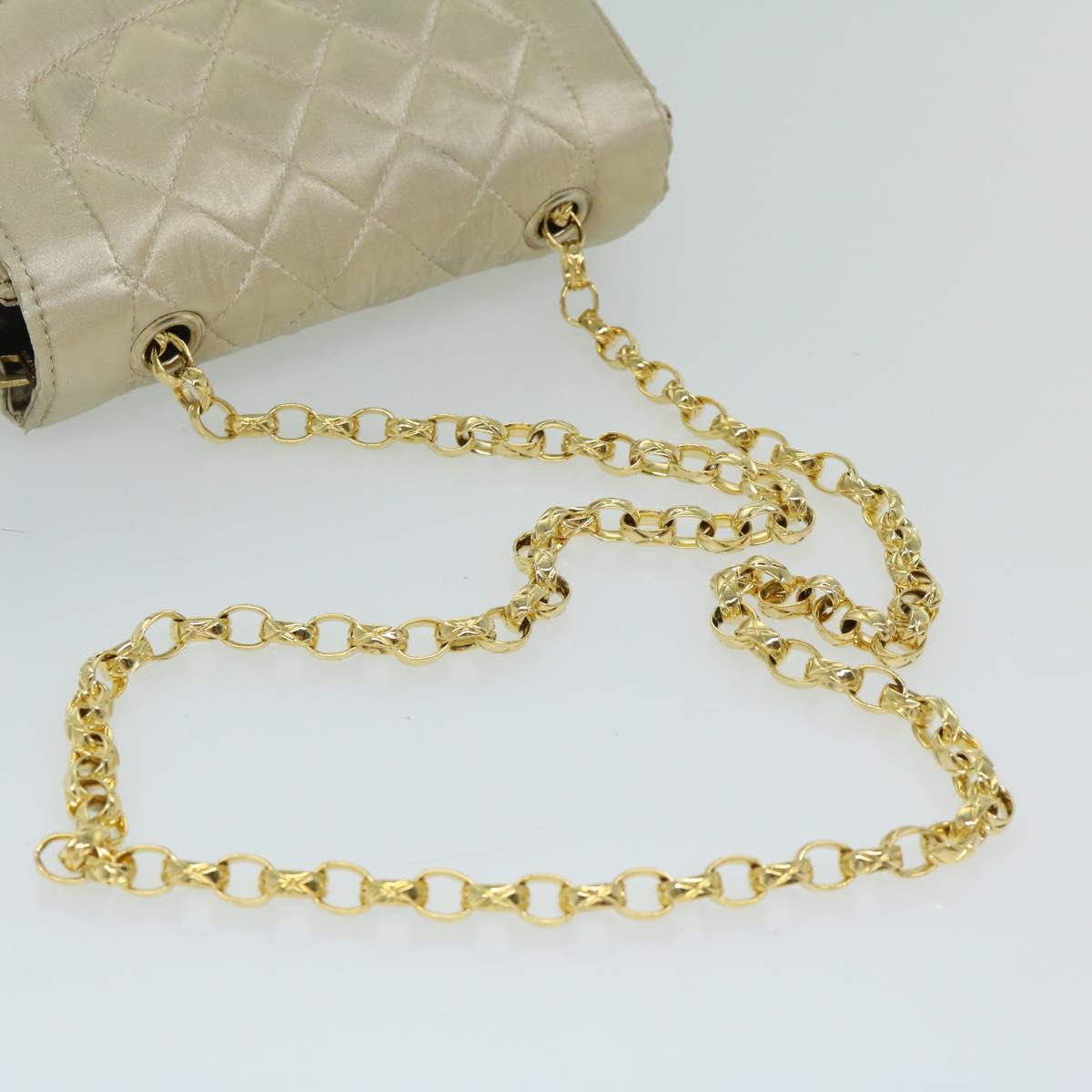CHANEL Matelasse Chain Shoulder Bag Satin Gold CC Auth 67057A