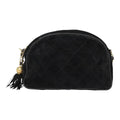 CHANEL Matelasse Chain Shoulder Bag Suede Black Gold CC Auth bs17434