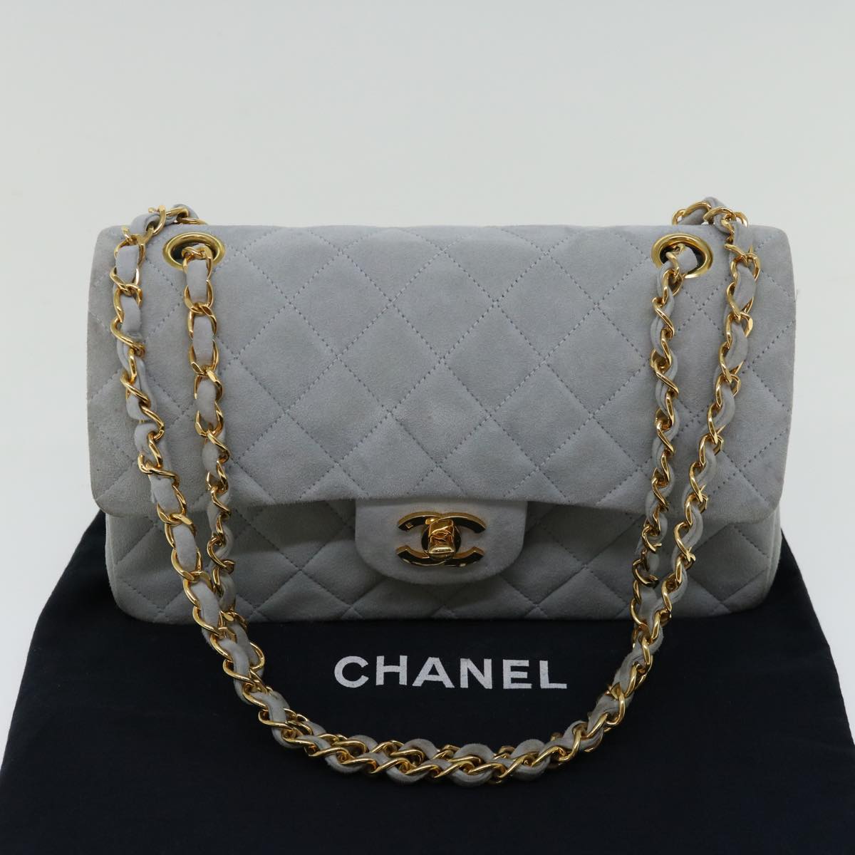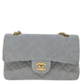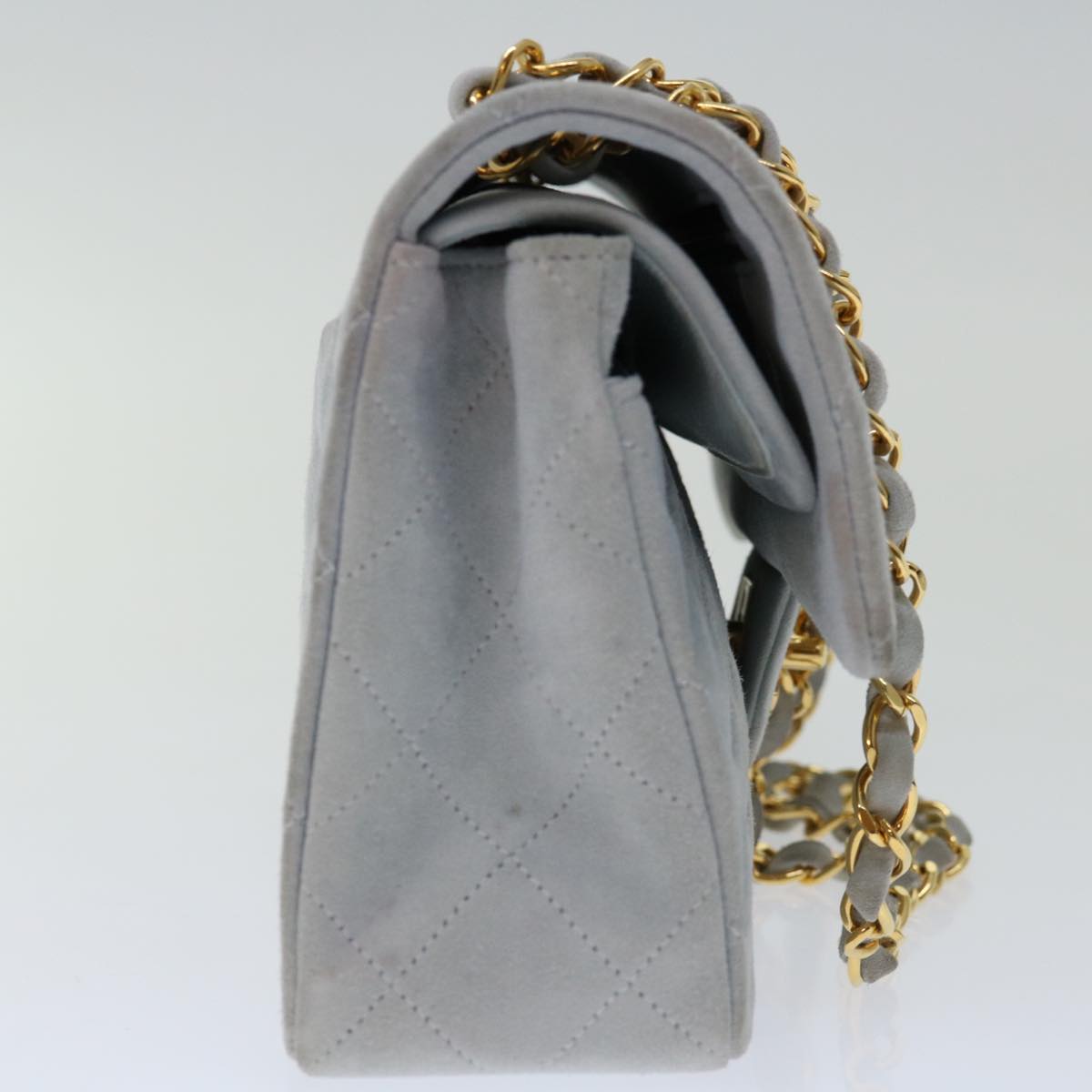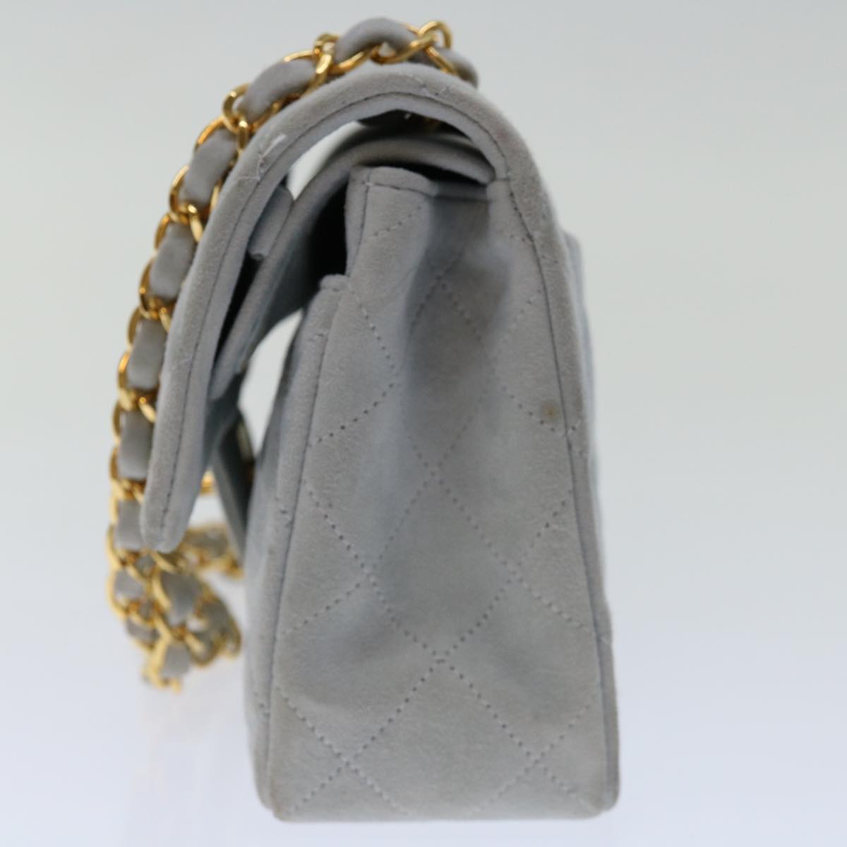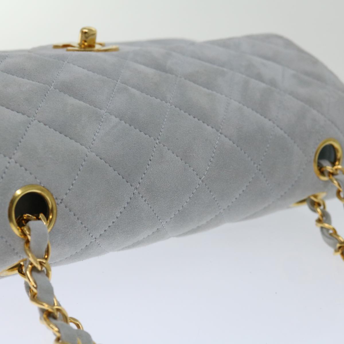 CHANEL Matelasse Chain Shoulder Bag Suede Light Blue CC Auth 69060A