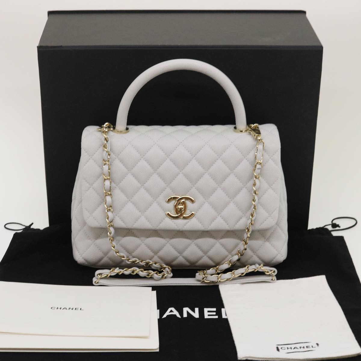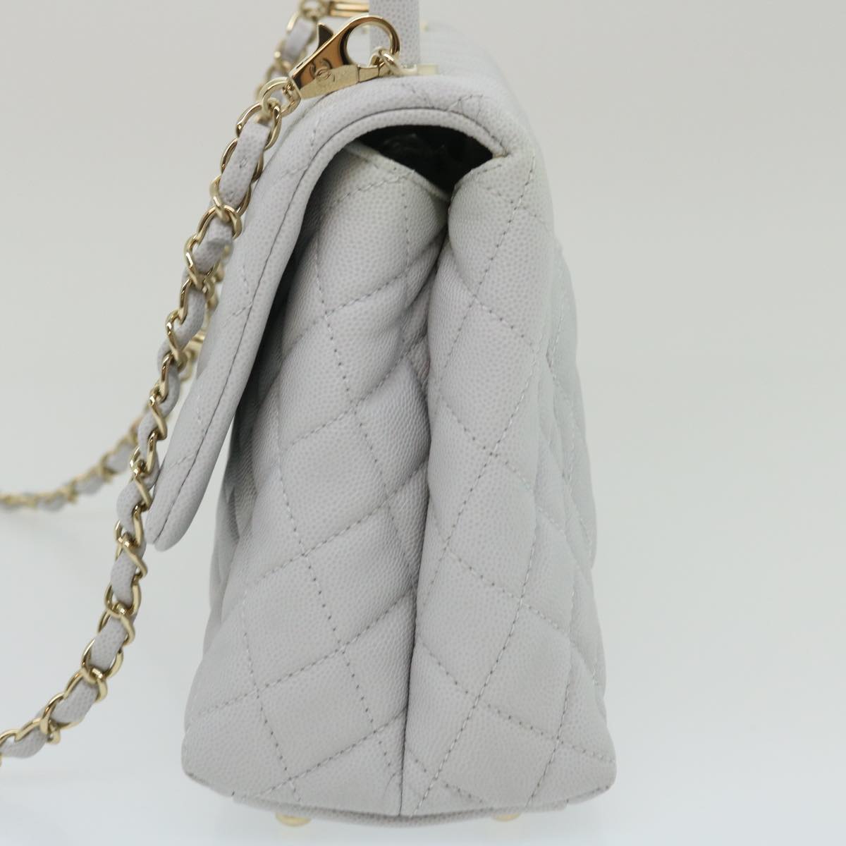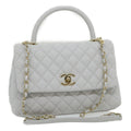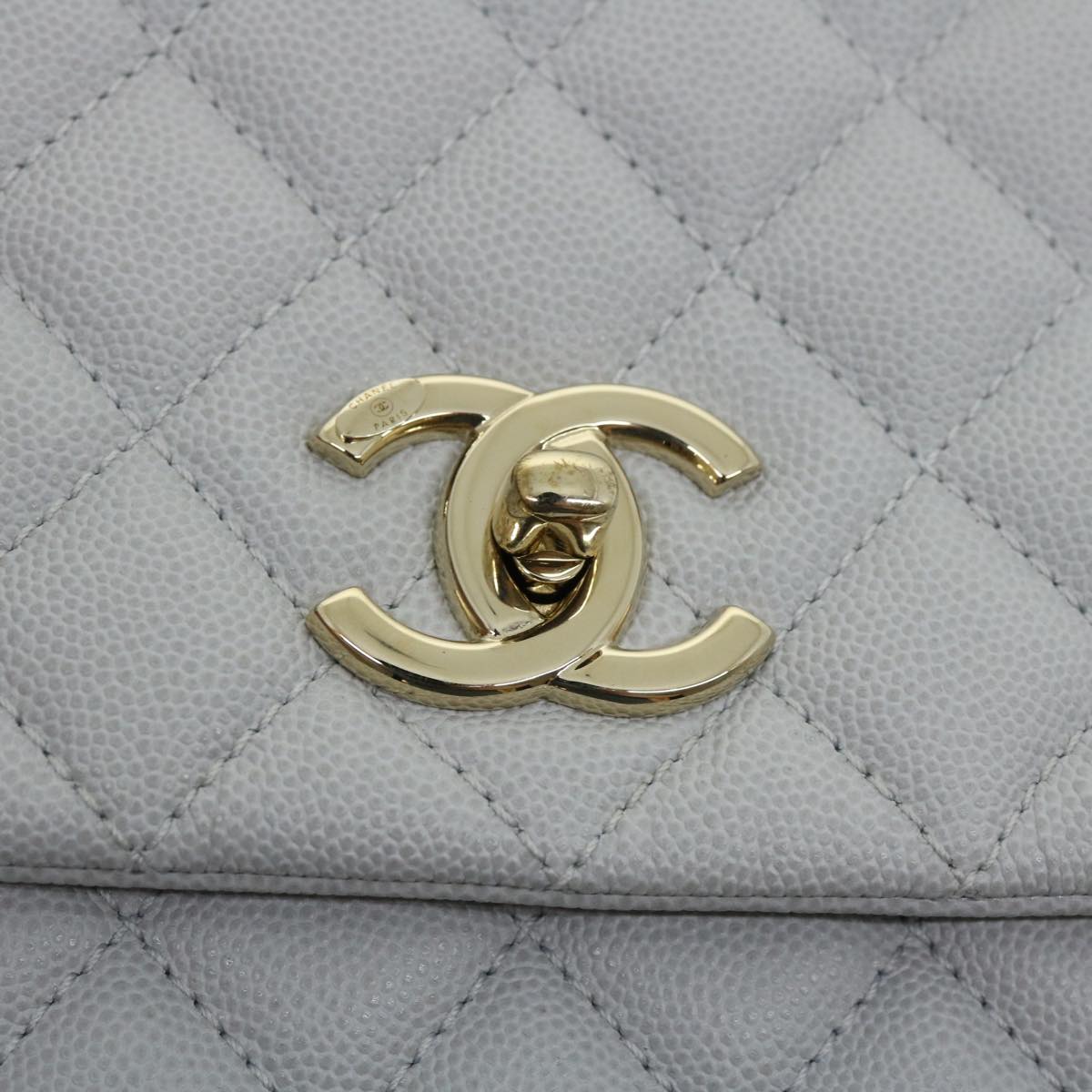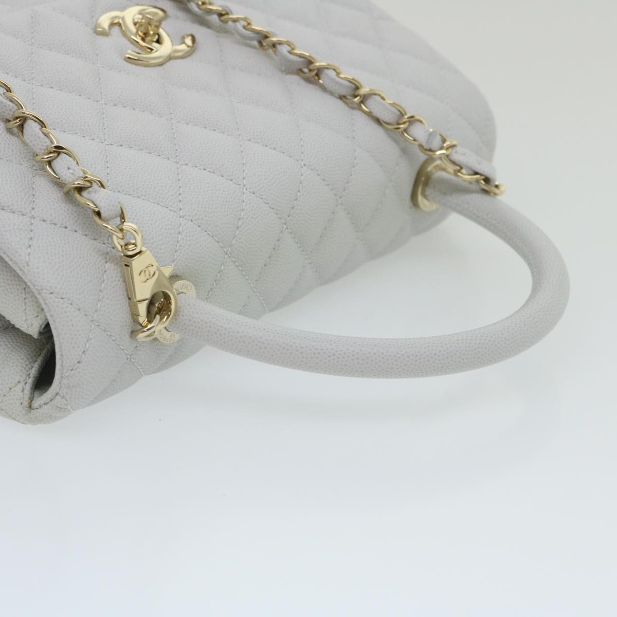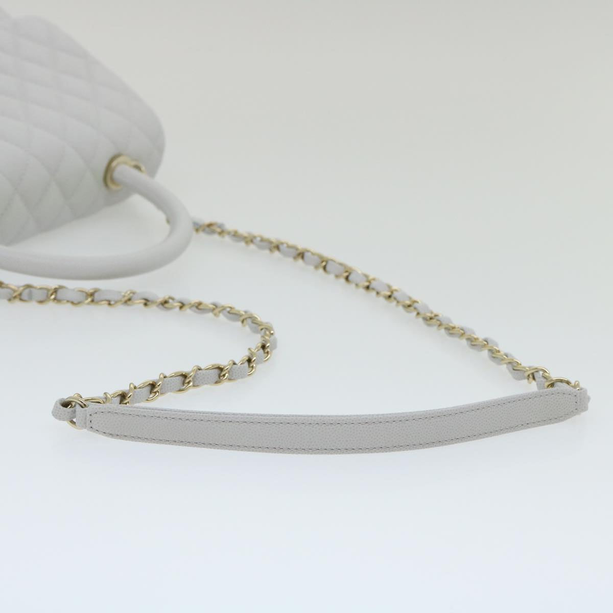 CHANEL Matelasse Chain Shoulder Hand Bag Caviar Skin 2way White CC Auth bs910A