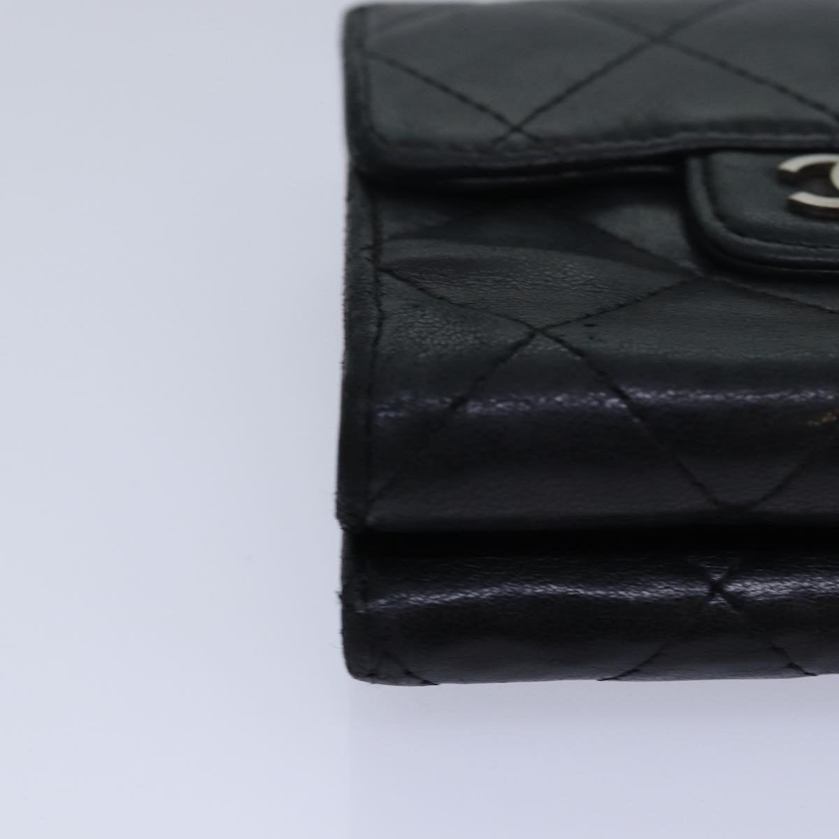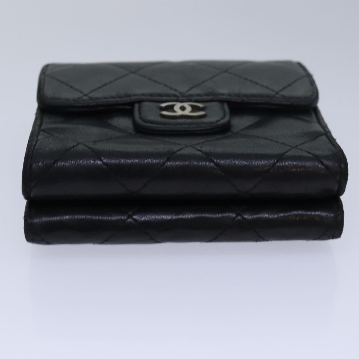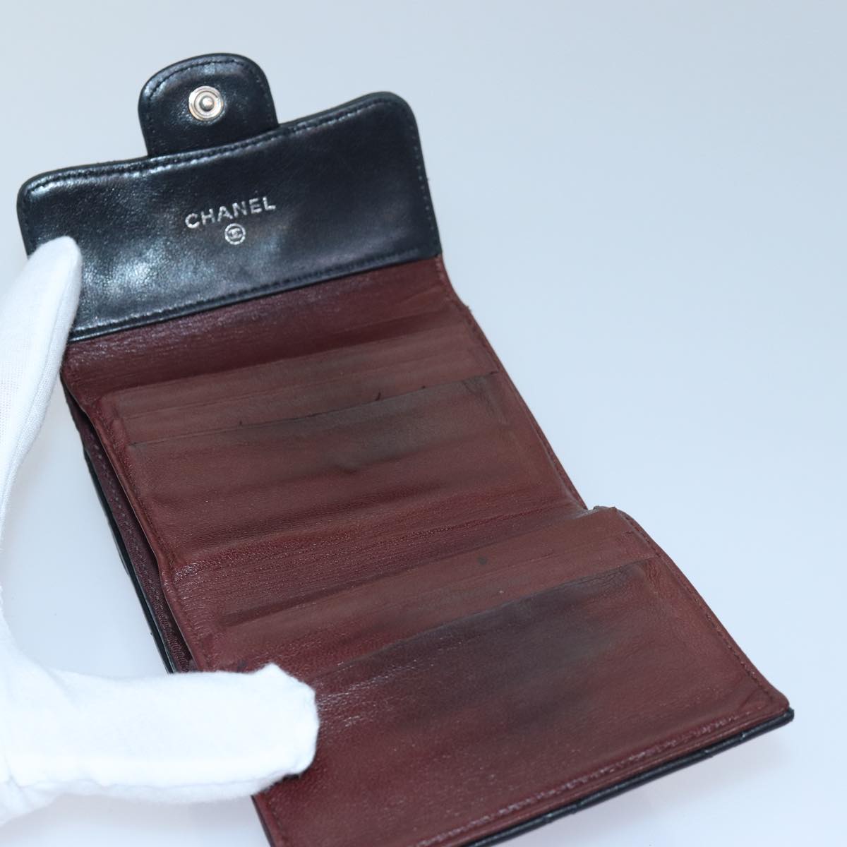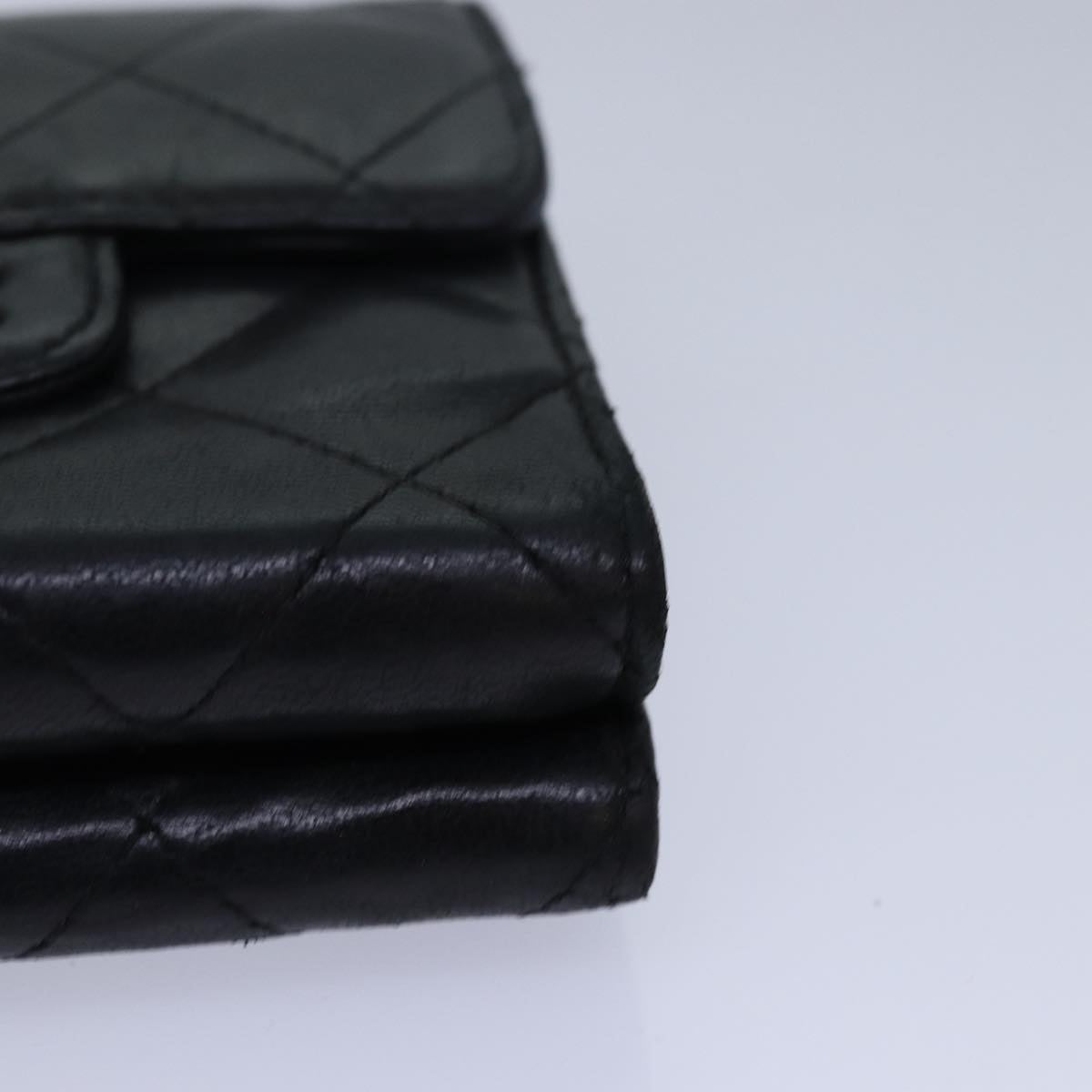 CHANEL Matelasse Compact Wallet Lamb Skin Black CC Auth yk13810