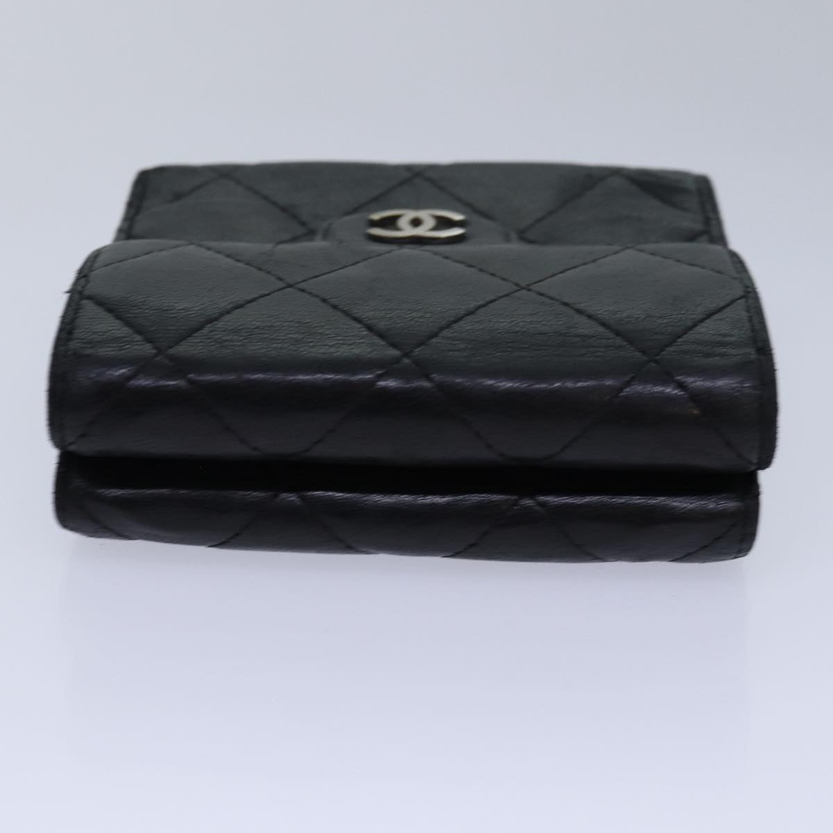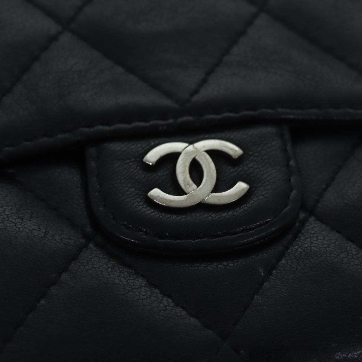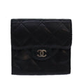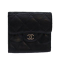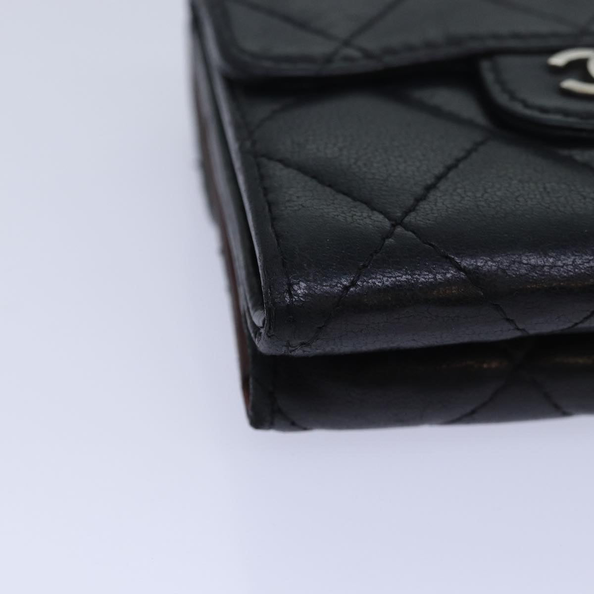 CHANEL Matelasse Compact Wallet Lamb Skin Black CC Auth yk13810