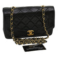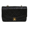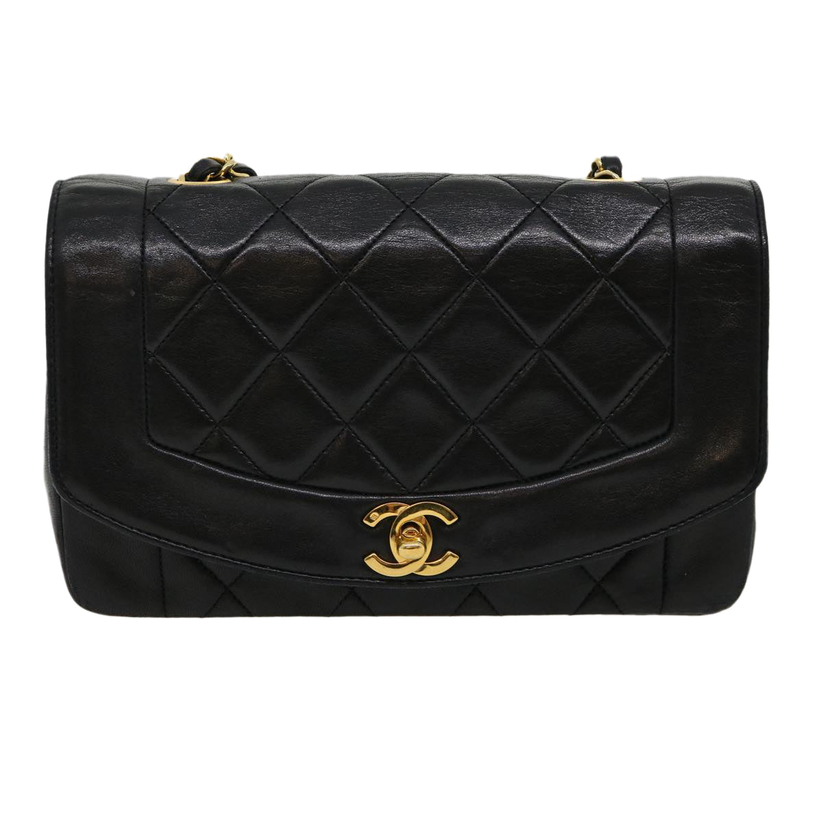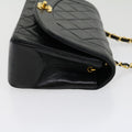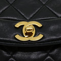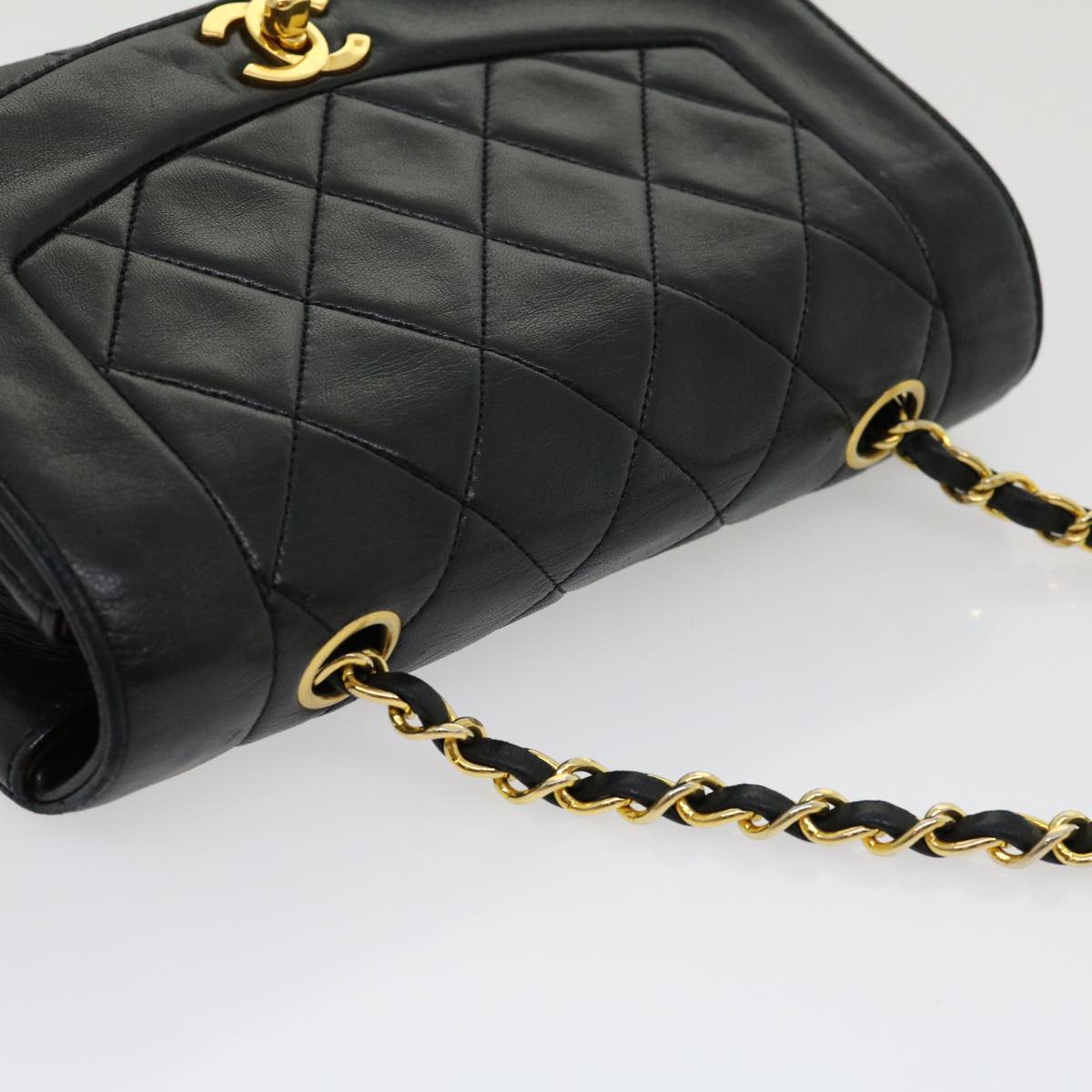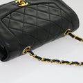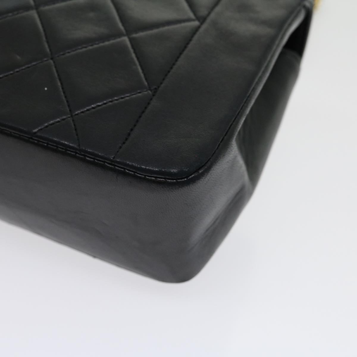 CHANEL Matelasse Diana Turn Lock Chain Shoulder Bag Lamb Skin Black Auth ar7368A