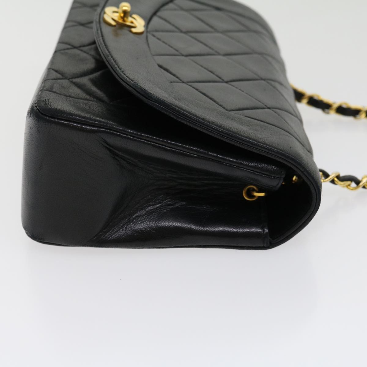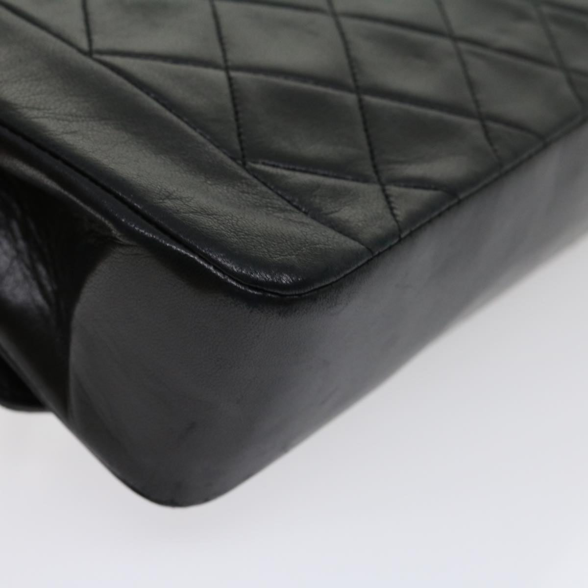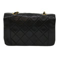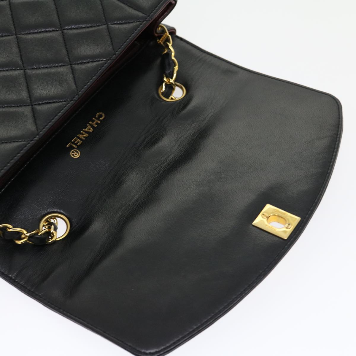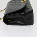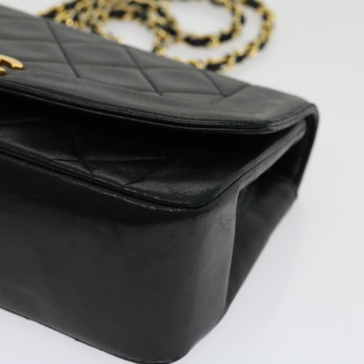 CHANEL Matelasse Diana Turn Lock Chain Shoulder Bag Lamb Skin Black Auth ar7368A