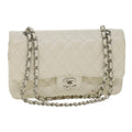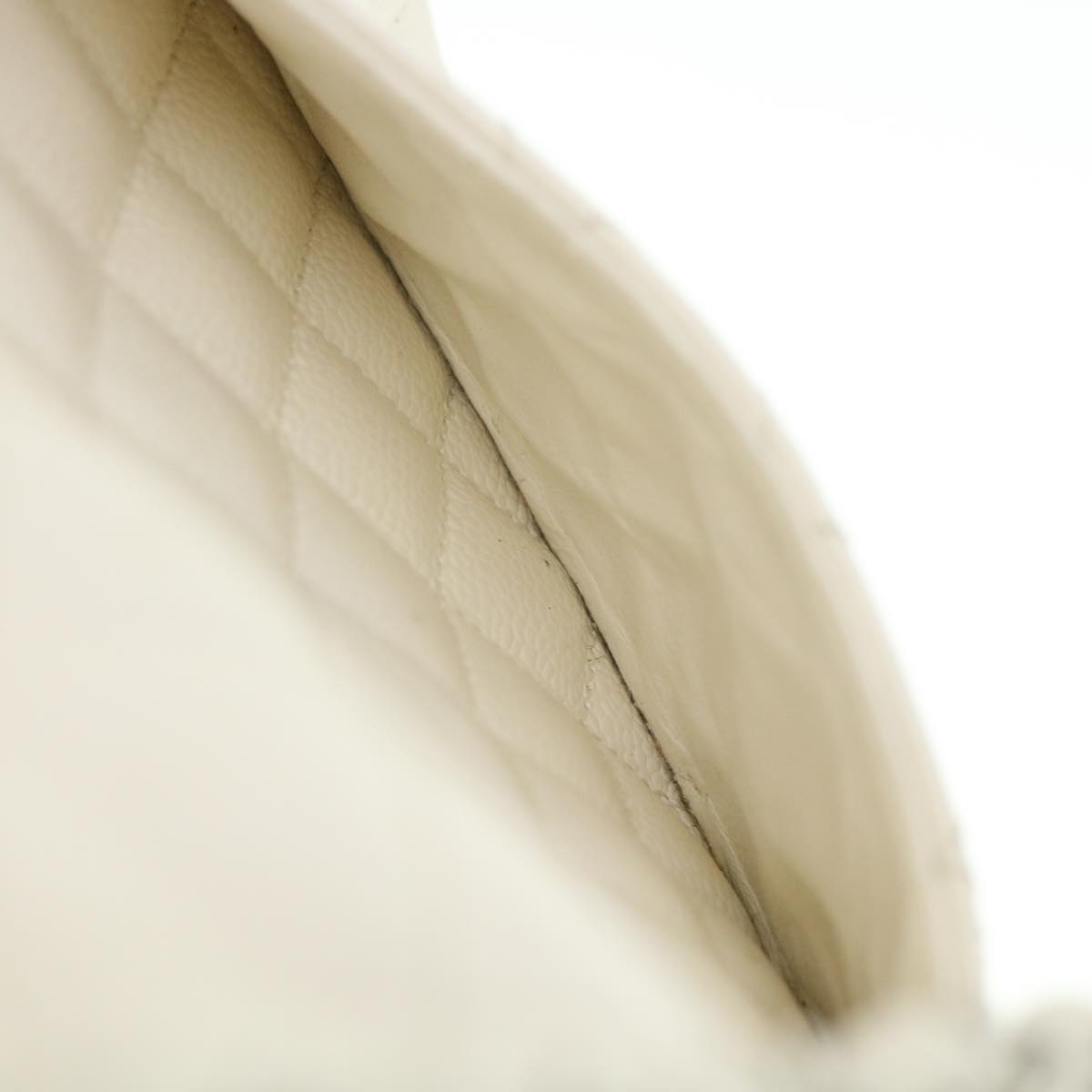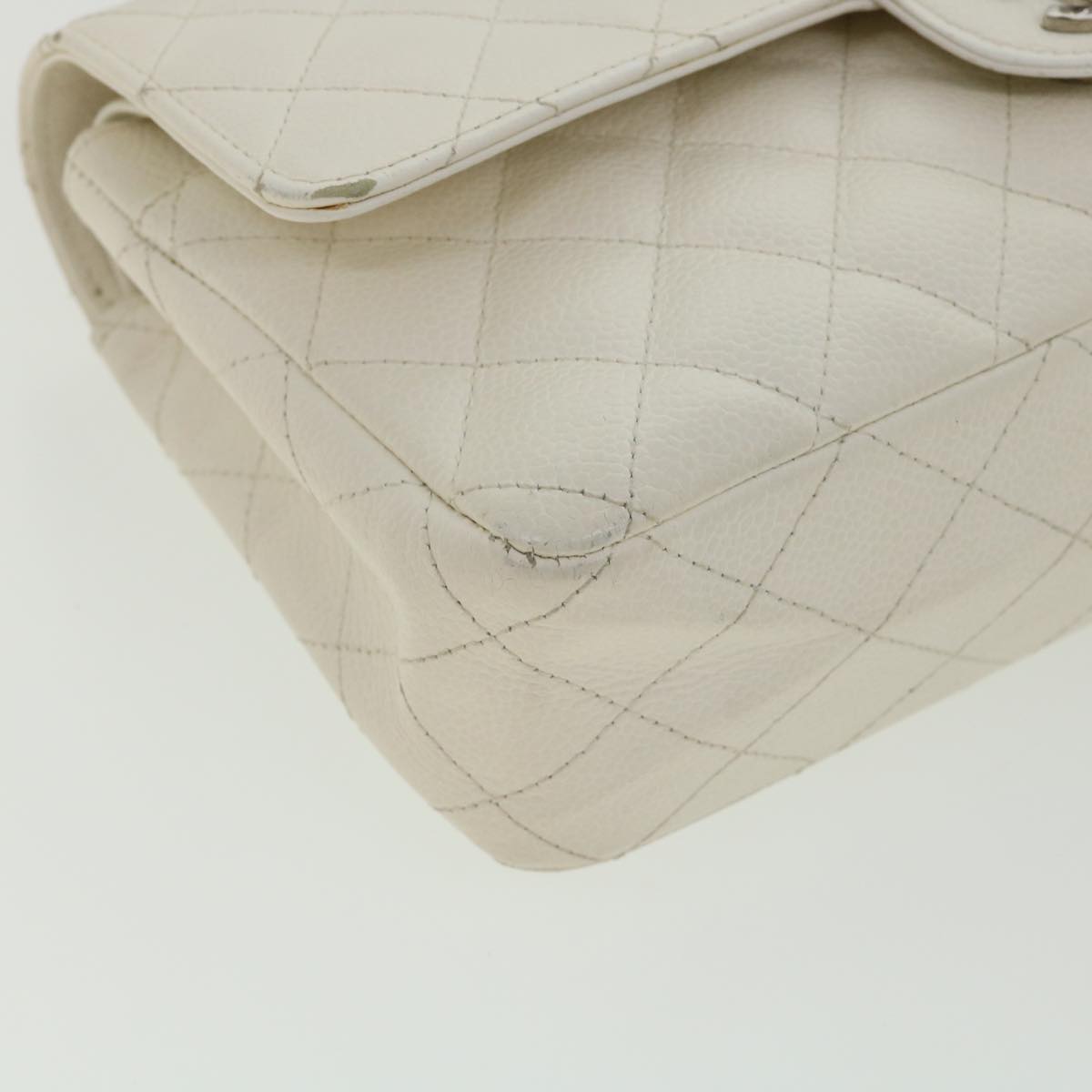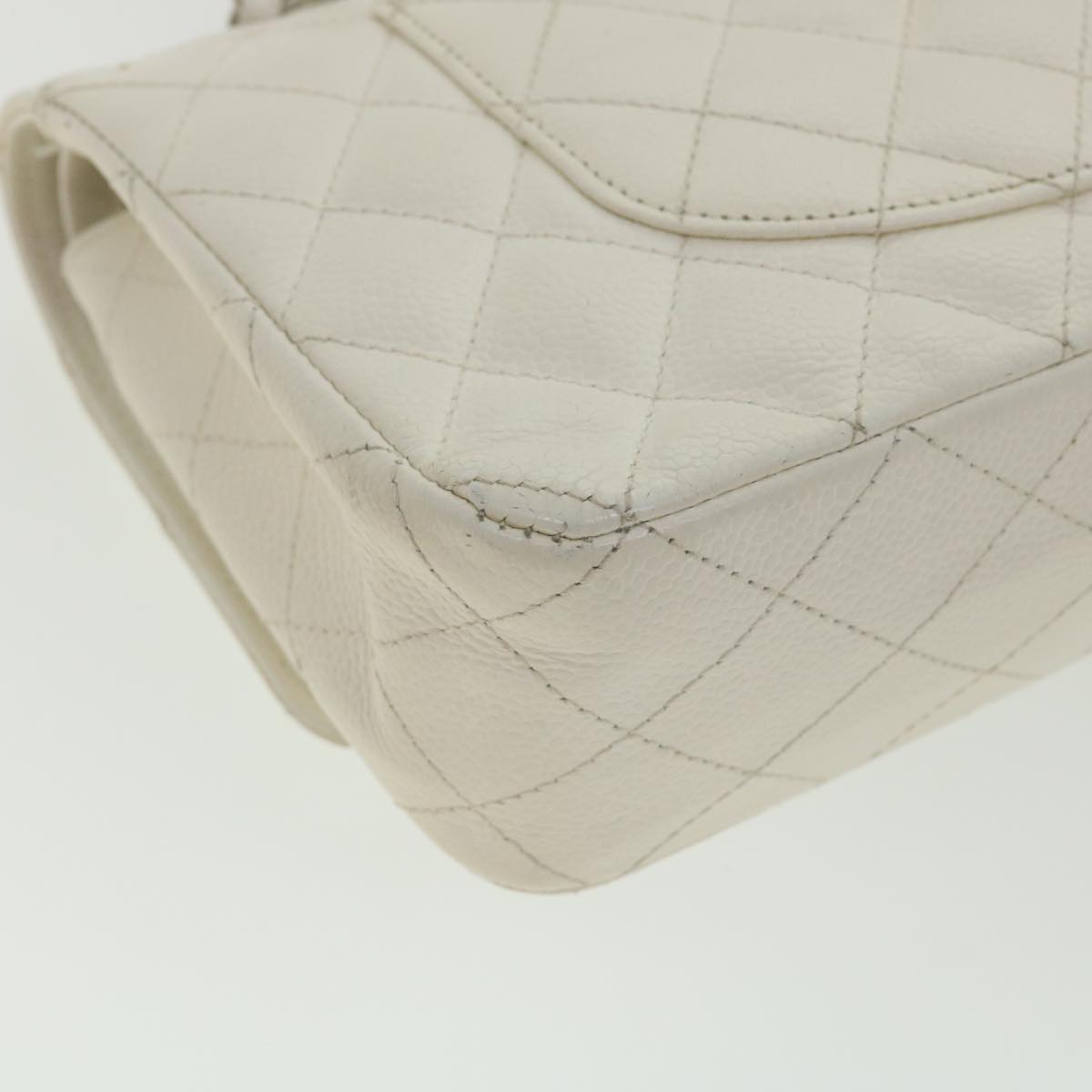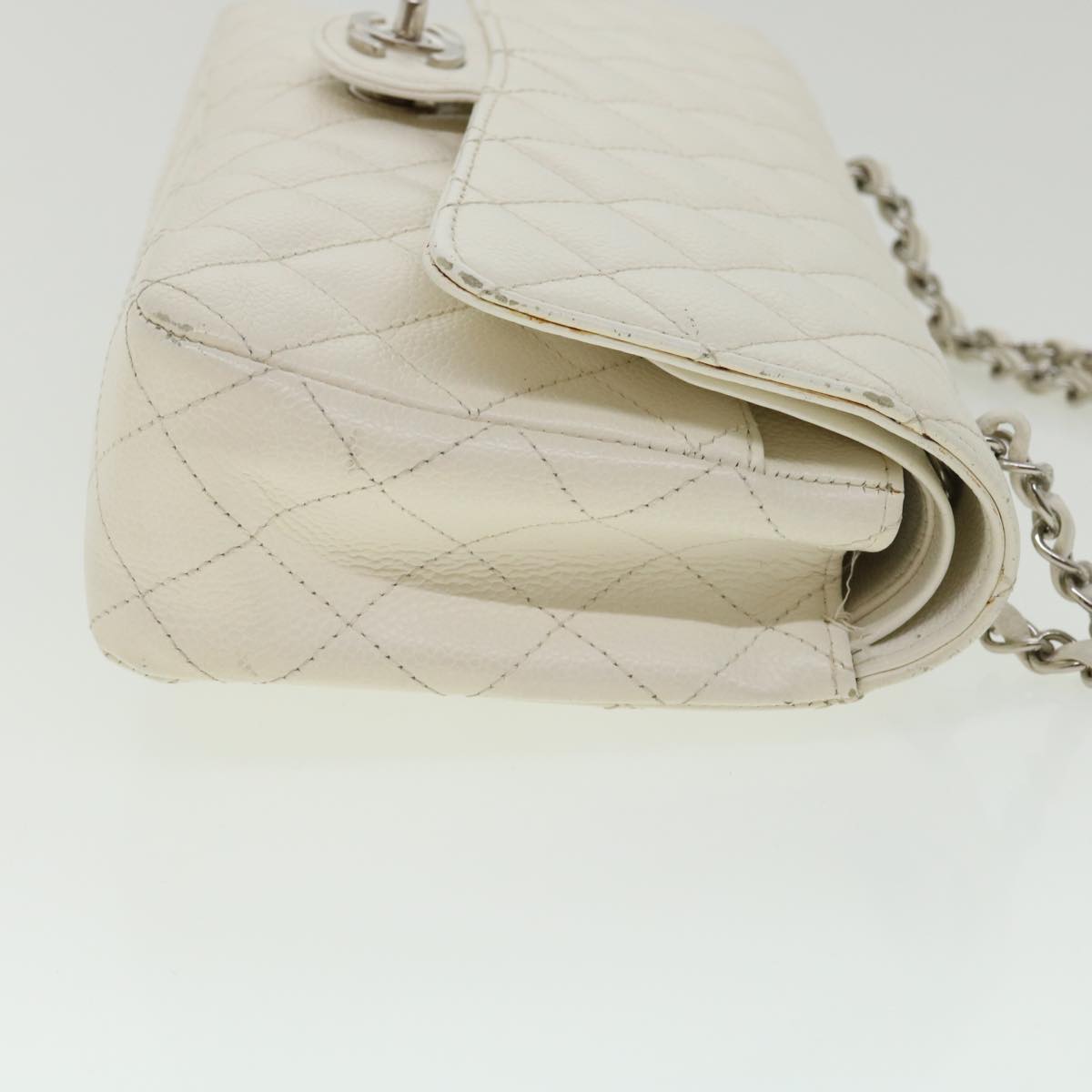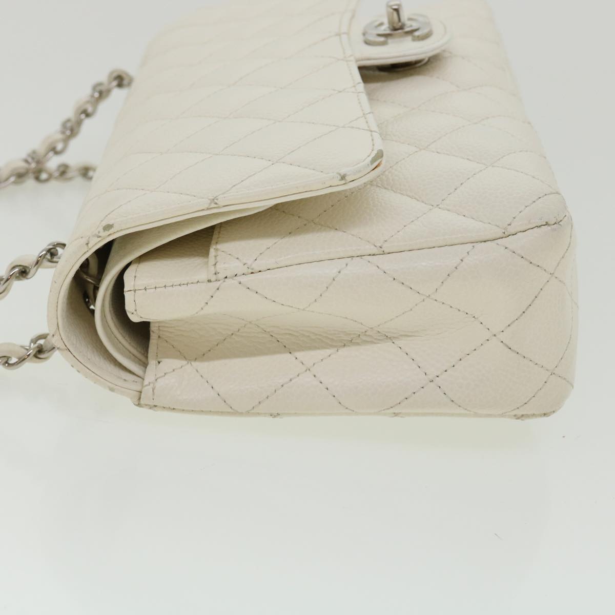 CHANEL Matelasse Double New Chain Shoulder Bag Caviar Skin White CC Auth knn085