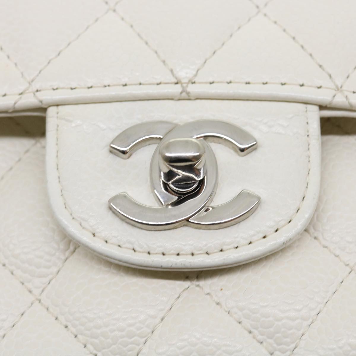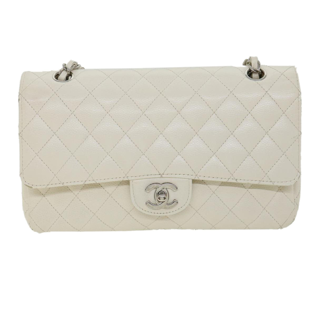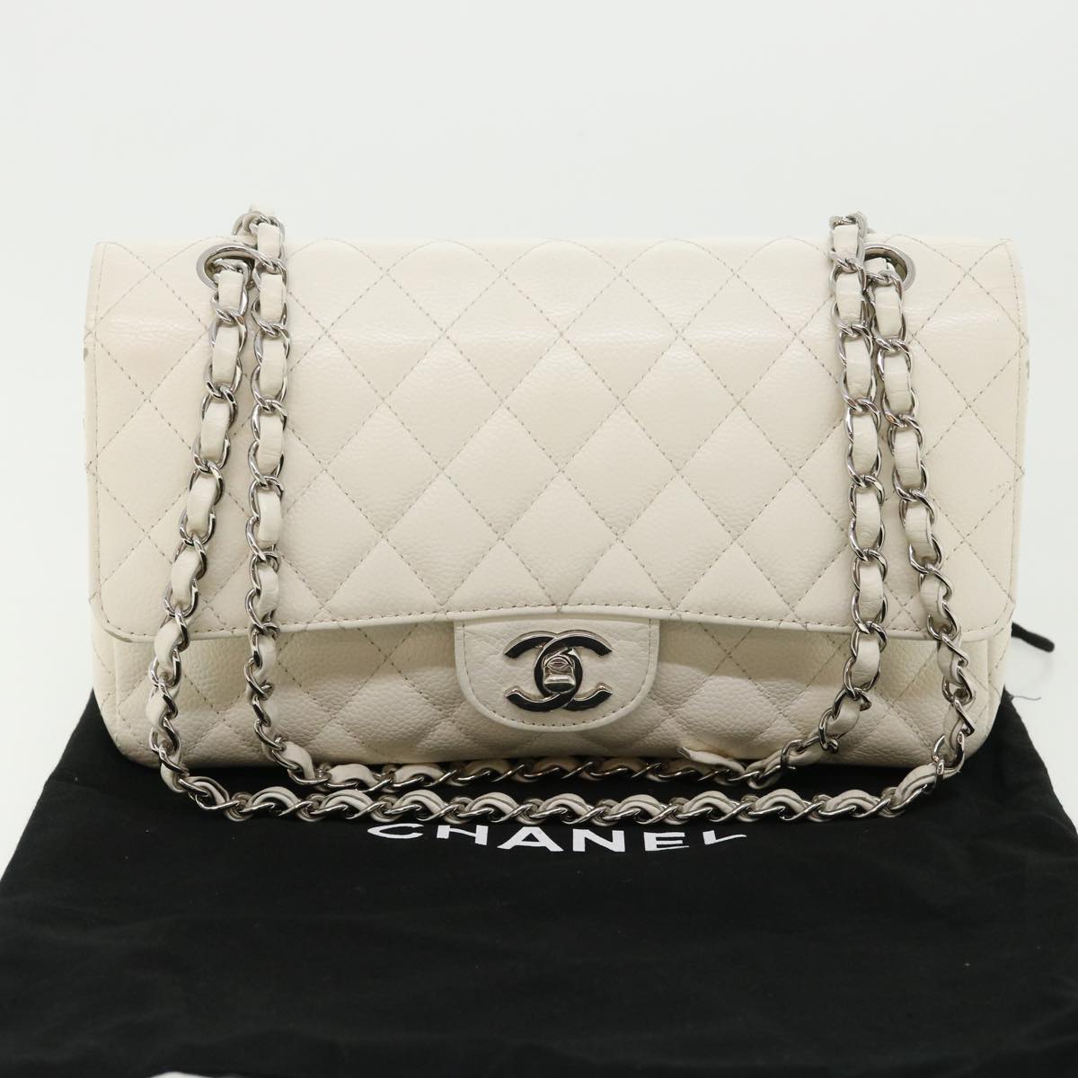 Top Quality Chanel Matelasse Double New Chain Shoulder Bag Caviar Skin White CC Auth knn085