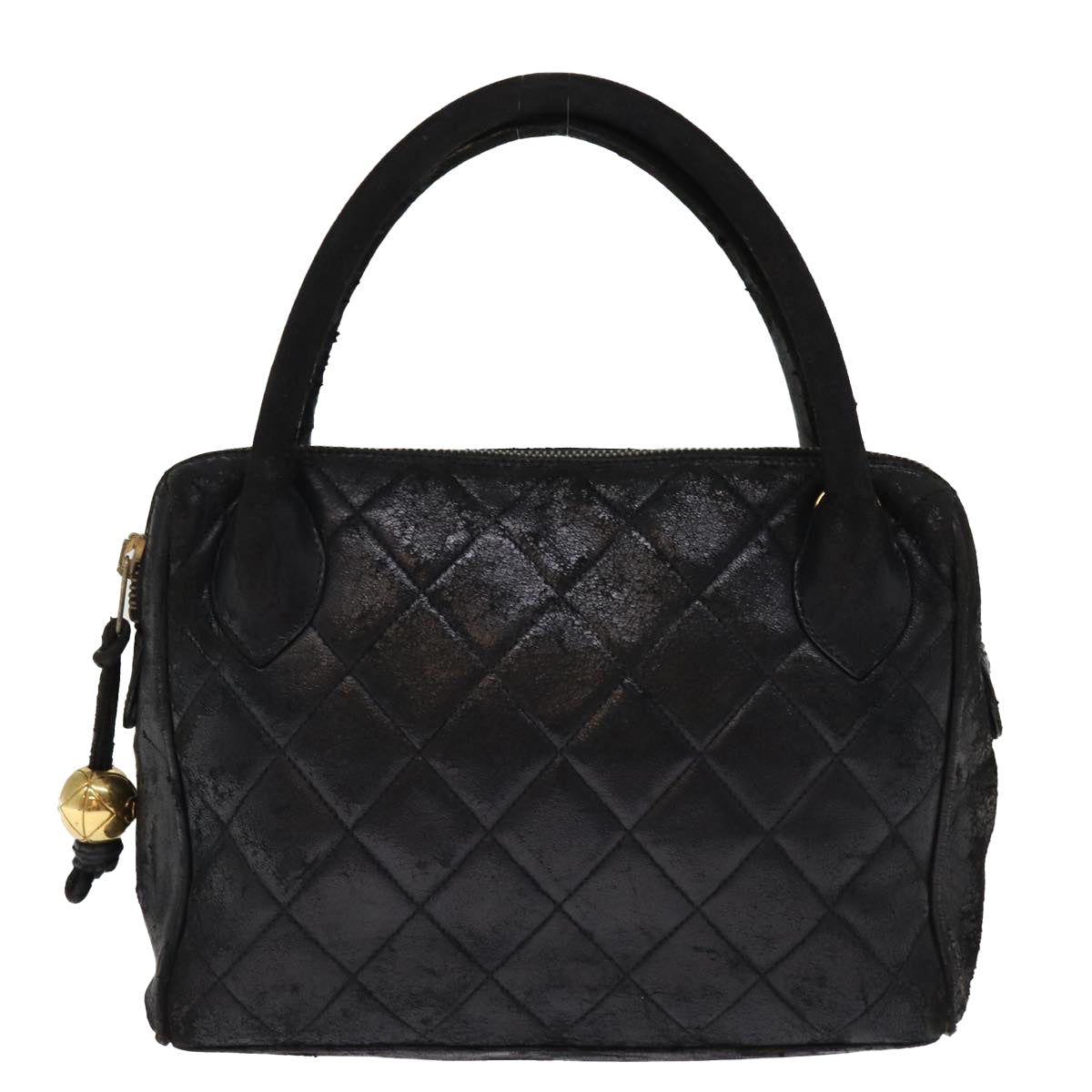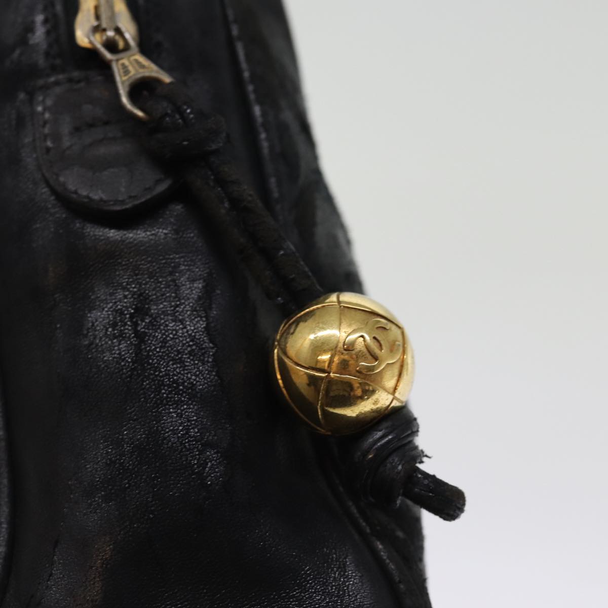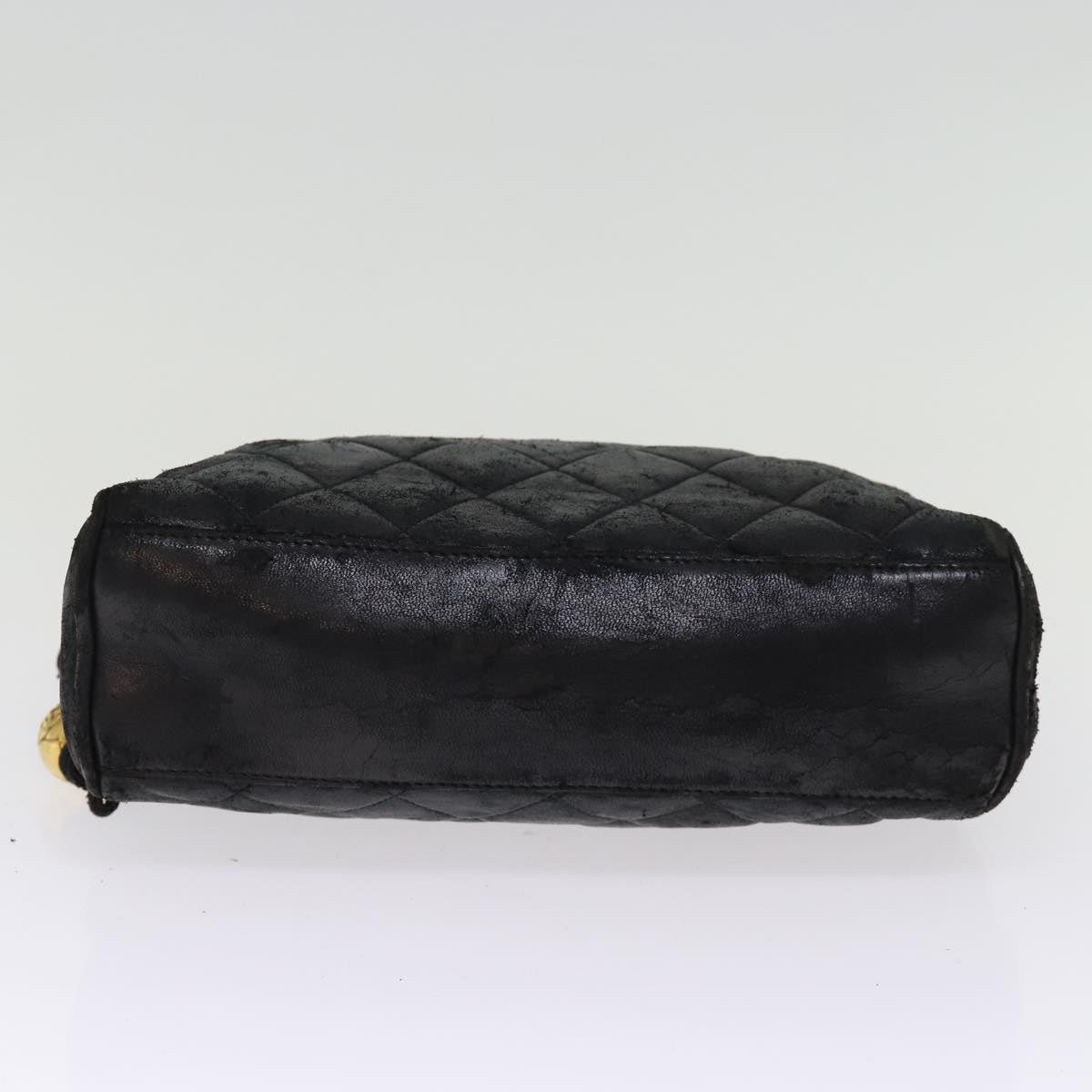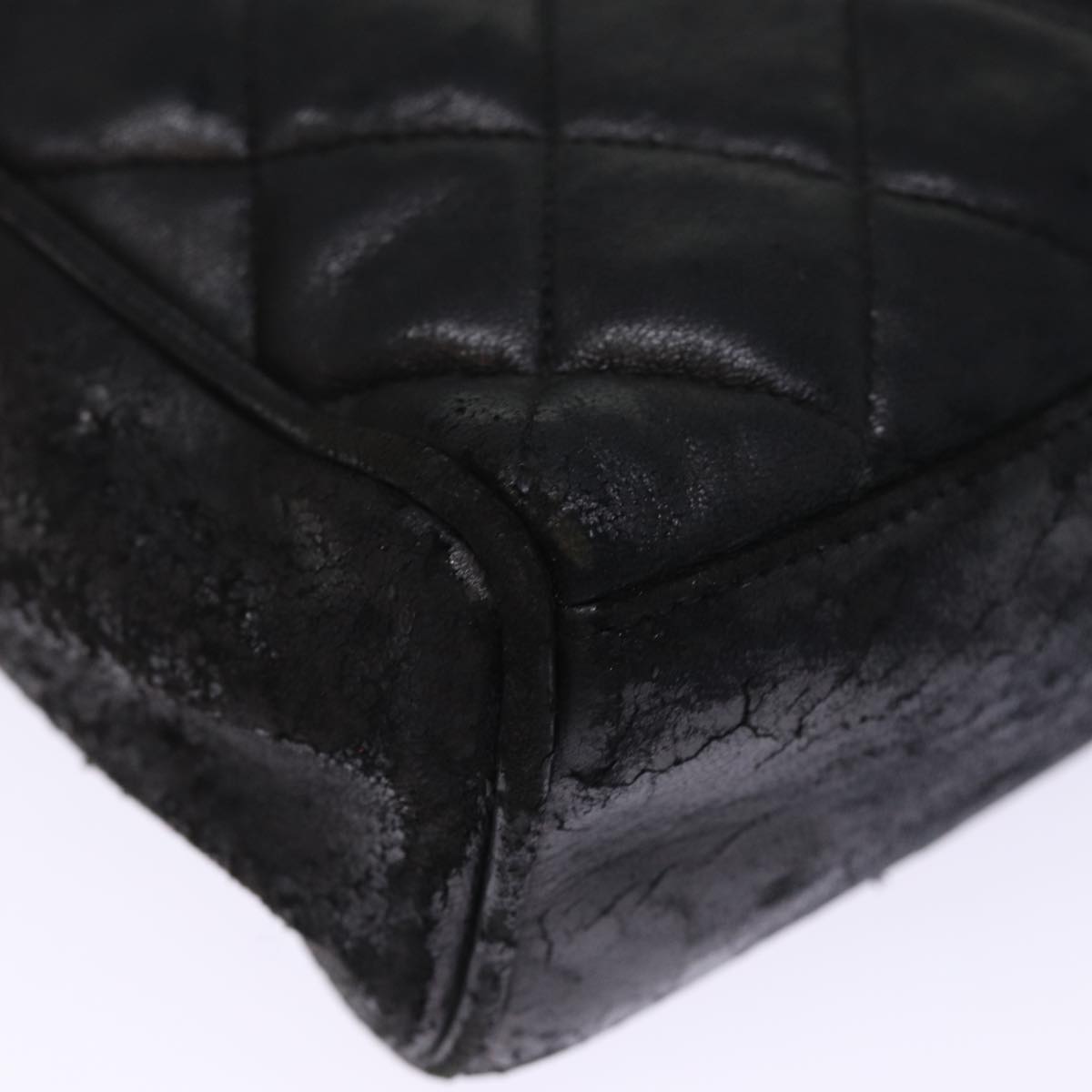 CHANEL Matelasse Hand Bag Lamb Skin Black CC Auth bs14707
