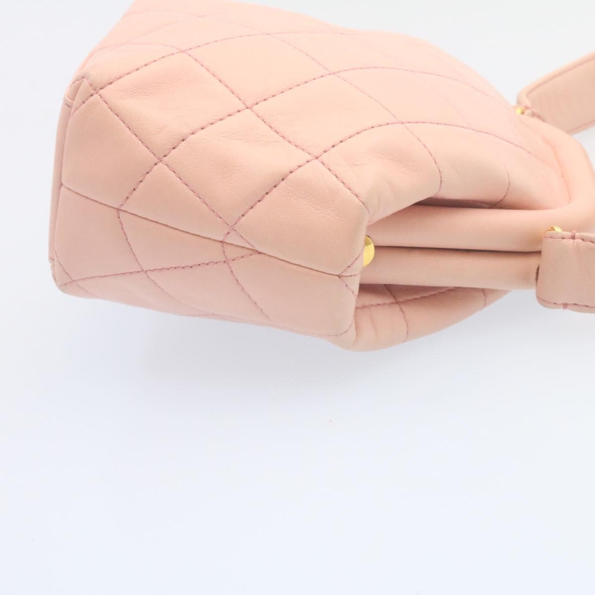 CHANEL Matelasse Hand Bag Lamb Skin Pink CC Auth 29107A