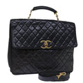 Top Quality Chanel Matelasse Hand Bag Leather 2way Black CC Auth bs13763