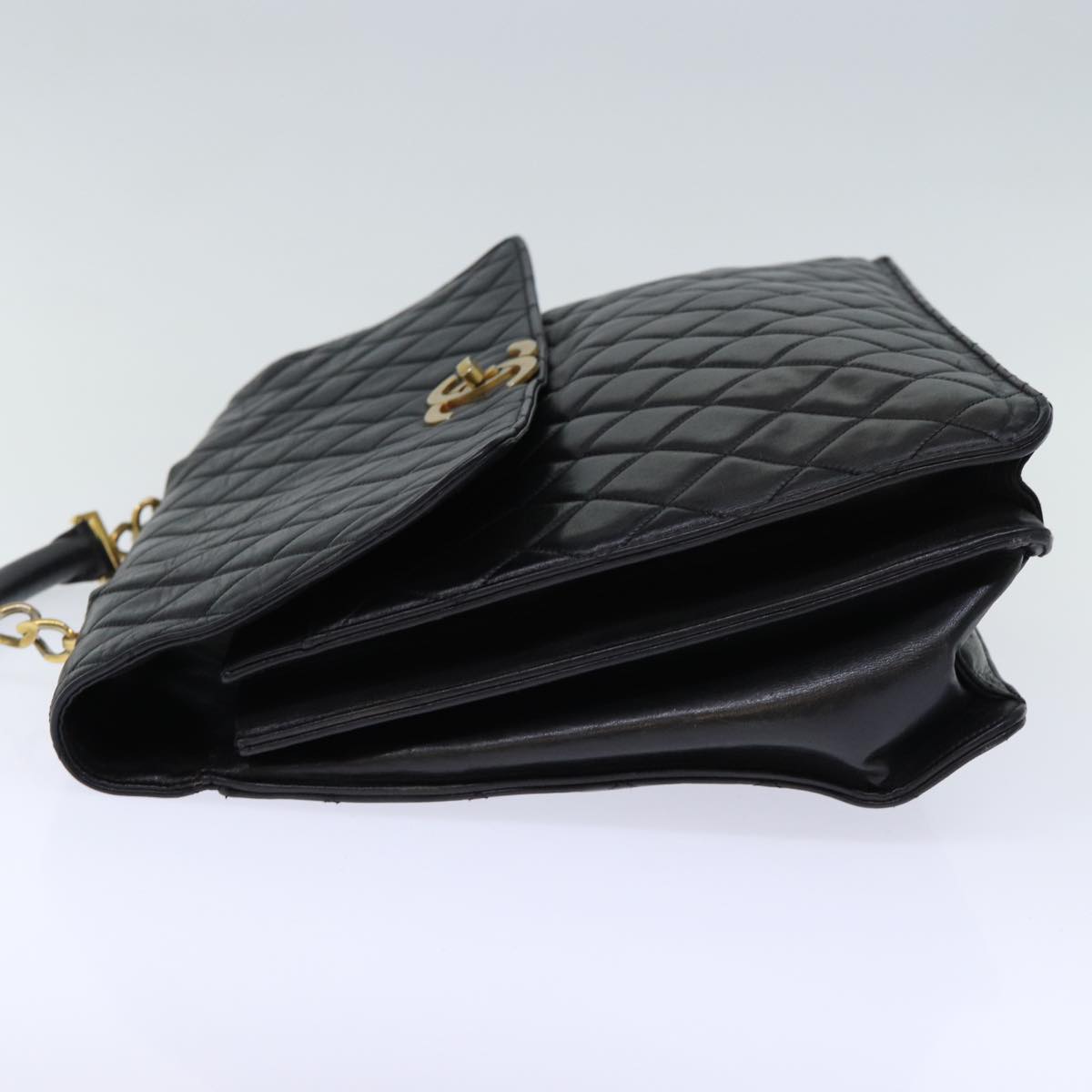 CHANEL Matelasse Hand Bag Leather 2way Black CC Auth bs13763