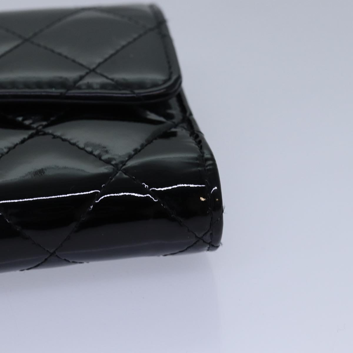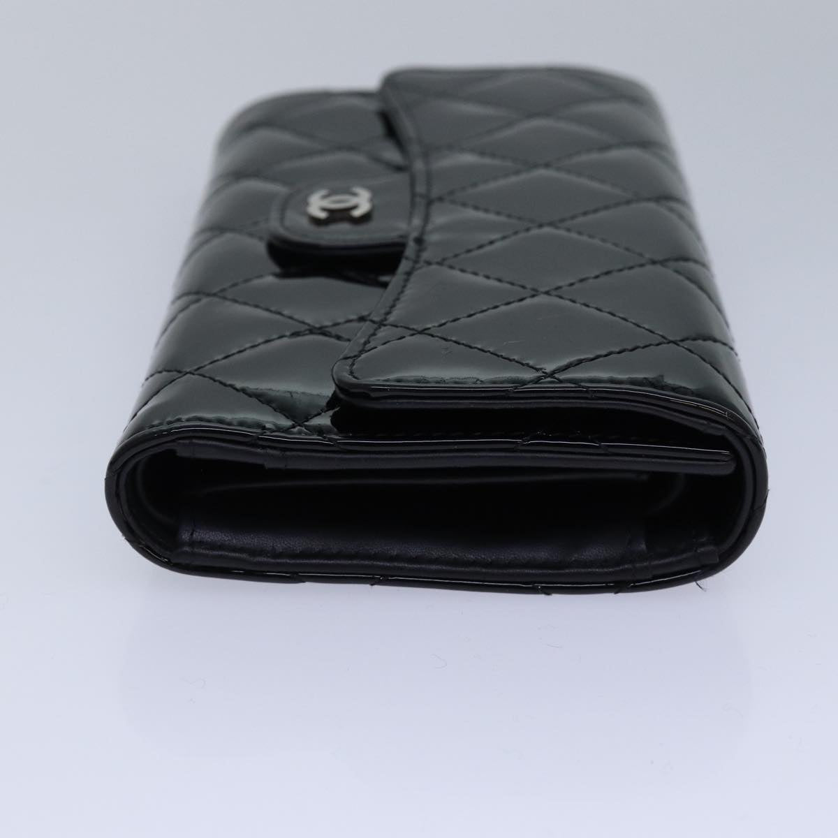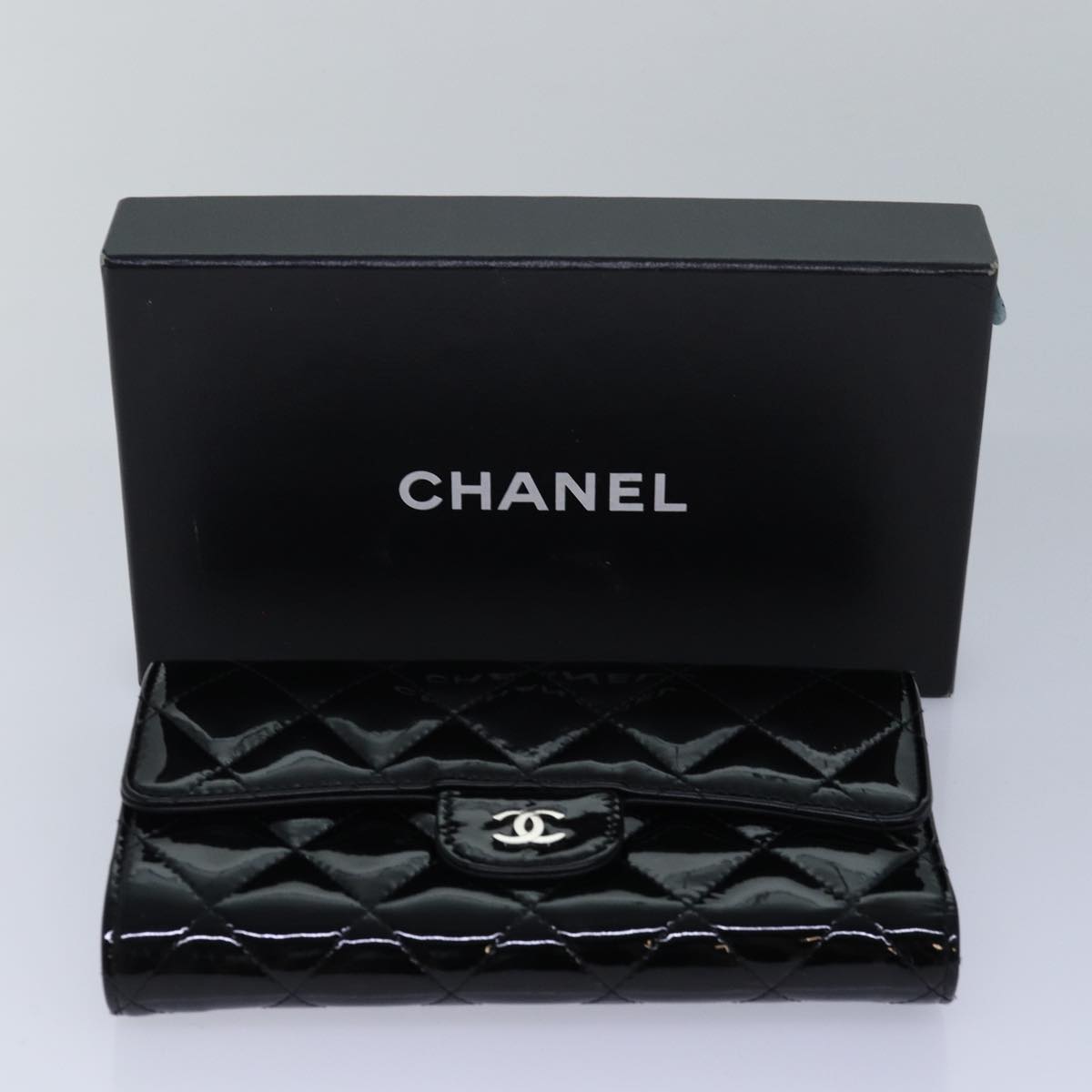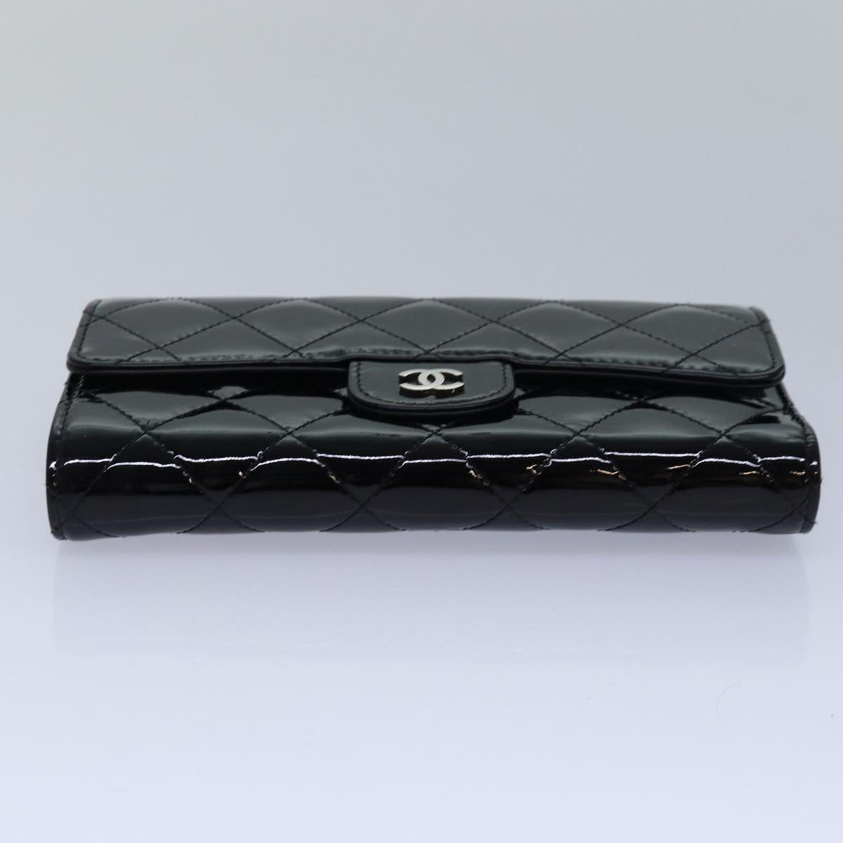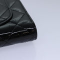 CHANEL Matelasse Long Wallet Enamel Black CC Auth yk13806A