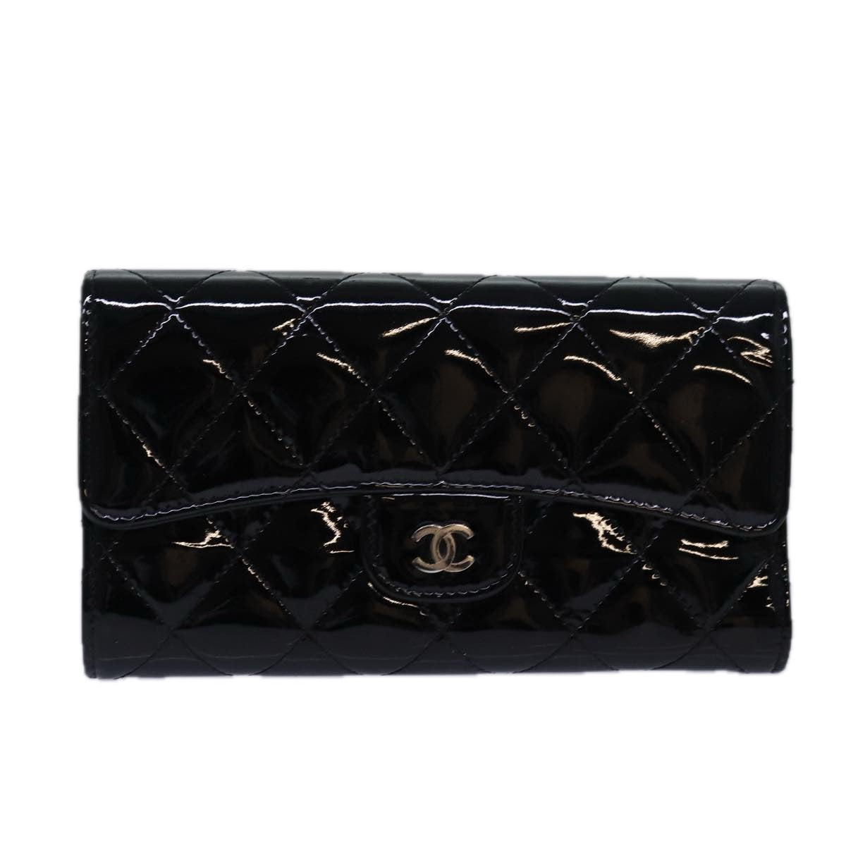 Top Quality Chanel Matelasse Long Wallet Enamel Black CC Auth yk13806A
