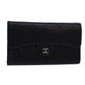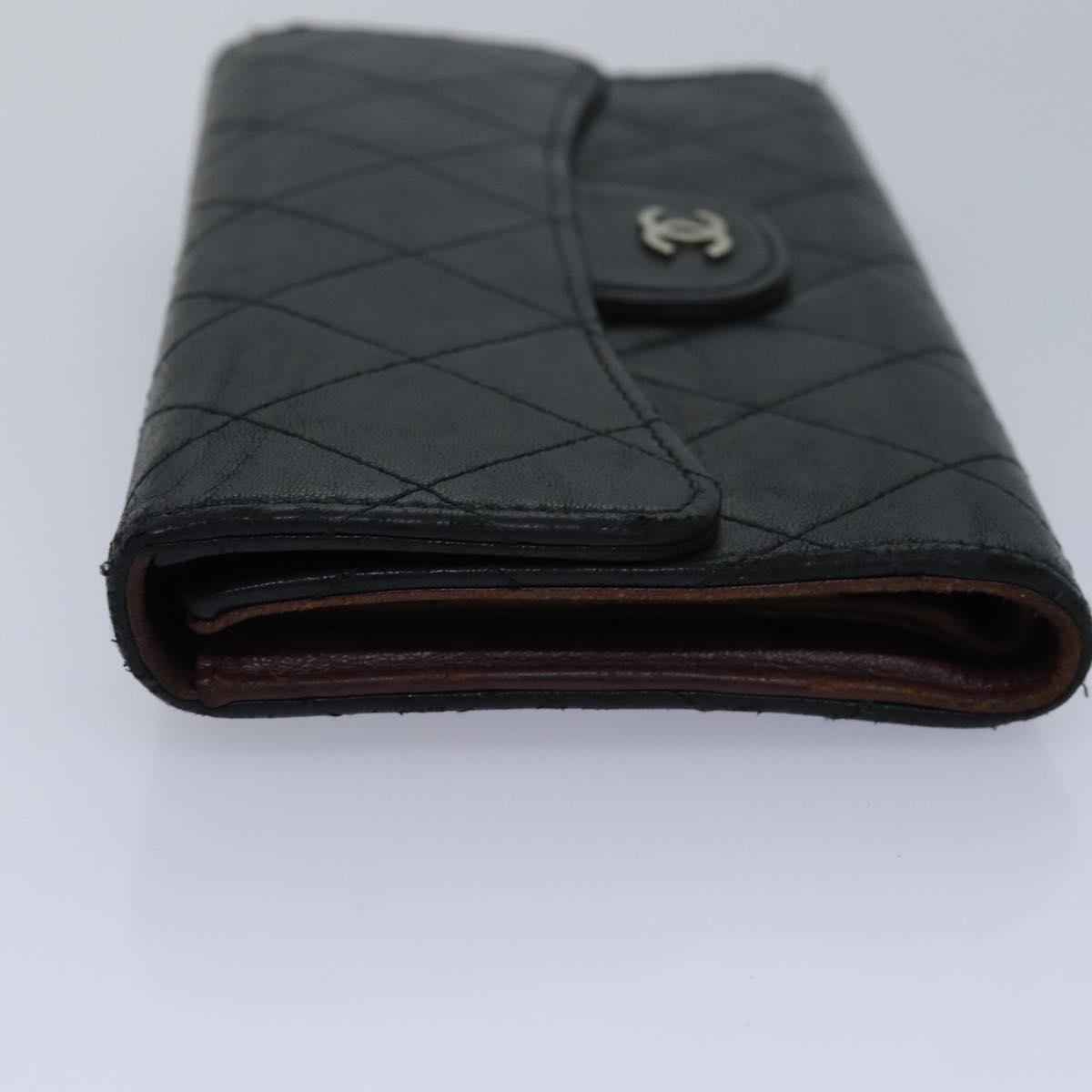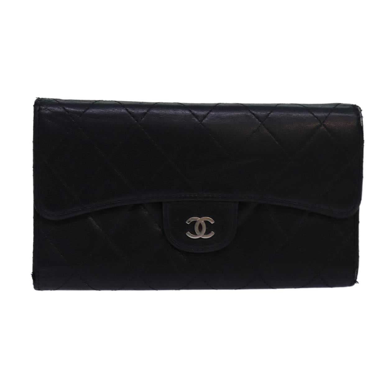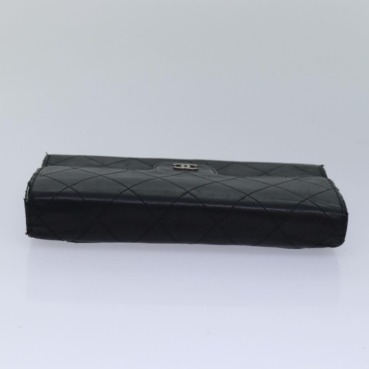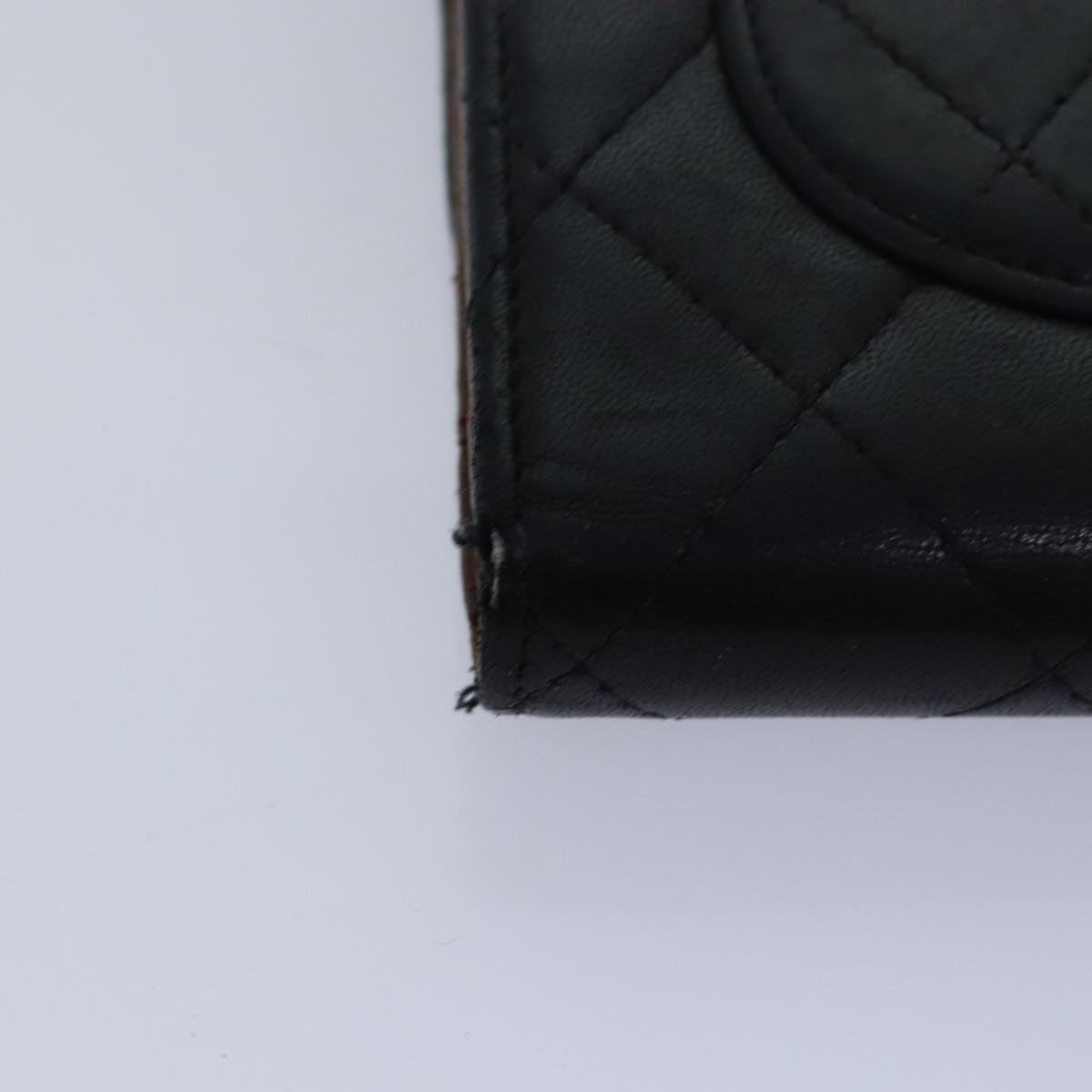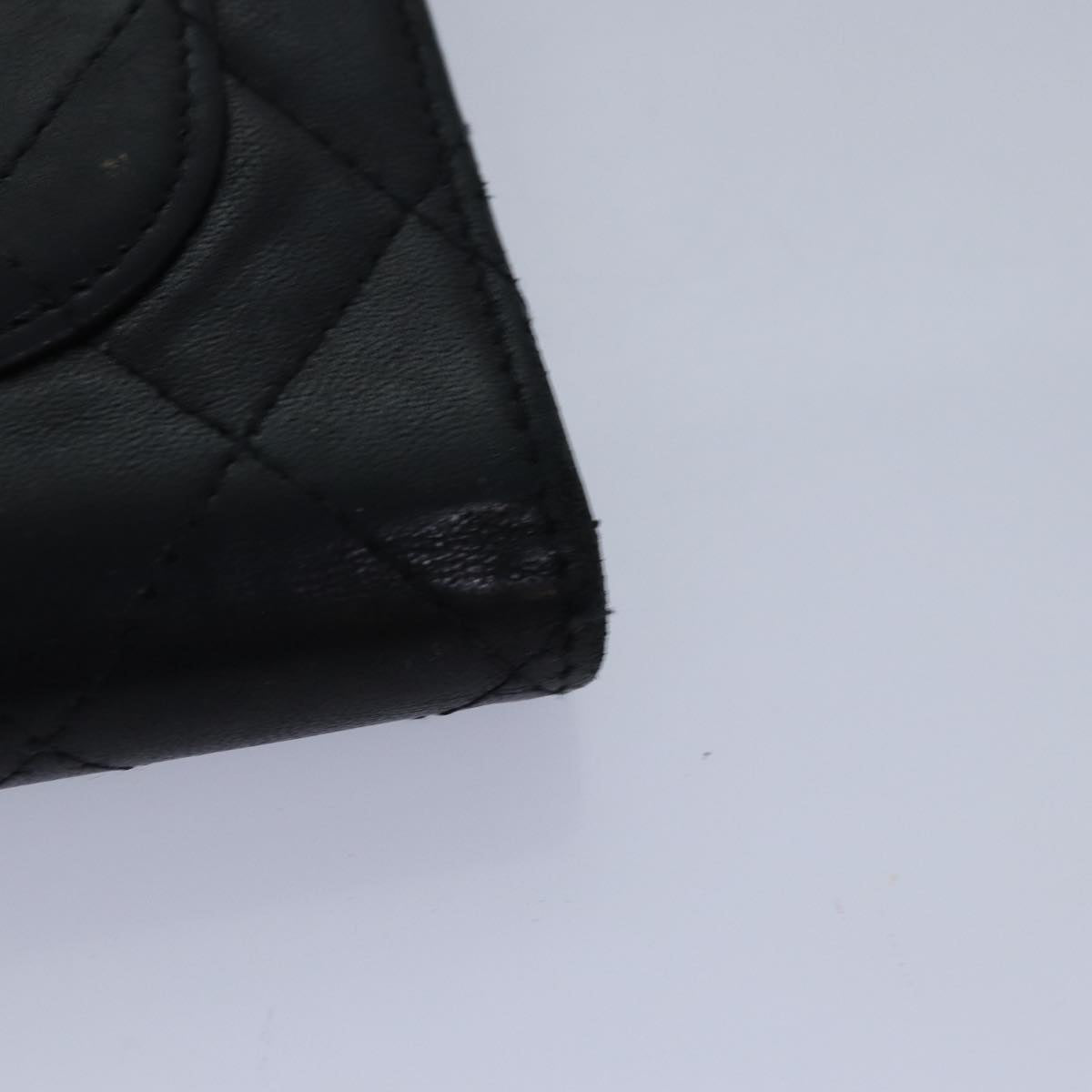 CHANEL Matelasse Long Wallet Lamb Skin Black CC Auth bs16070