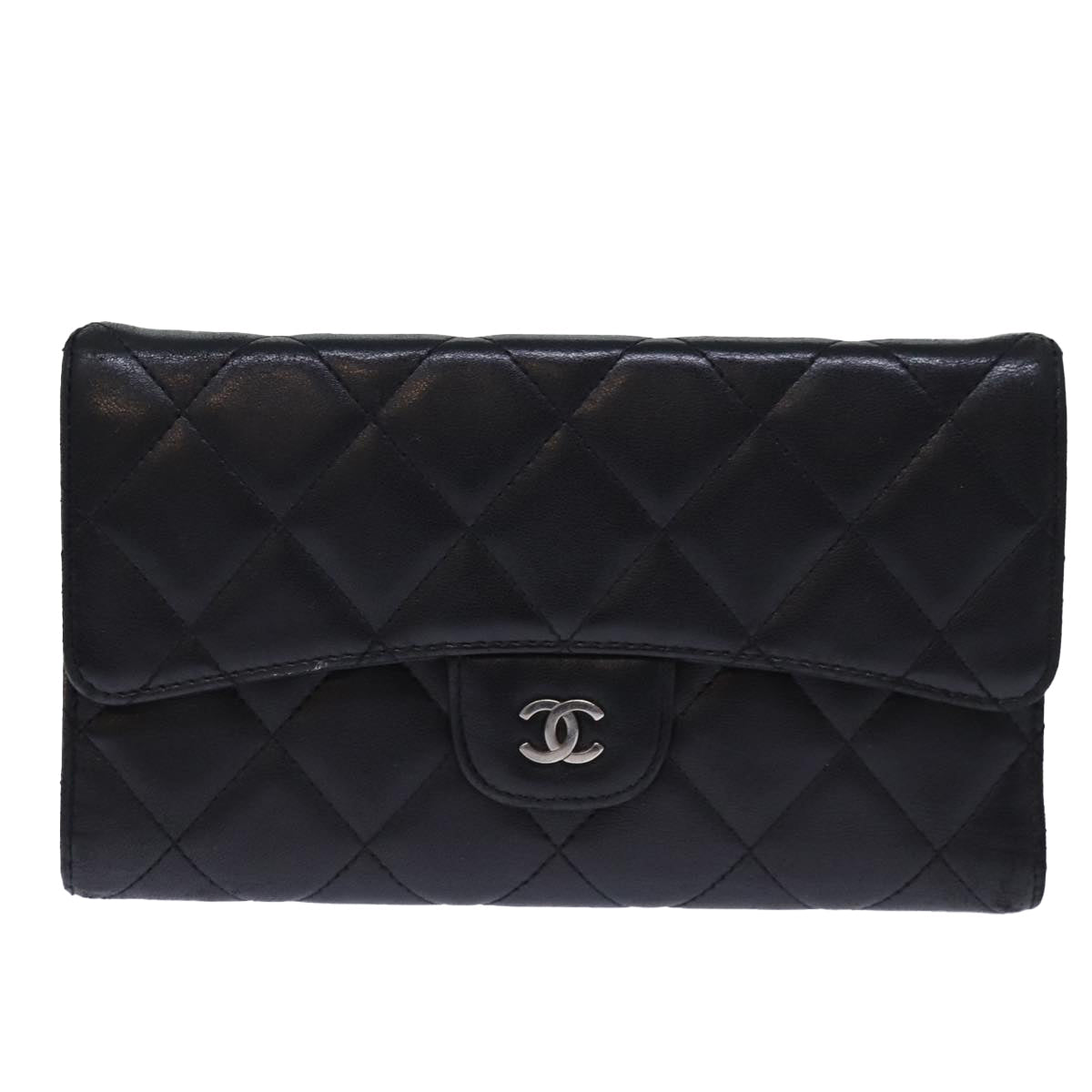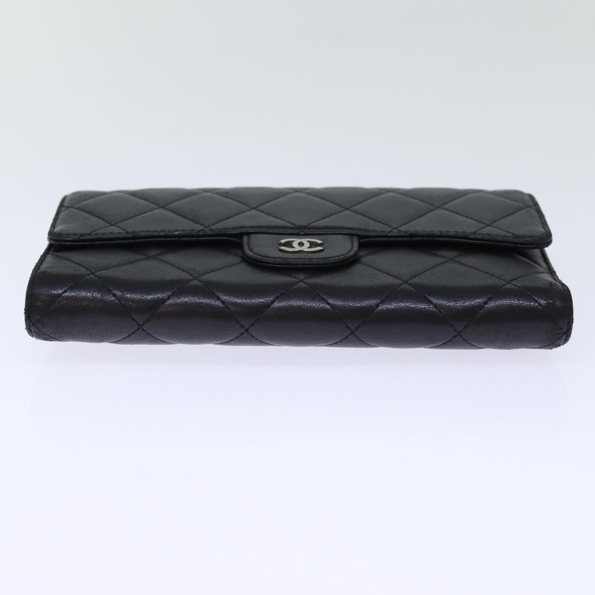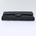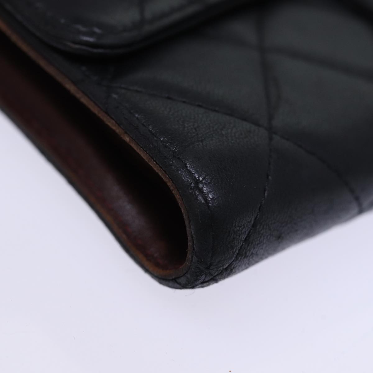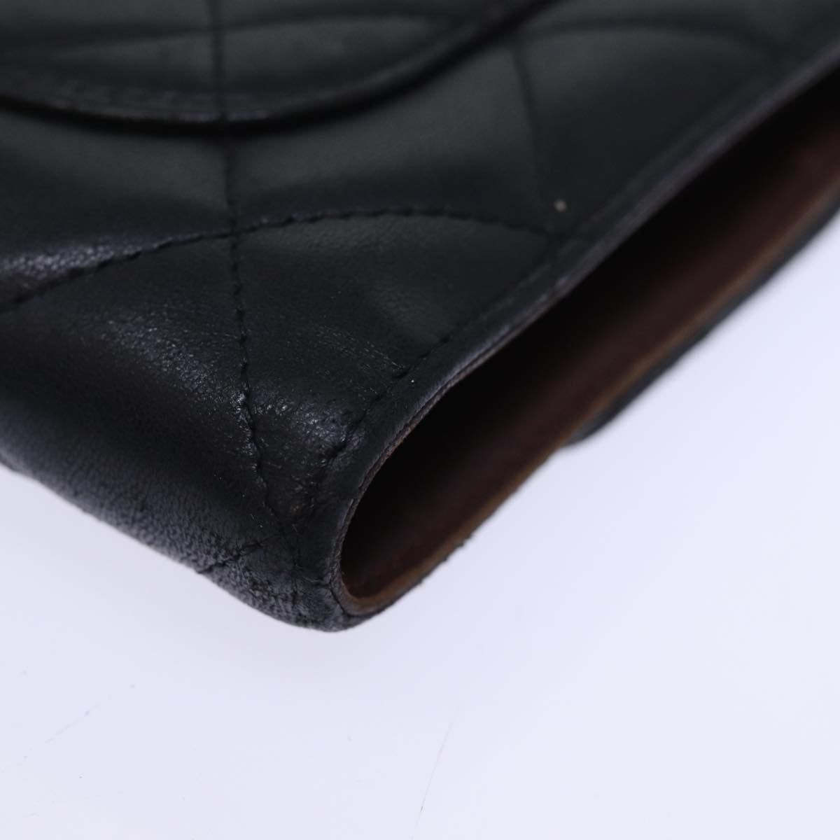 CHANEL Matelasse Long Wallet Lamb Skin Black CC Auth yk12499