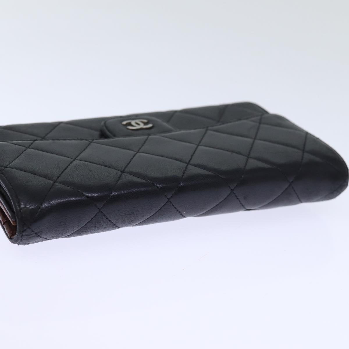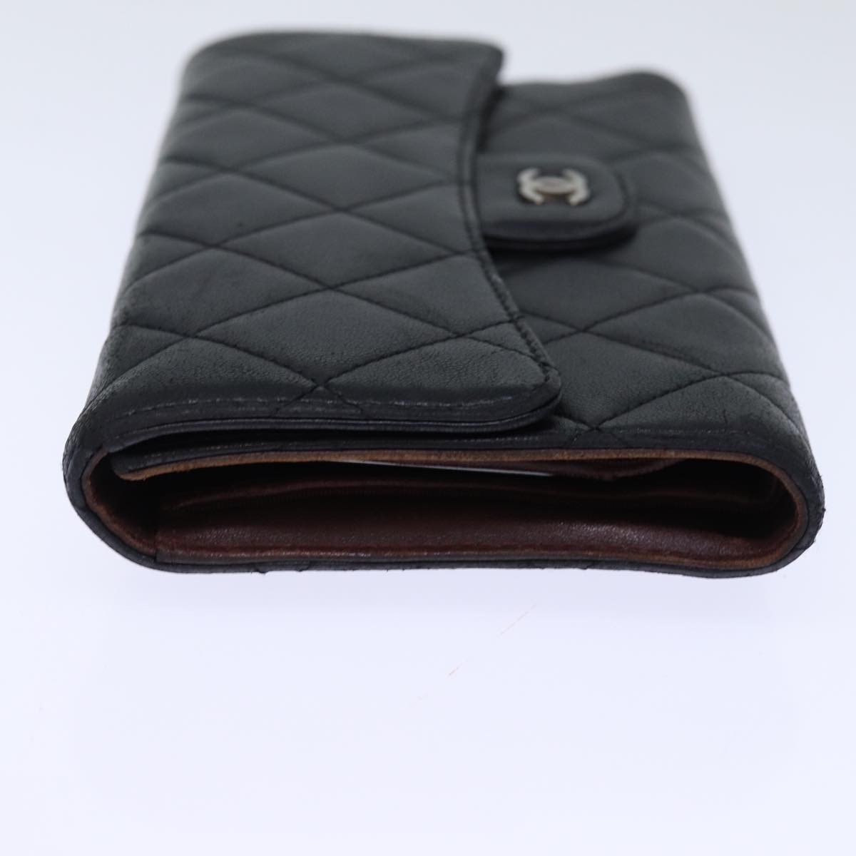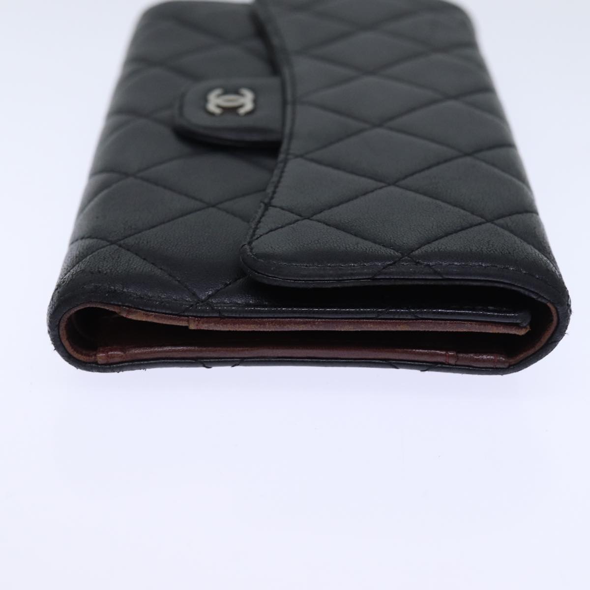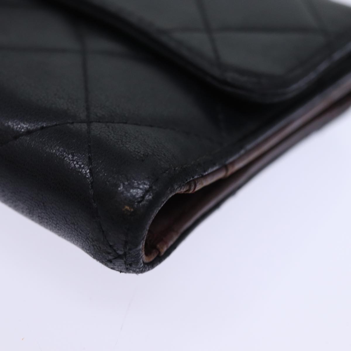 CHANEL Matelasse Long Wallet Lamb Skin Black CC Auth yk12499