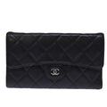 Top Quality Chanel Matelasse Long Wallet Lamb Skin Black CC Auth yk12499