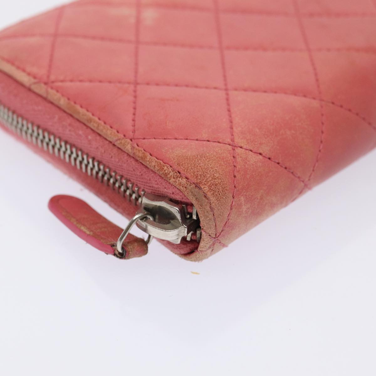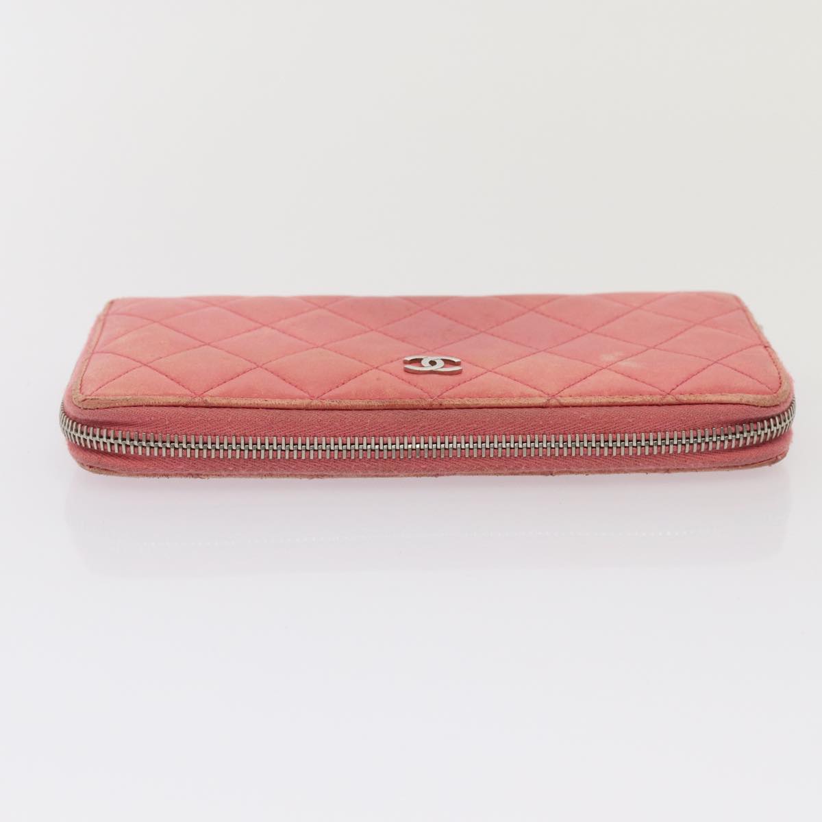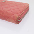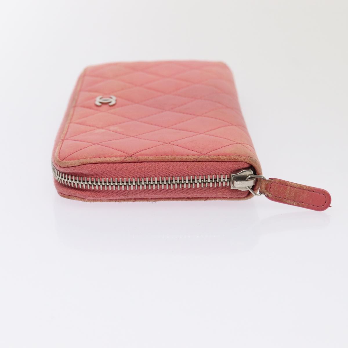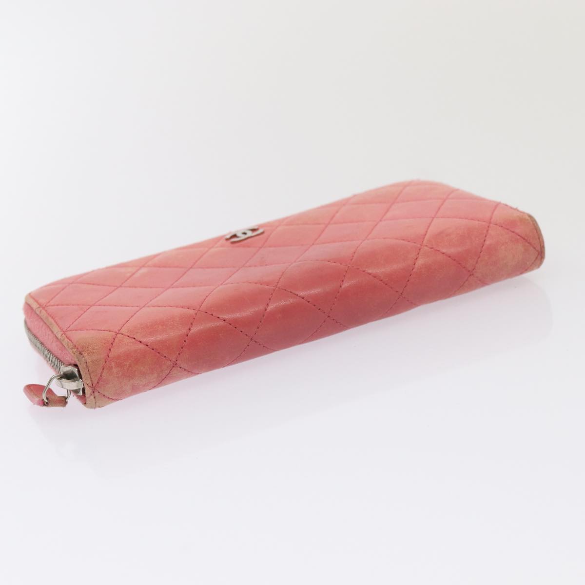 CHANEL Matelasse Long Wallet Lamb Skin Pink CC Auth 79765
