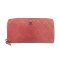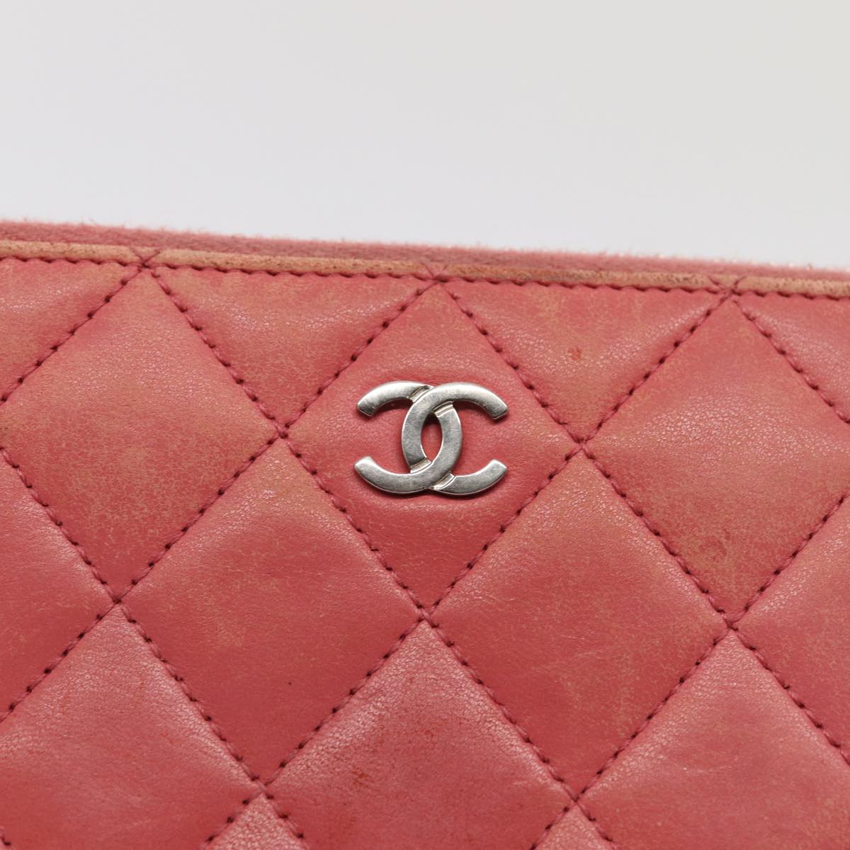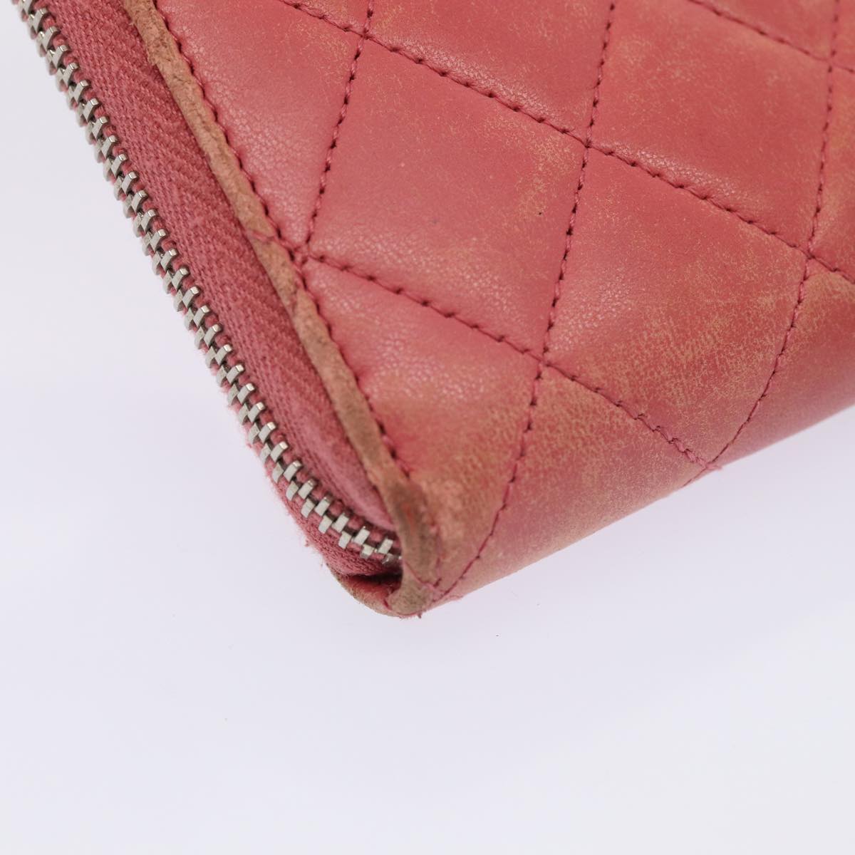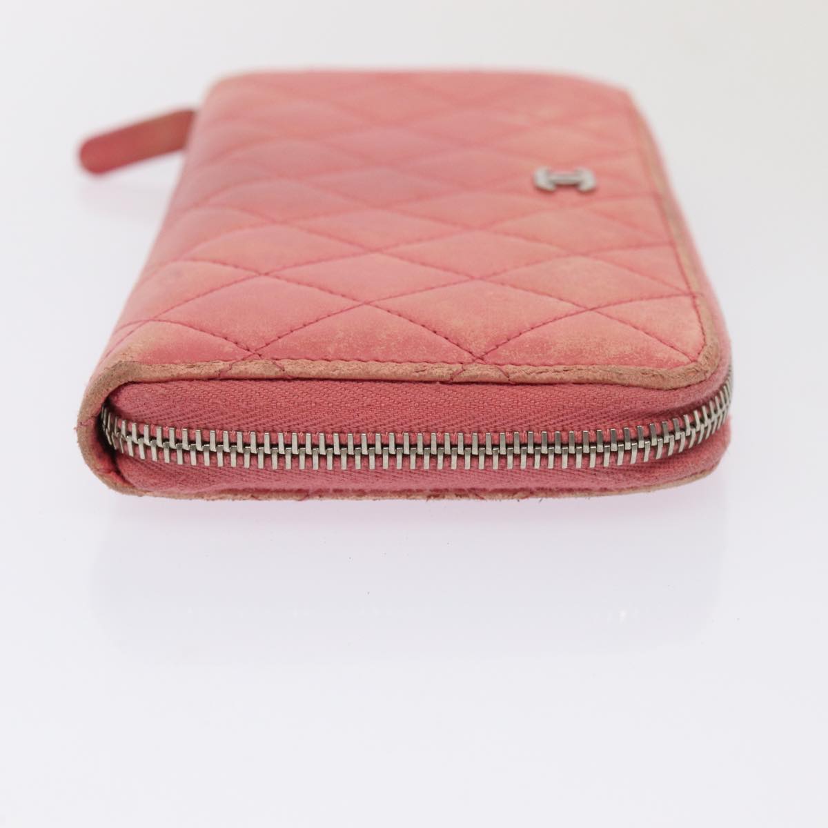 CHANEL Matelasse Long Wallet Lamb Skin Pink CC Auth 79765