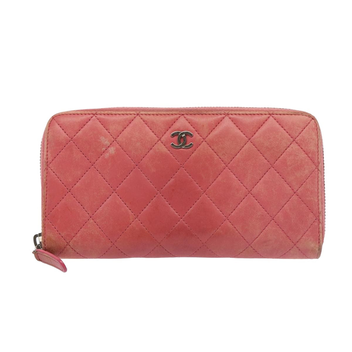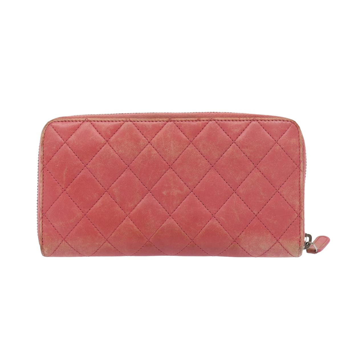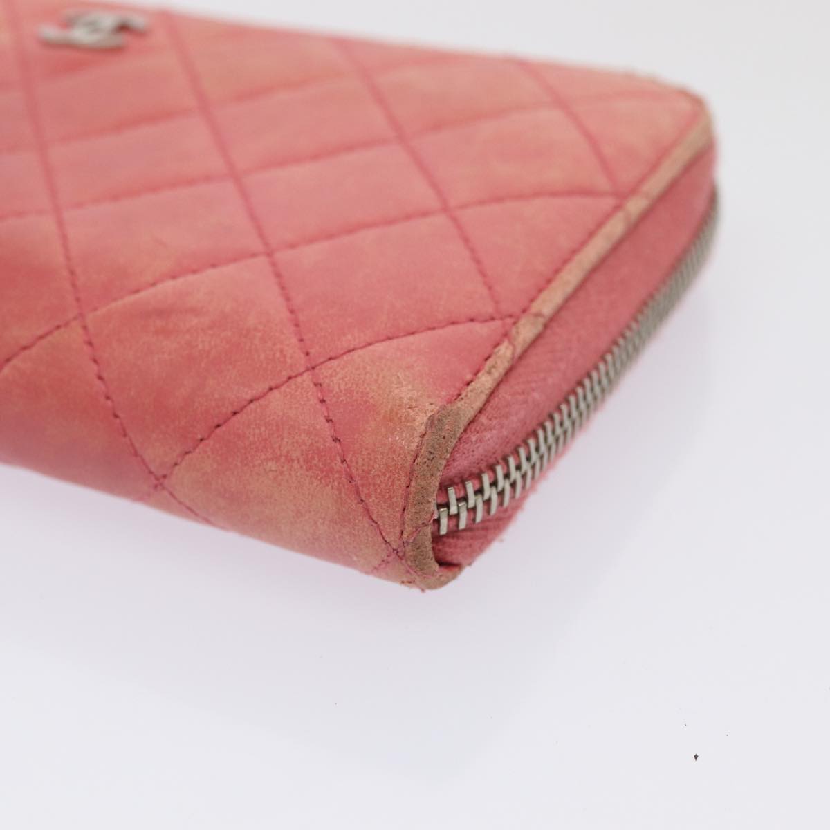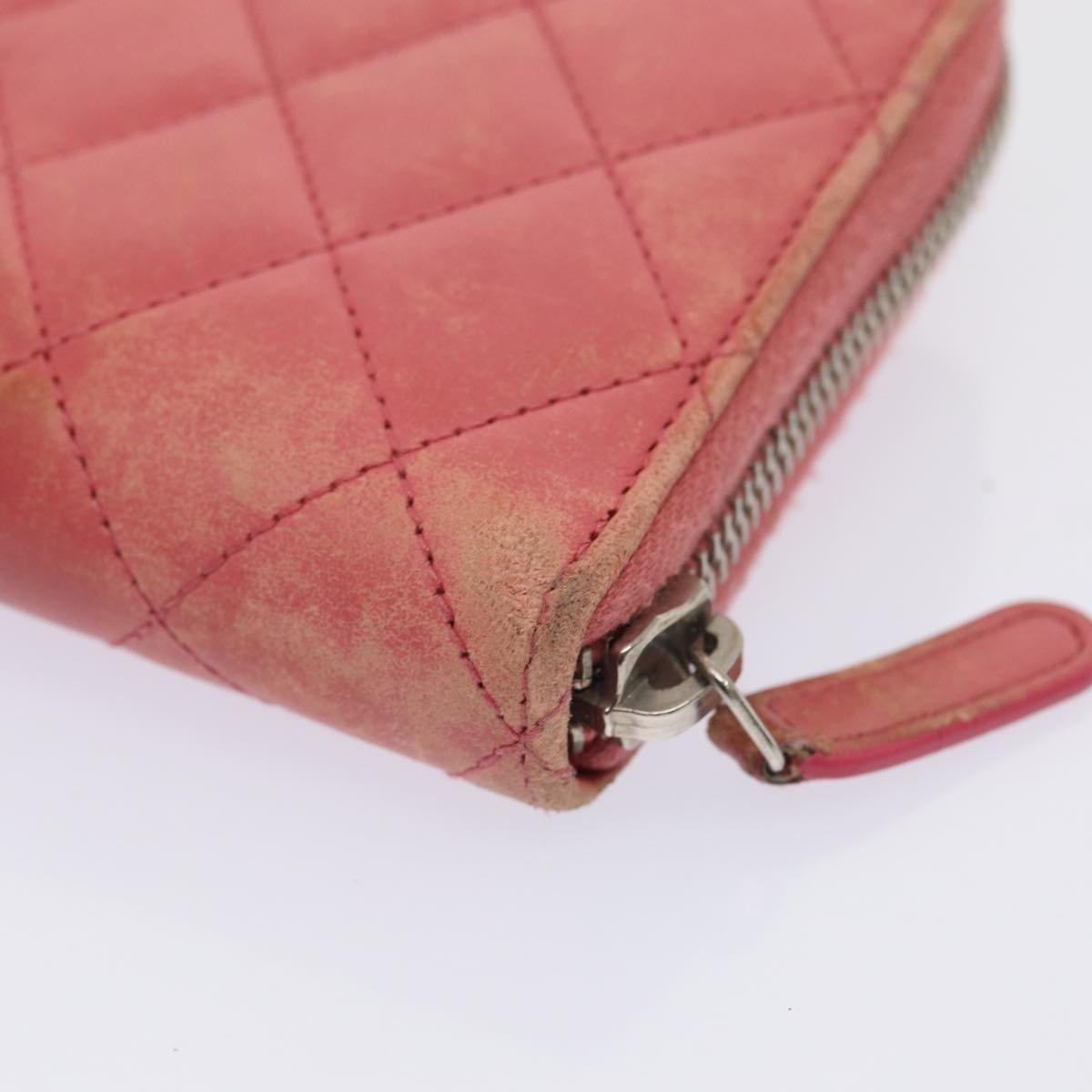 CHANEL Matelasse Long Wallet Lamb Skin Pink CC Auth 79765