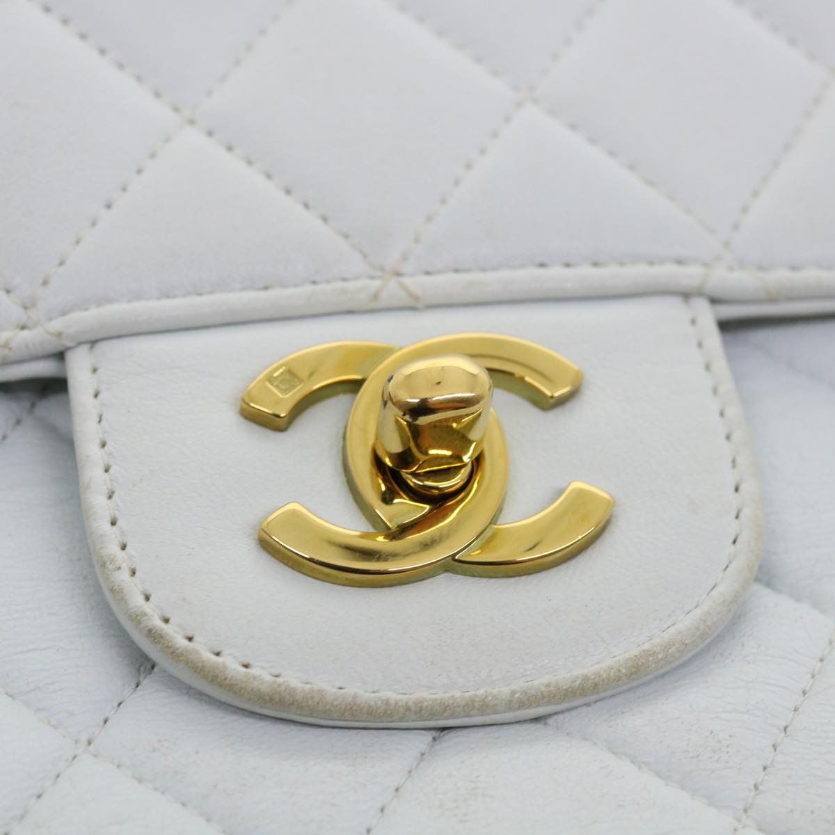 Top Quality Chanel Matelasse Pair Shoulder Bag Lamb Skin White CC Auth 32416A