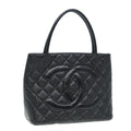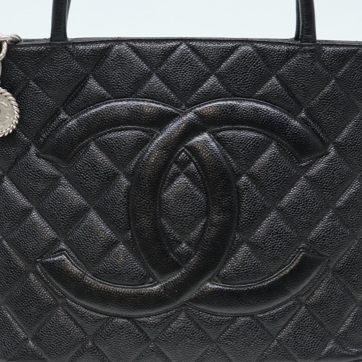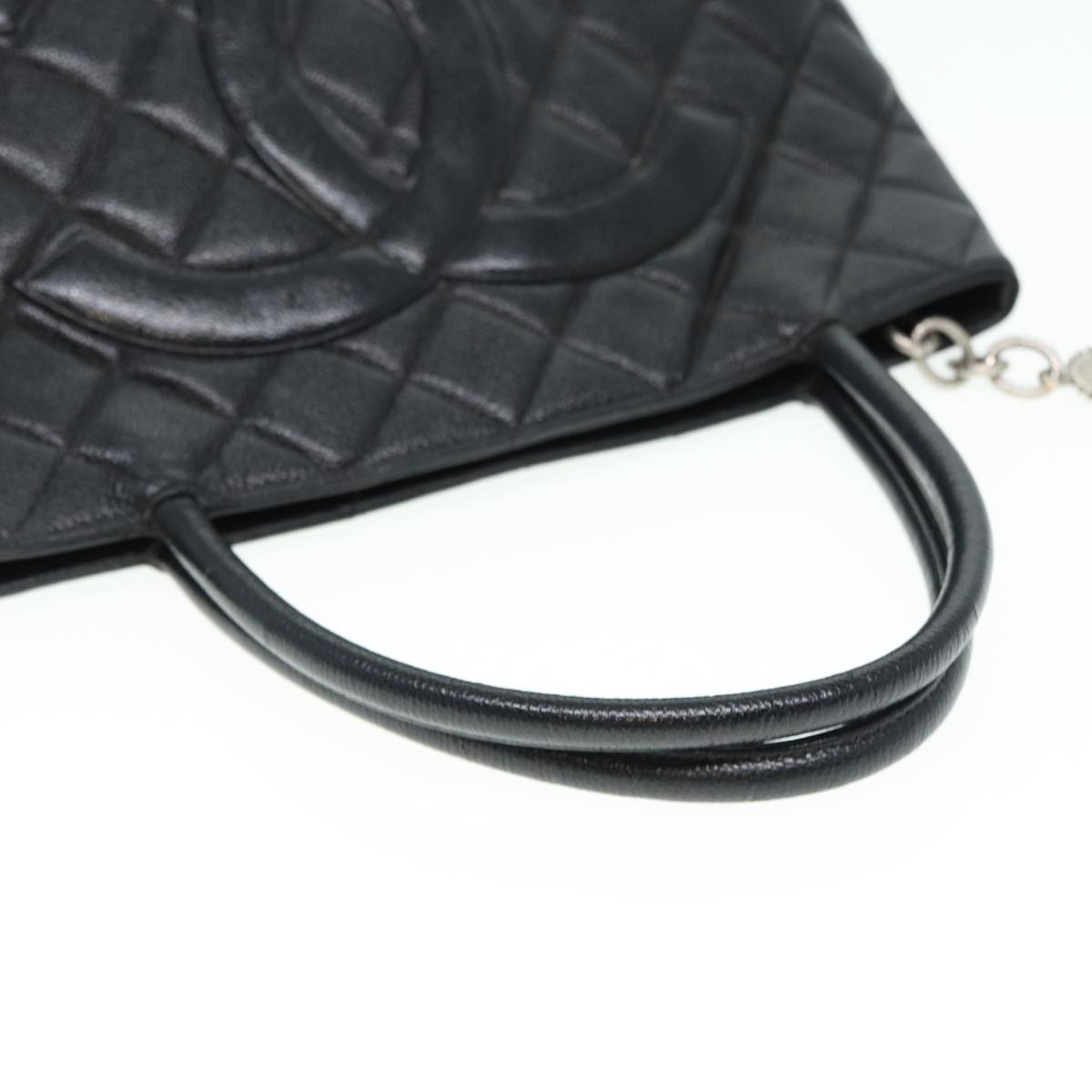 CHANEL Matelasse Reprint Tote Bag Caviar Skin Black Silver CC Auth bs16856