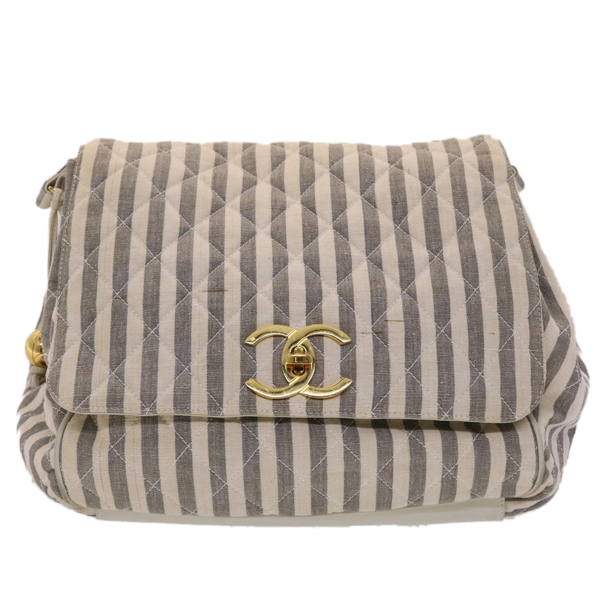 CHANEL Matelasse Shoulder Bag Canvas Light Blue White CC Auth 48071A