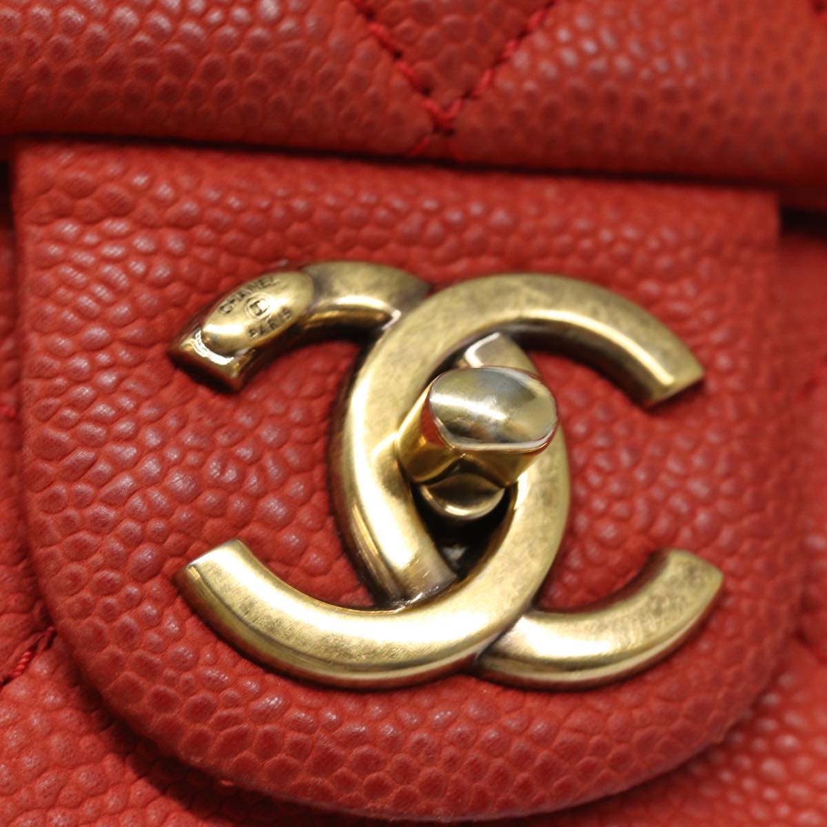 CHANEL Matelasse Shoulder Bag Caviar Skin Beige CC Auth 82249A