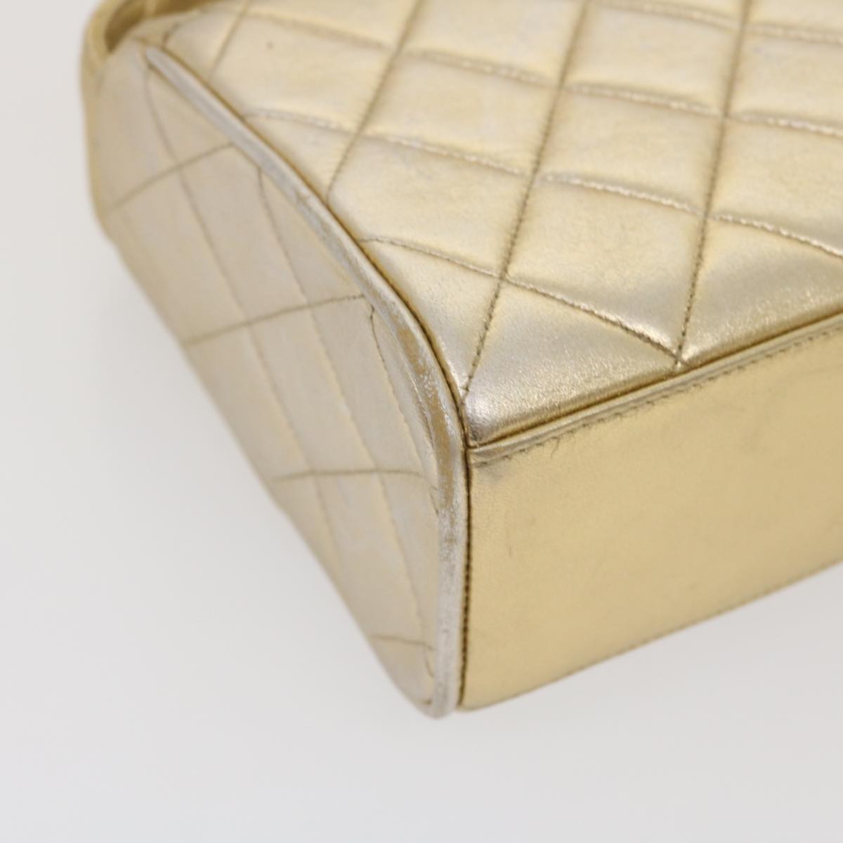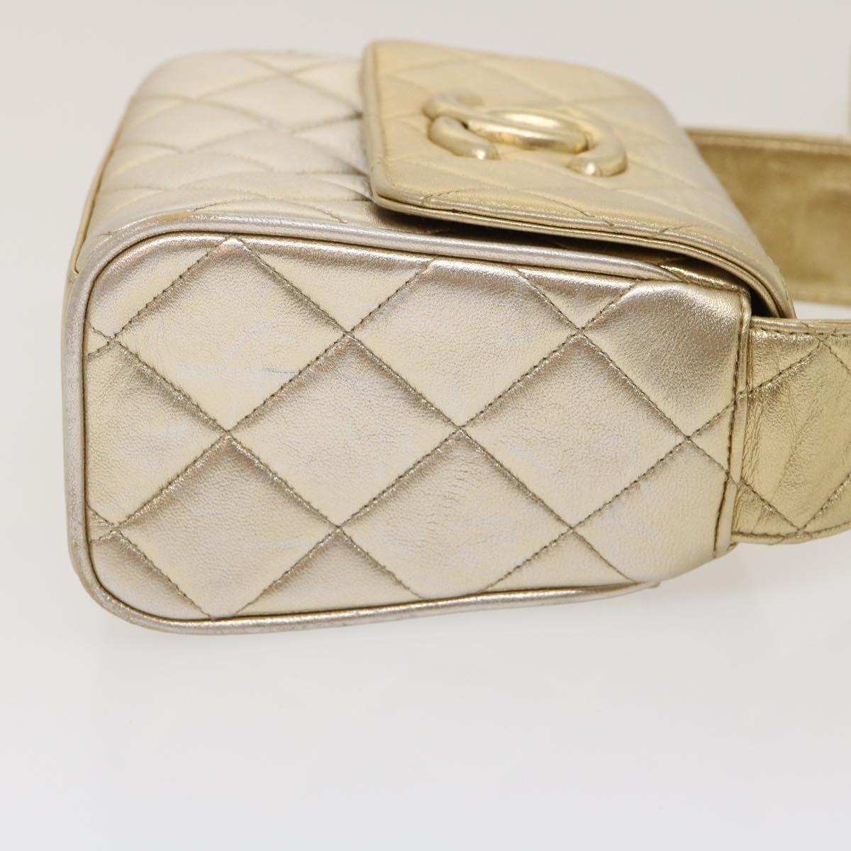 CHANEL Matelasse Shoulder Bag Lamb Skin Gold CC Auth 29567A
