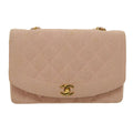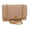 CHANEL Matelasse Turn Lock Chain Diana Shoulder Bag Canvas Pink CC Auth 29889A