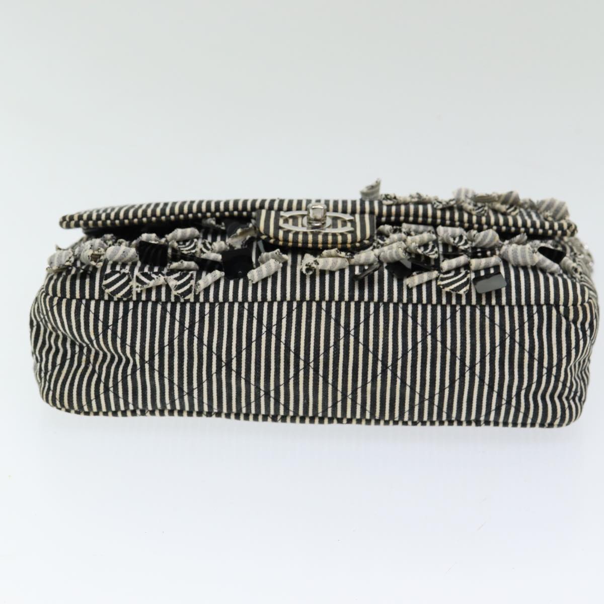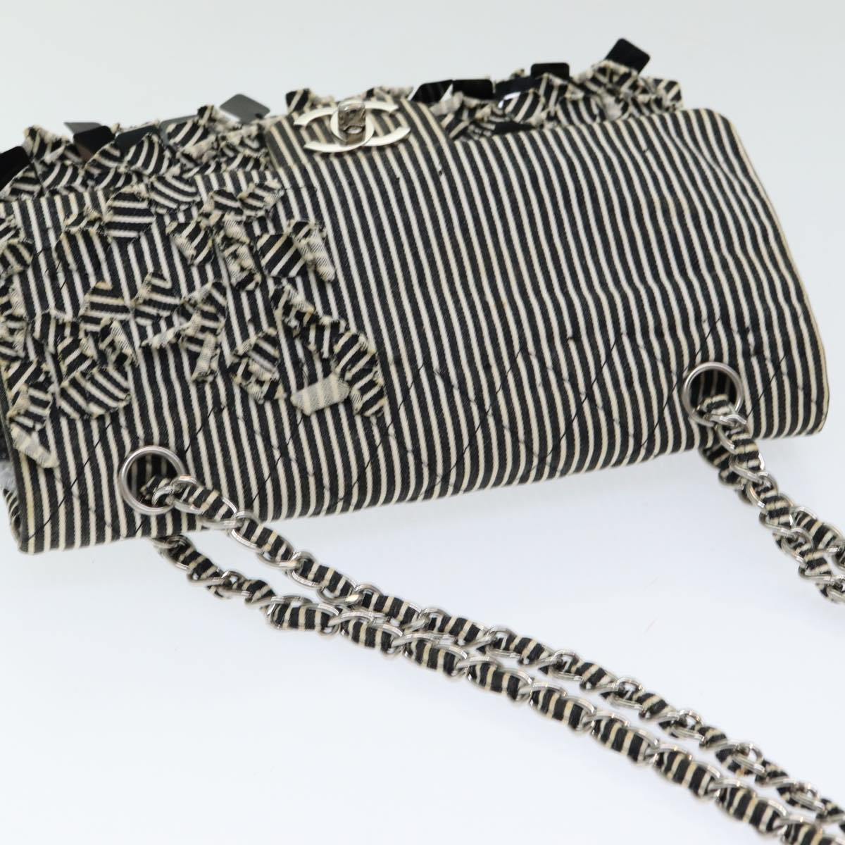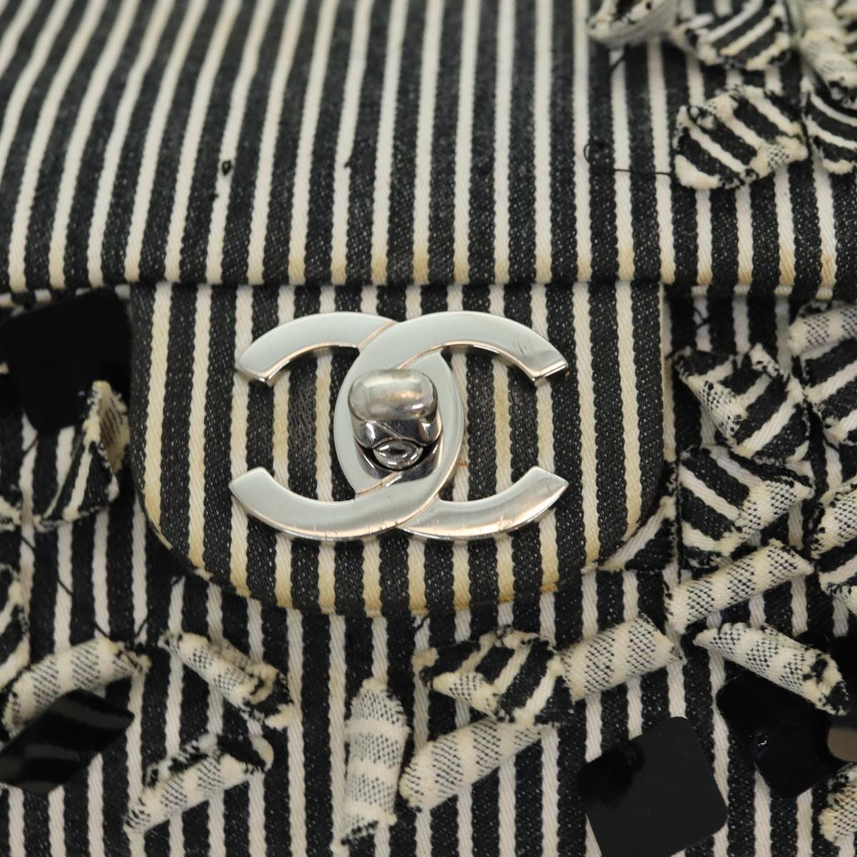 Top Quality Chanel Matelasse Turn Lock Chain Hand Bag Canvas Black Silver CC Auth bs16629