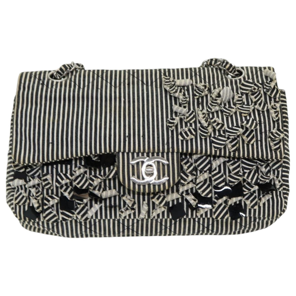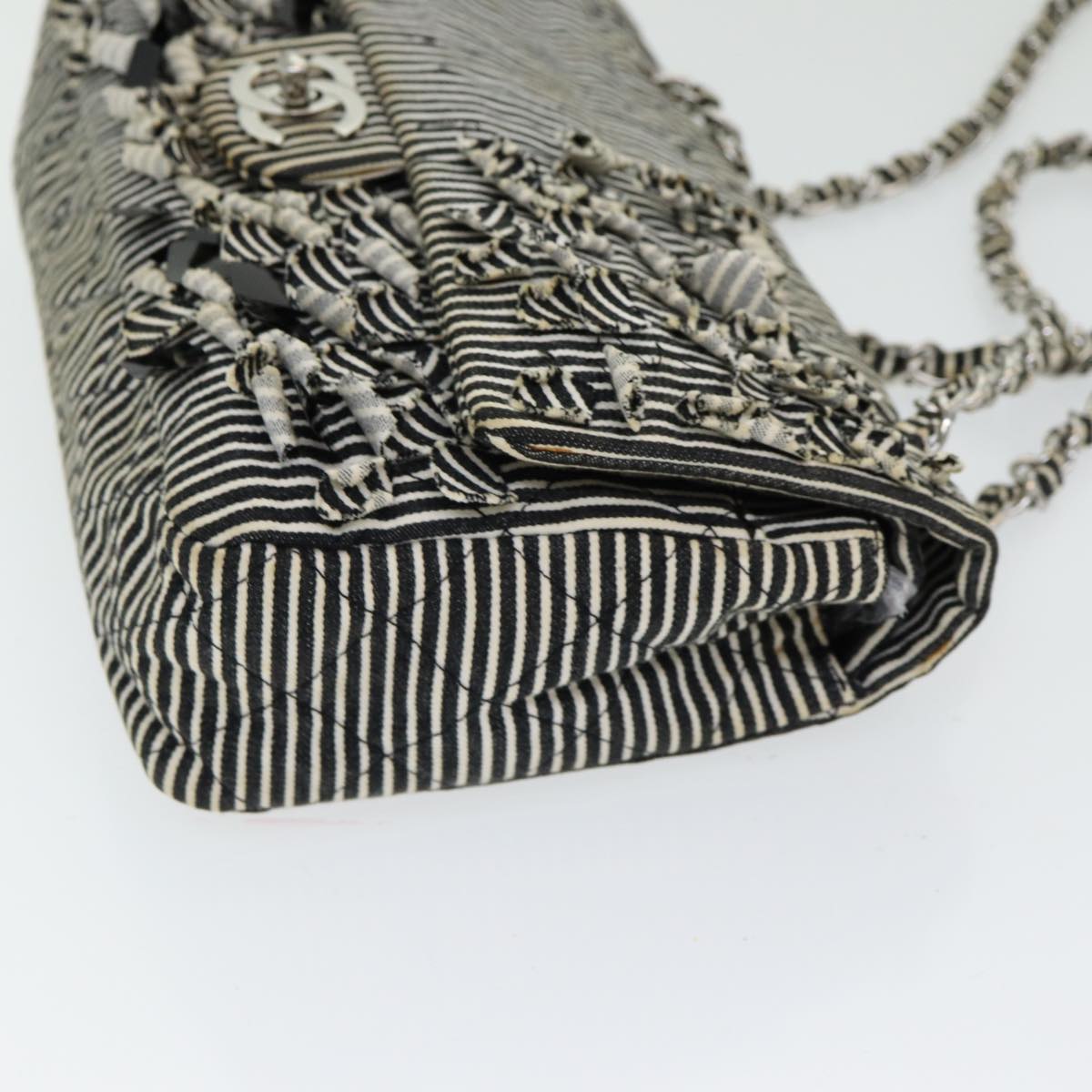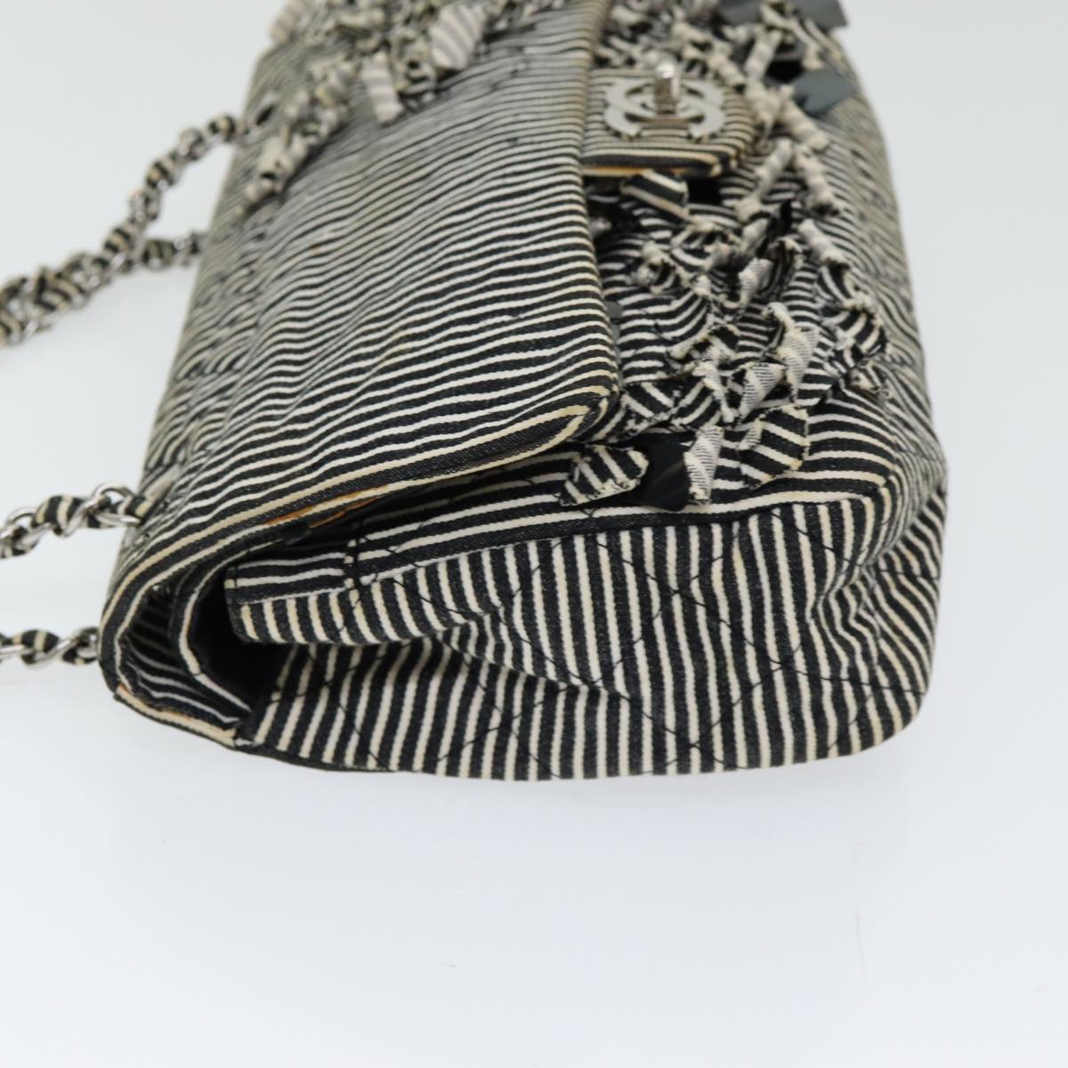 Top Quality Chanel Matelasse Turn Lock Chain Hand Bag Canvas Black Silver CC Auth bs16629