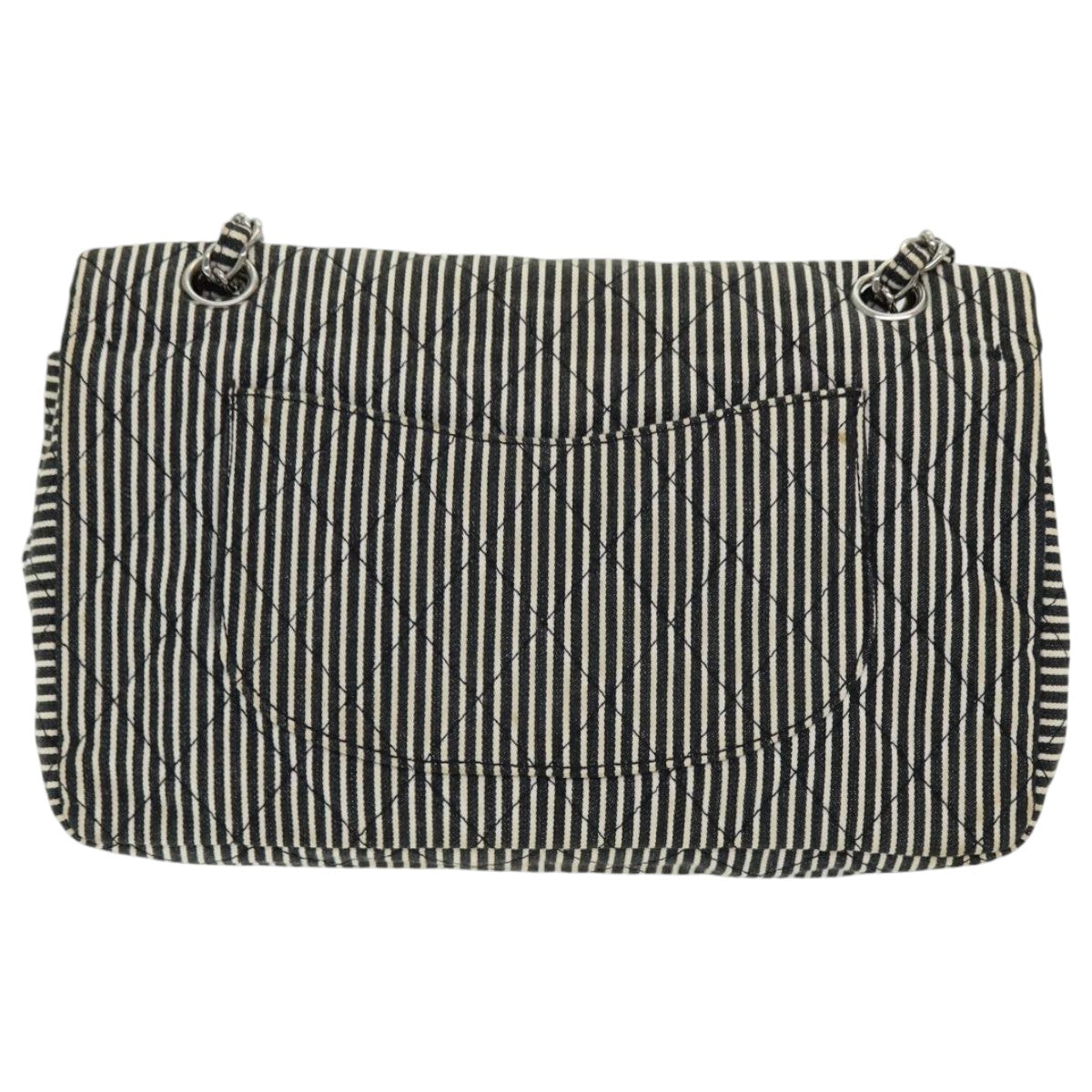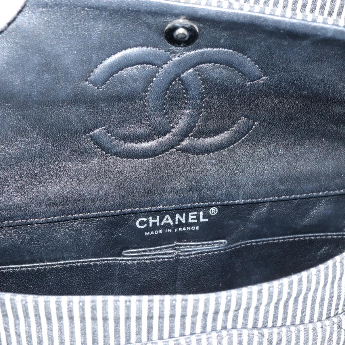 CHANEL Matelasse Turn Lock Chain Hand Bag Canvas Black Silver CC Auth bs16629