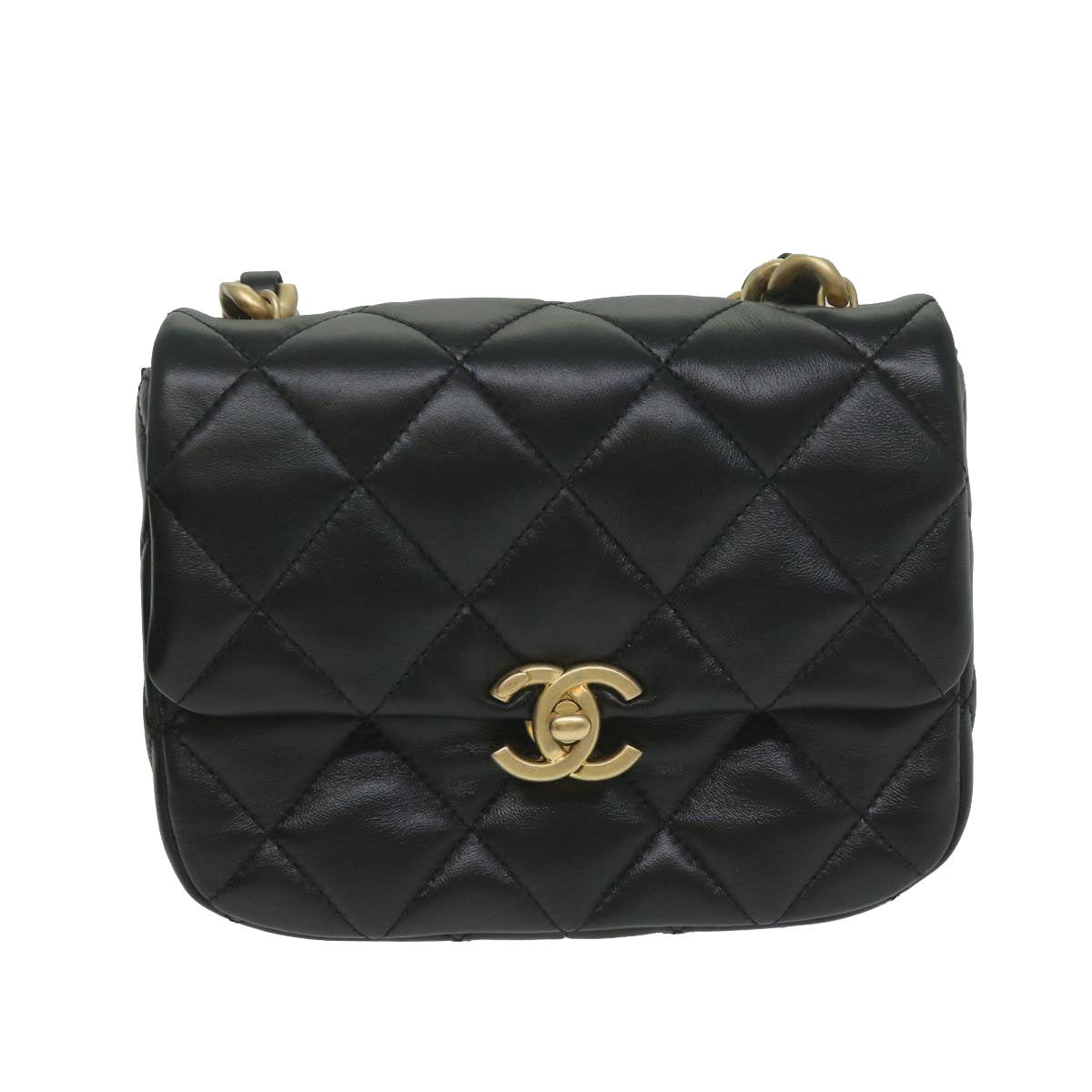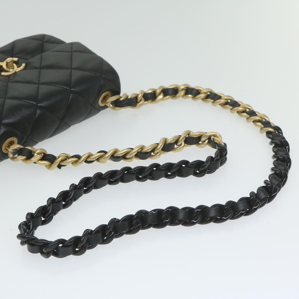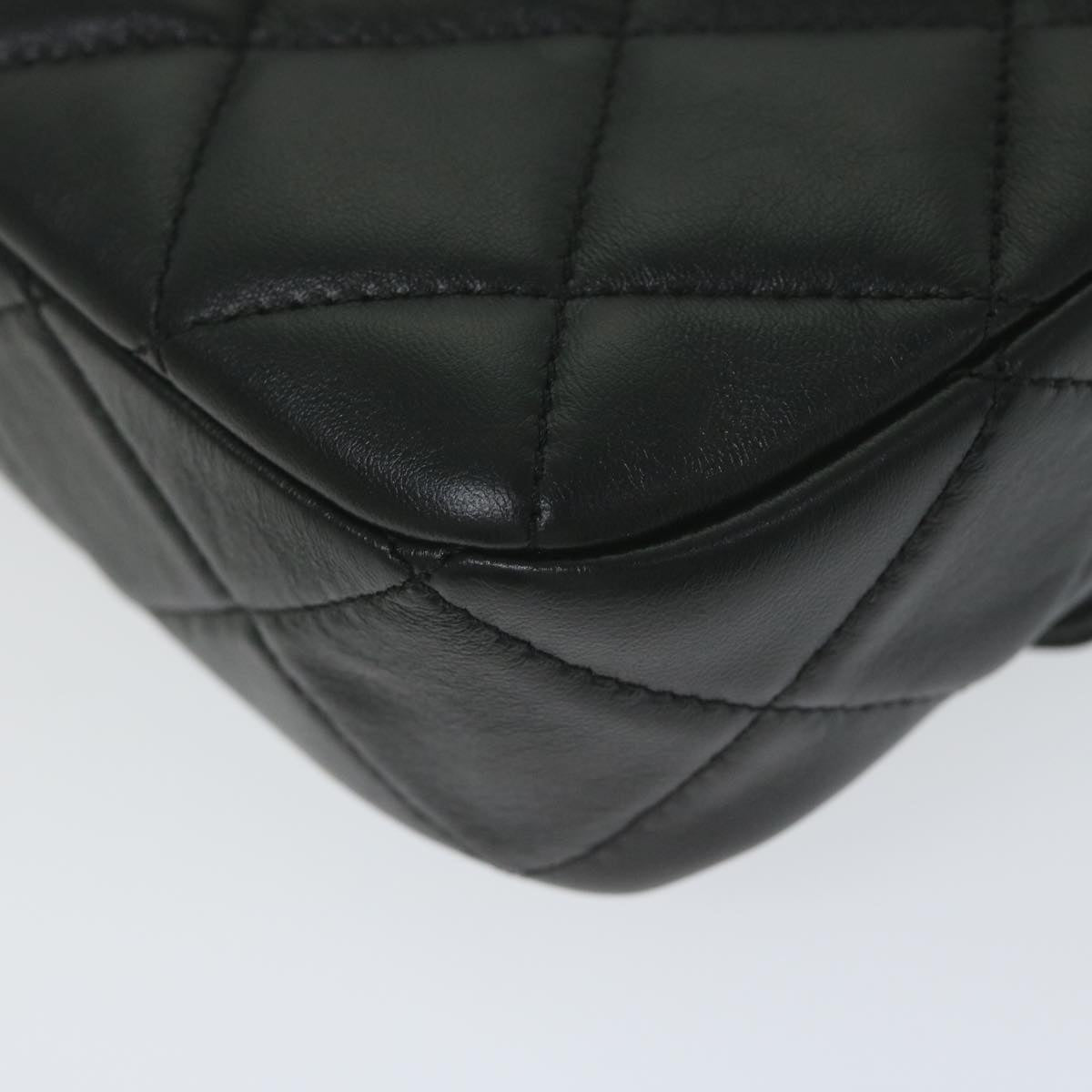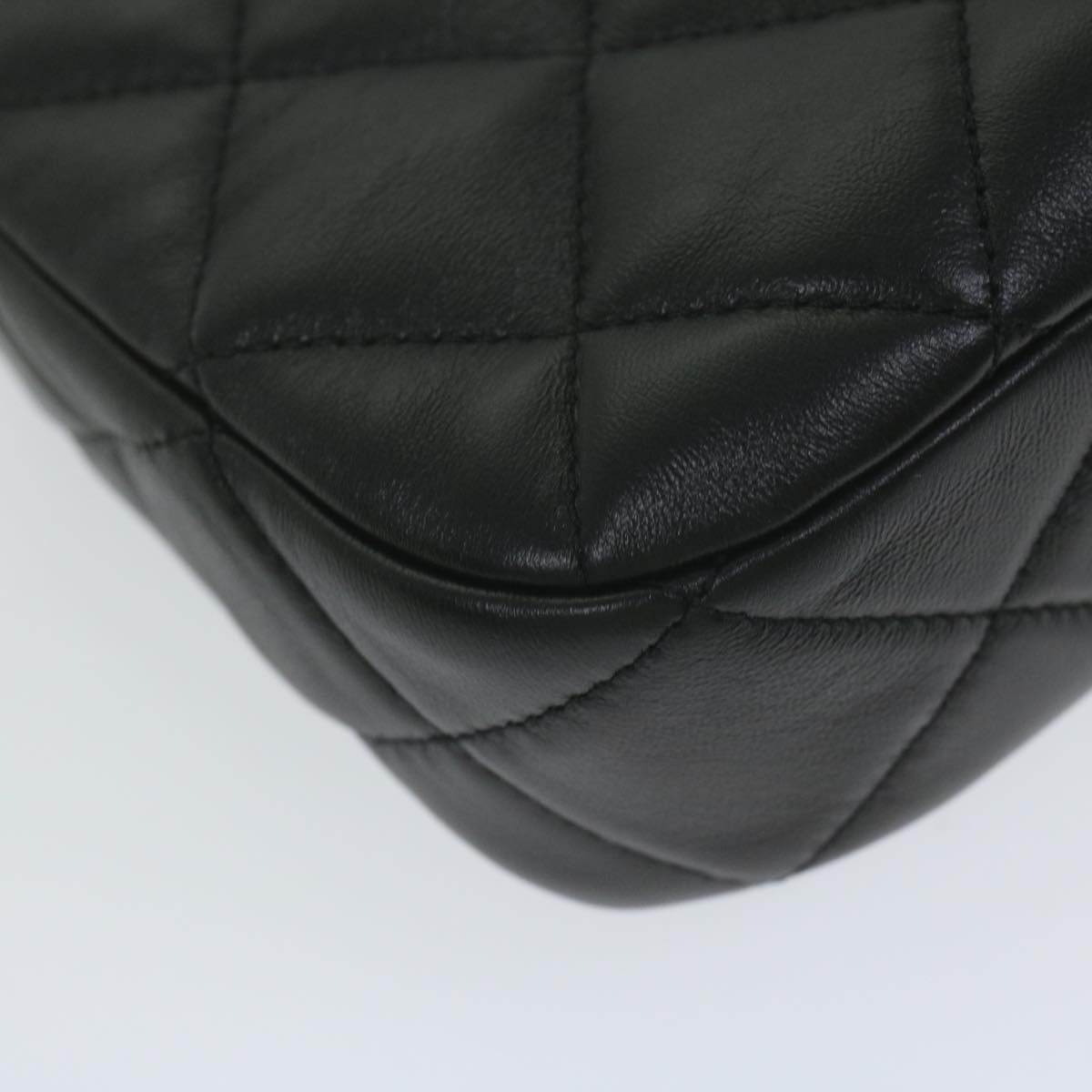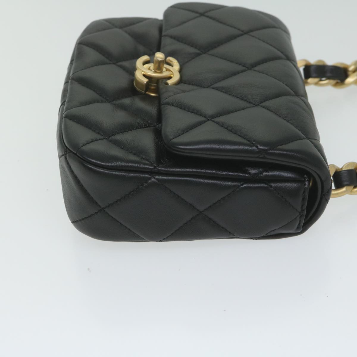 CHANEL Matelasse Turn Lock Chain Shoulder Bag Lamb Skin Black CC Auth ar11105A