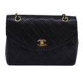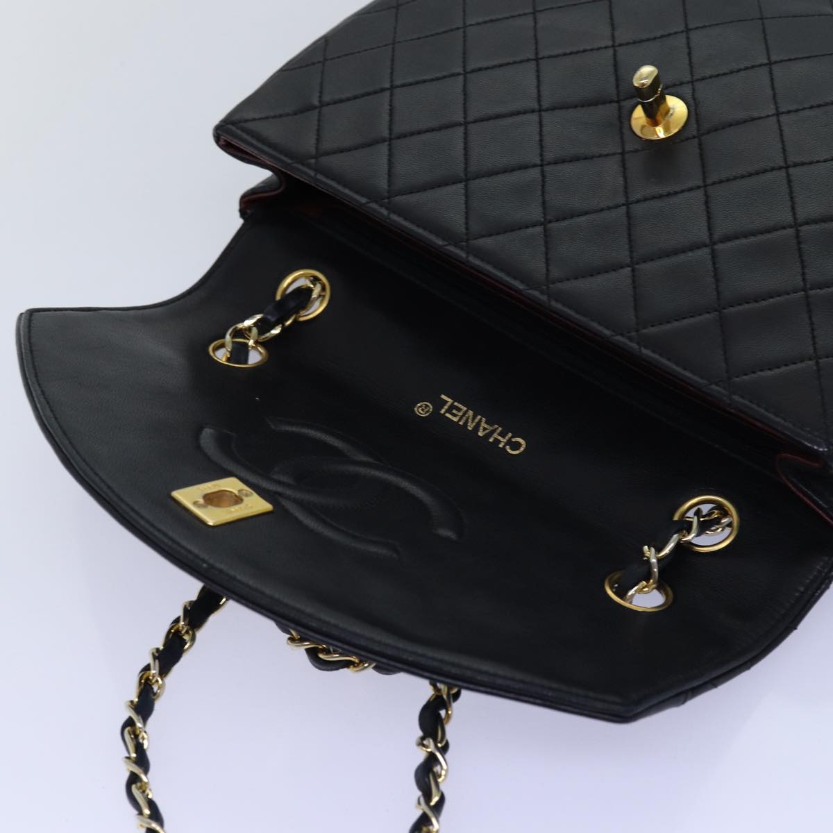 CHANEL Matelasse Turn Lock Chain Shoulder Bag Lamb Skin Black CC Auth yk12901A