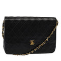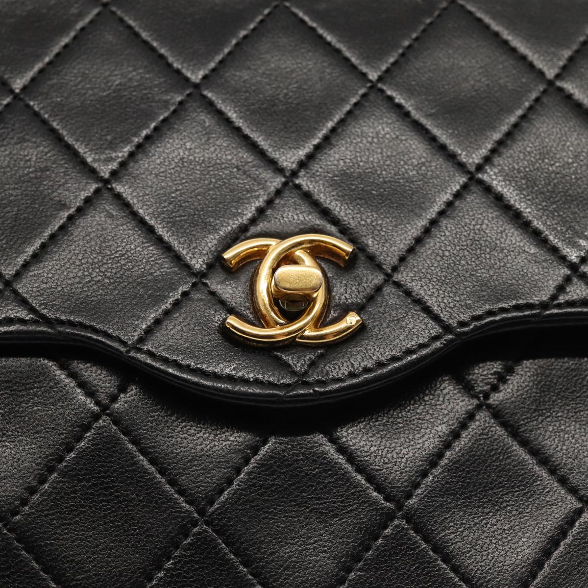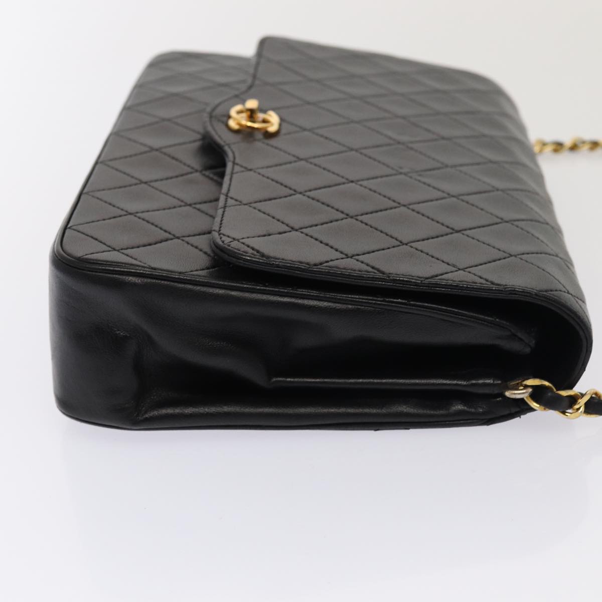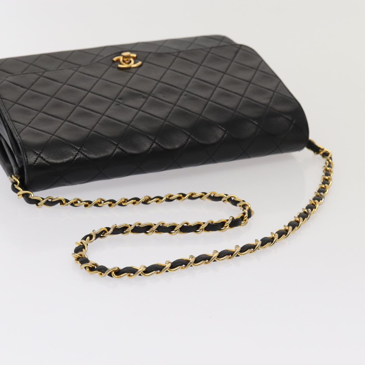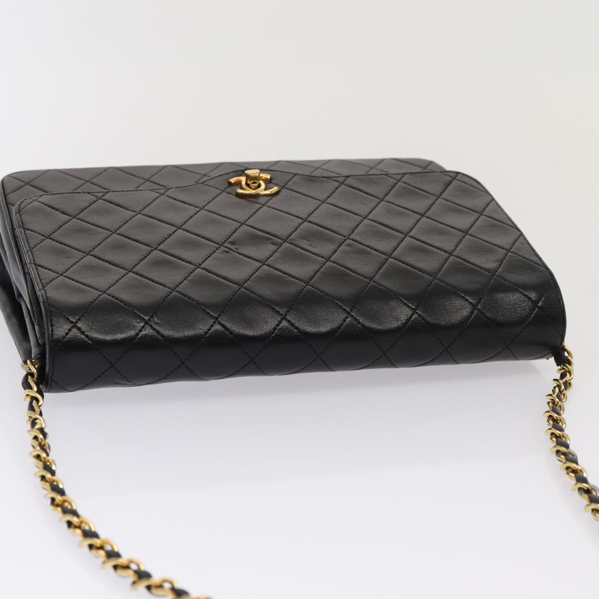 CHANEL Matelasse Turn Lock Chain Shoulder Bag Lamb Skin Black CC Auth yk13966