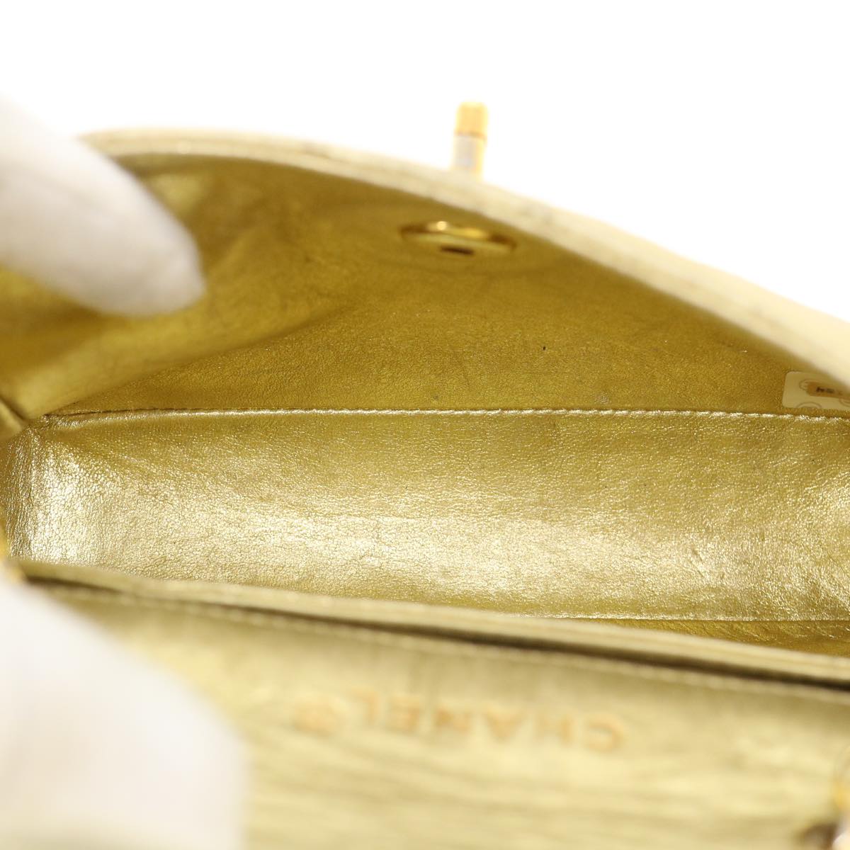 CHANEL Matelasse Turn Lock Chain Shoulder Bag Lamb Skin Gold CC Auth 31382A