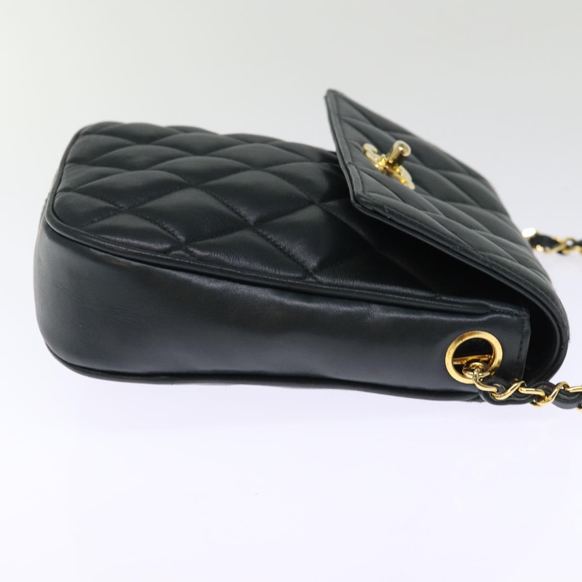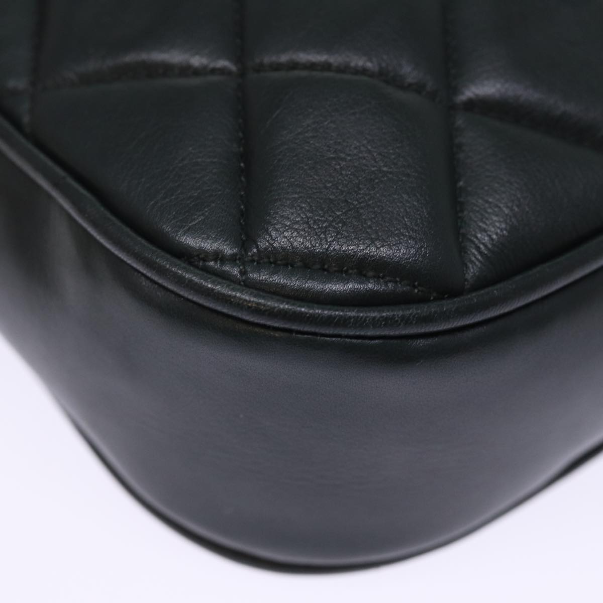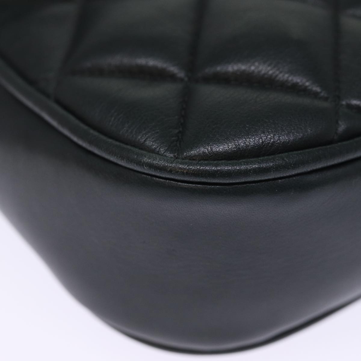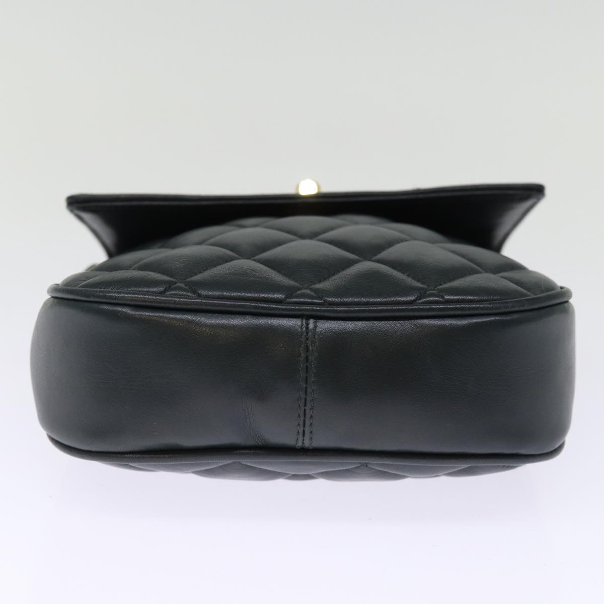 CHANEL Matelasse Turn Lock Chain Shoulder Bag Lamb Skin Green CC Auth yk12713A