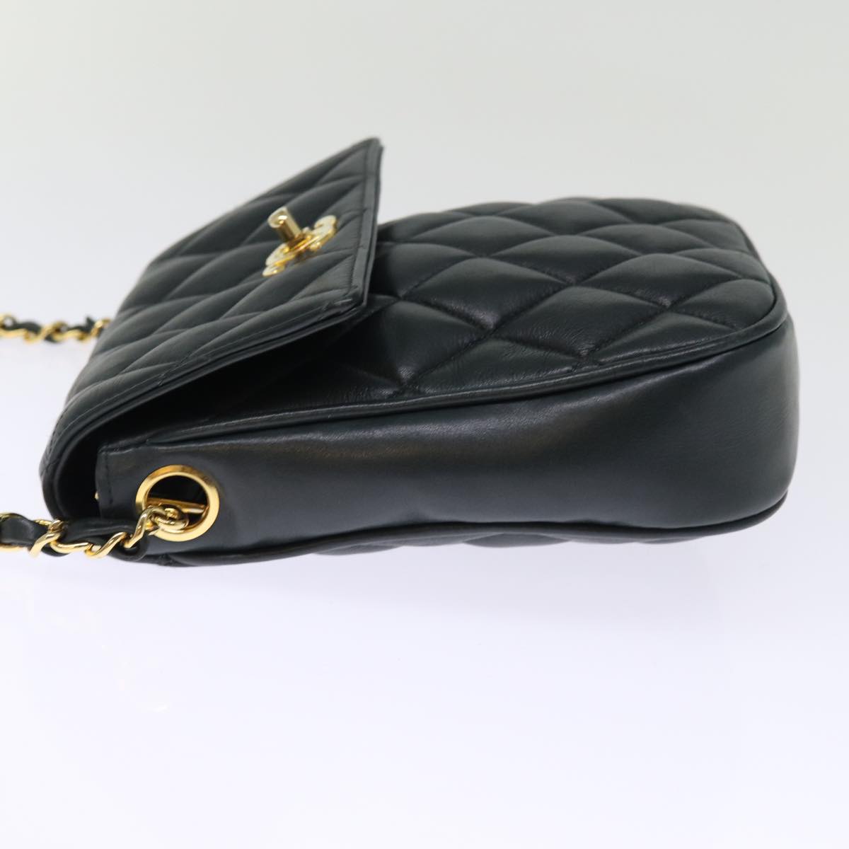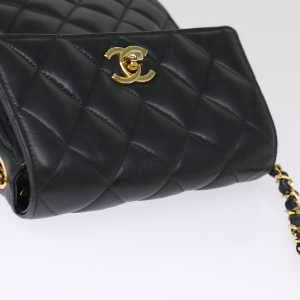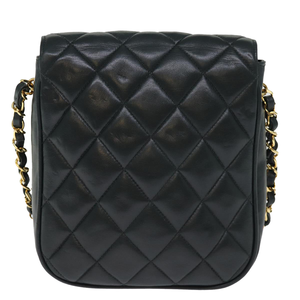 CHANEL Matelasse Turn Lock Chain Shoulder Bag Lamb Skin Green CC Auth yk12713A